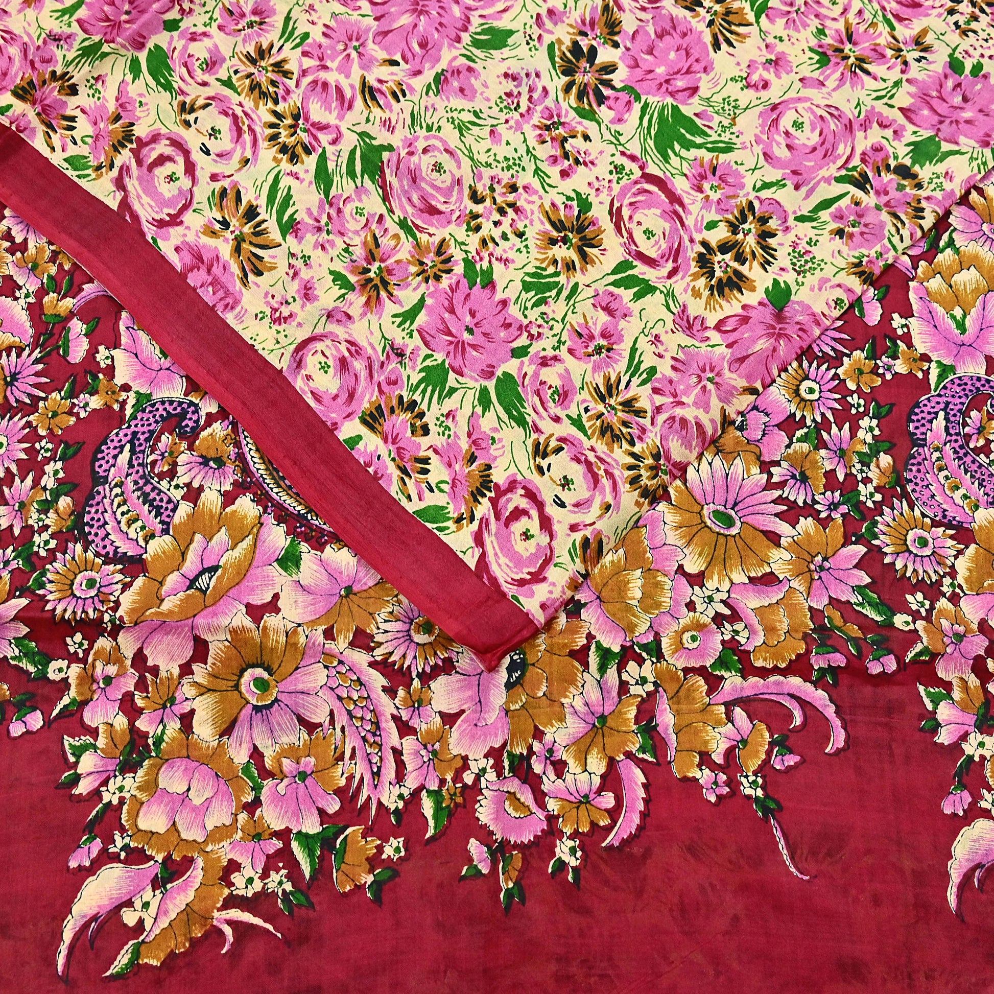 This is a vintage saree, not new. Minor signs of wear may be present. Color may appear slightly darker or lighter depending on screen settings and lighting conditions.