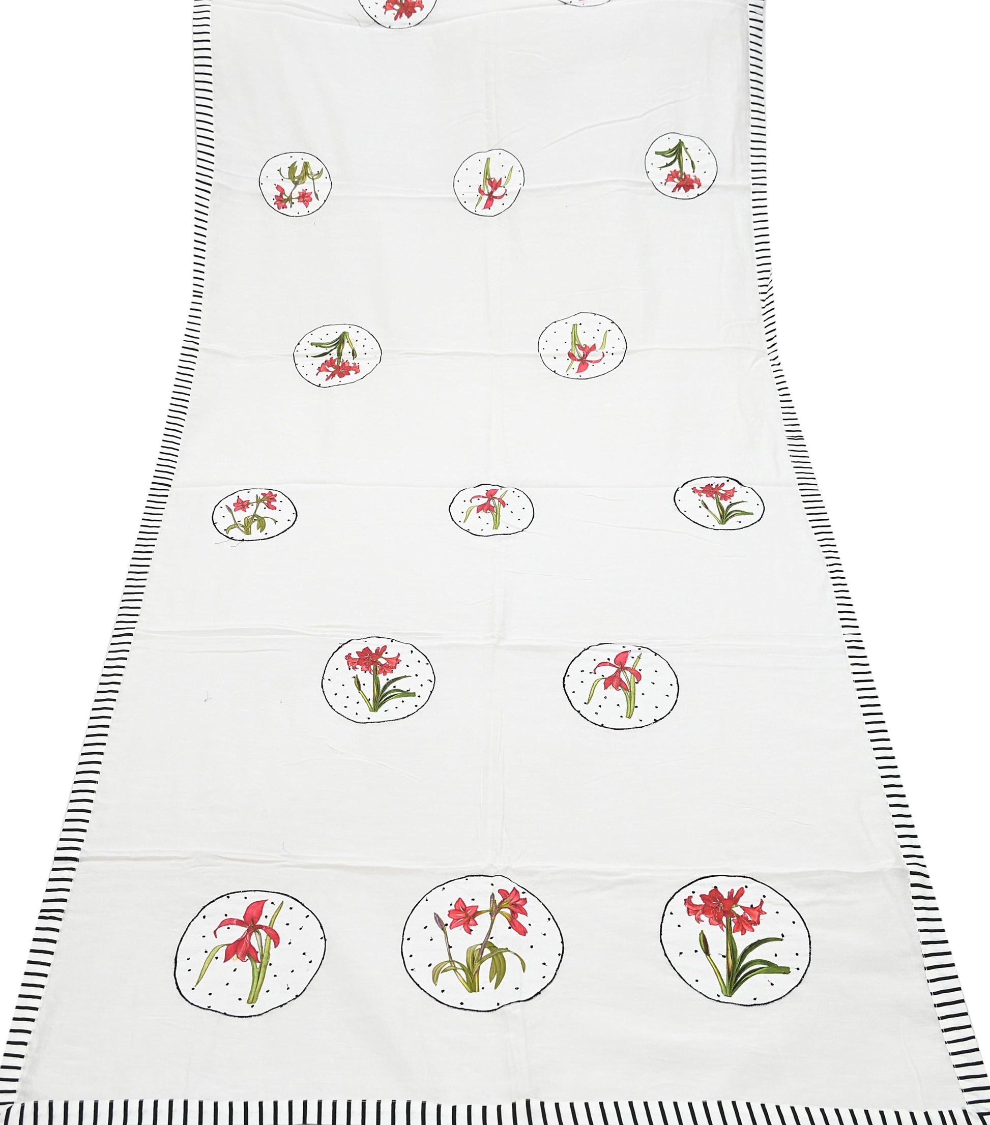 Indian Vintage White Dupatta Long Stole Embroidery Chanderi Scarves Veil