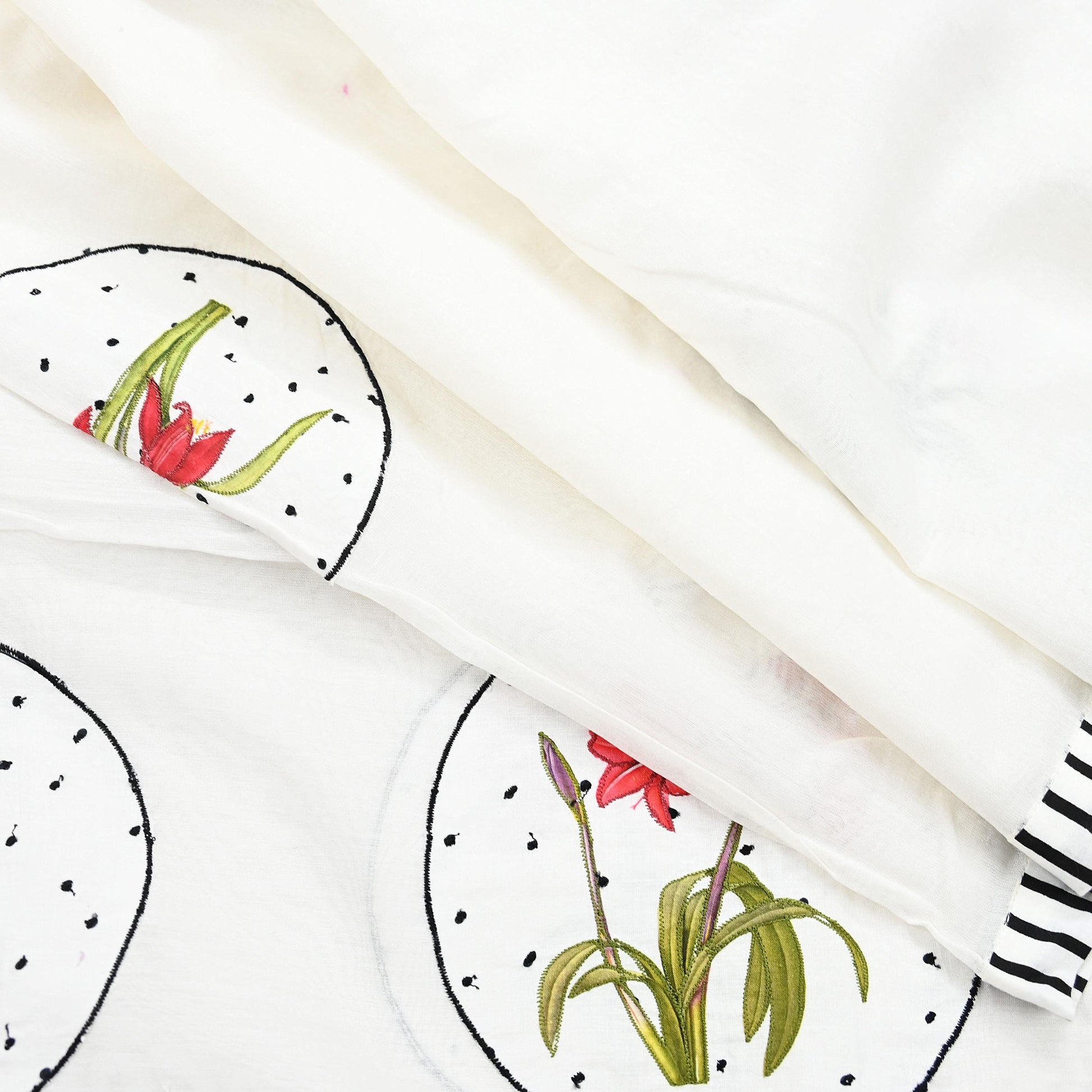 *Awesome White Colored Embroidery Chanderi Long Scarf/Dupatta.