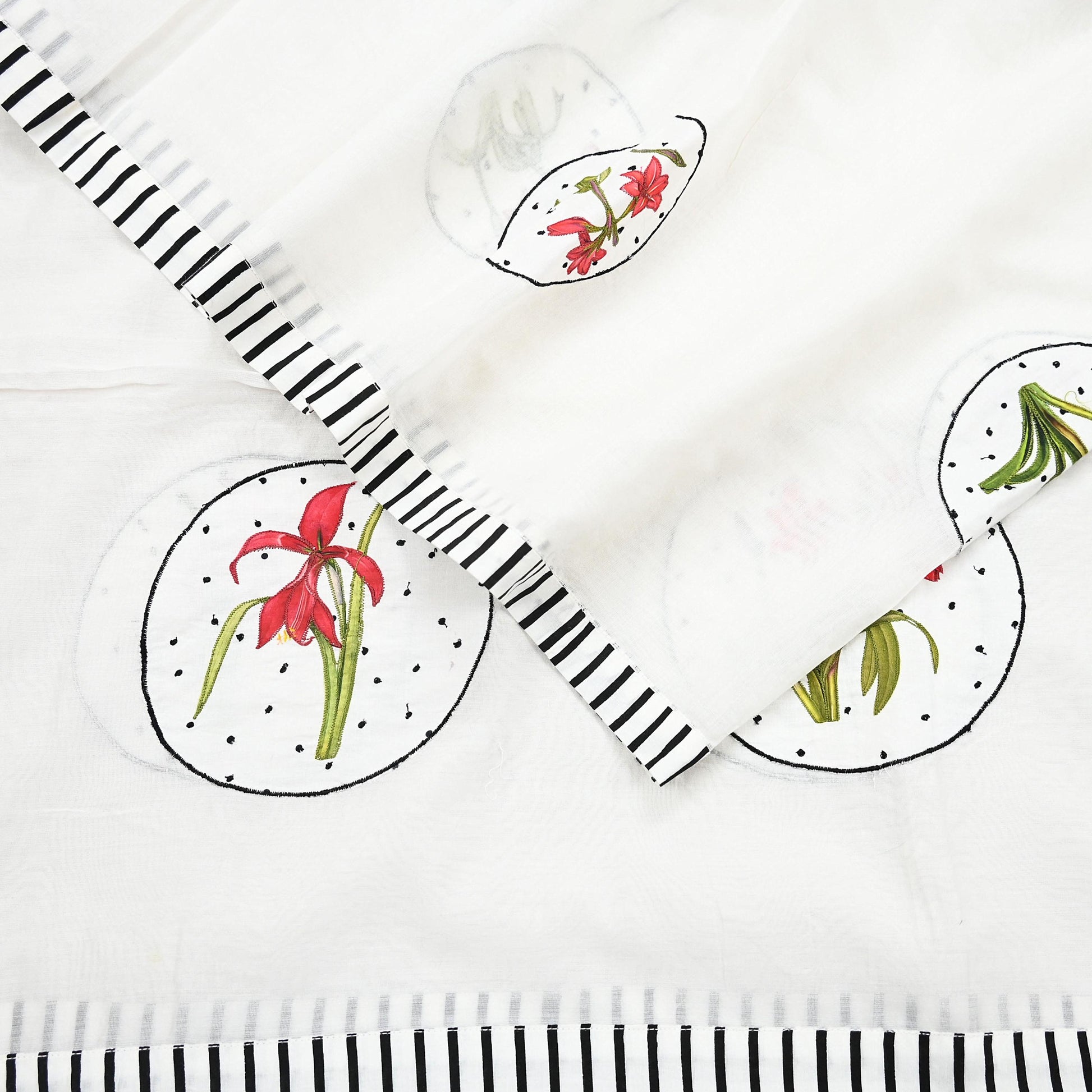 Attractive Cotton Border Work With Lovely Design On White Color Base Fabric Is Really Enhancing The Beauty Of The Dupatta.
