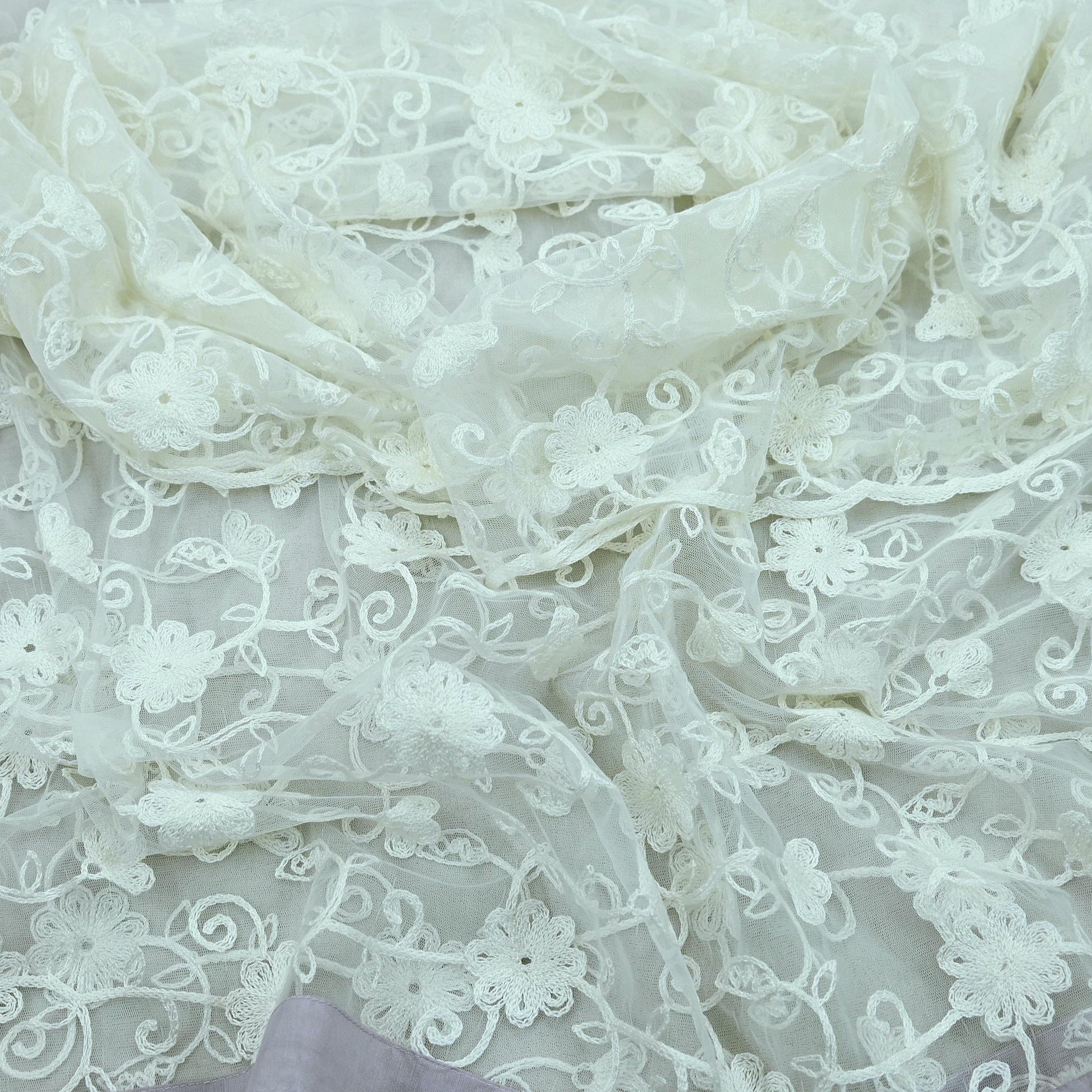 Indian Vintage White Dupatta Long Stole Net Mess Hand Embroidered Scarves Veil Hijab Sequins stole veil hijab