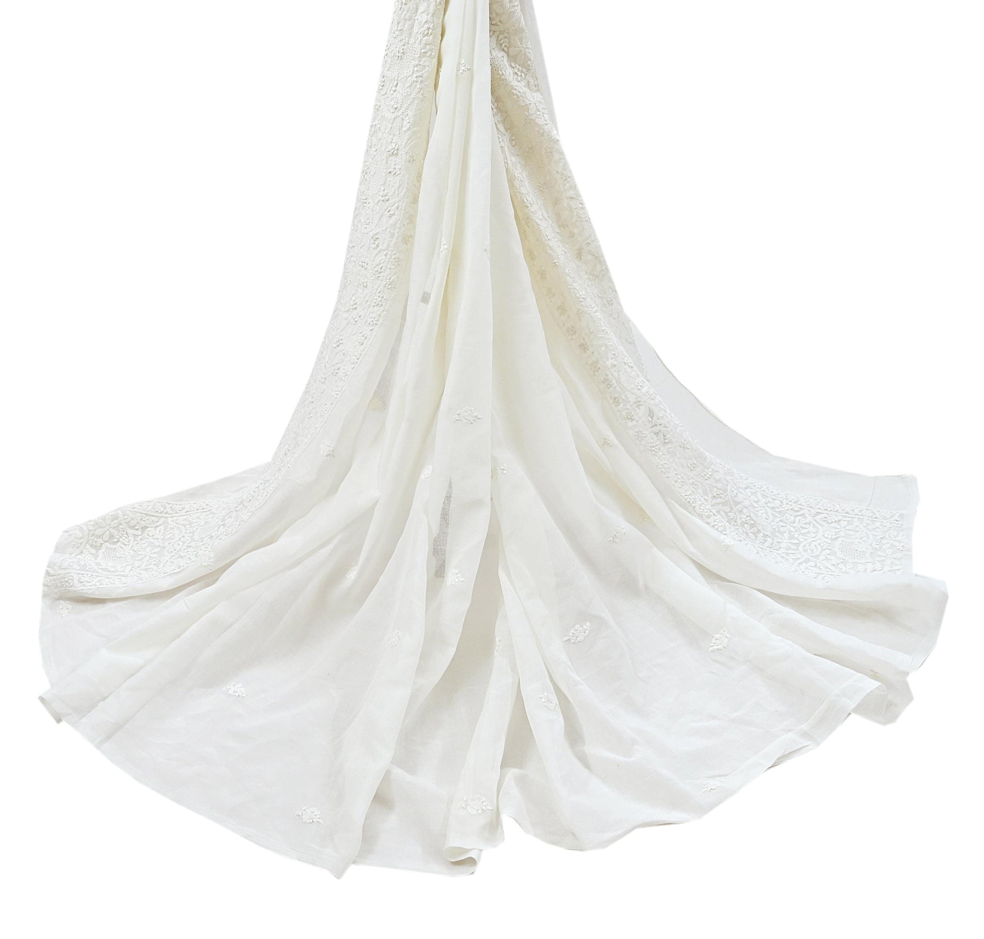 Indian Vintage White Dupatta Long Stole Pure Cotton Handmade Chikankari Scarves Veil Scarf Wrap Hippie Boho Soft