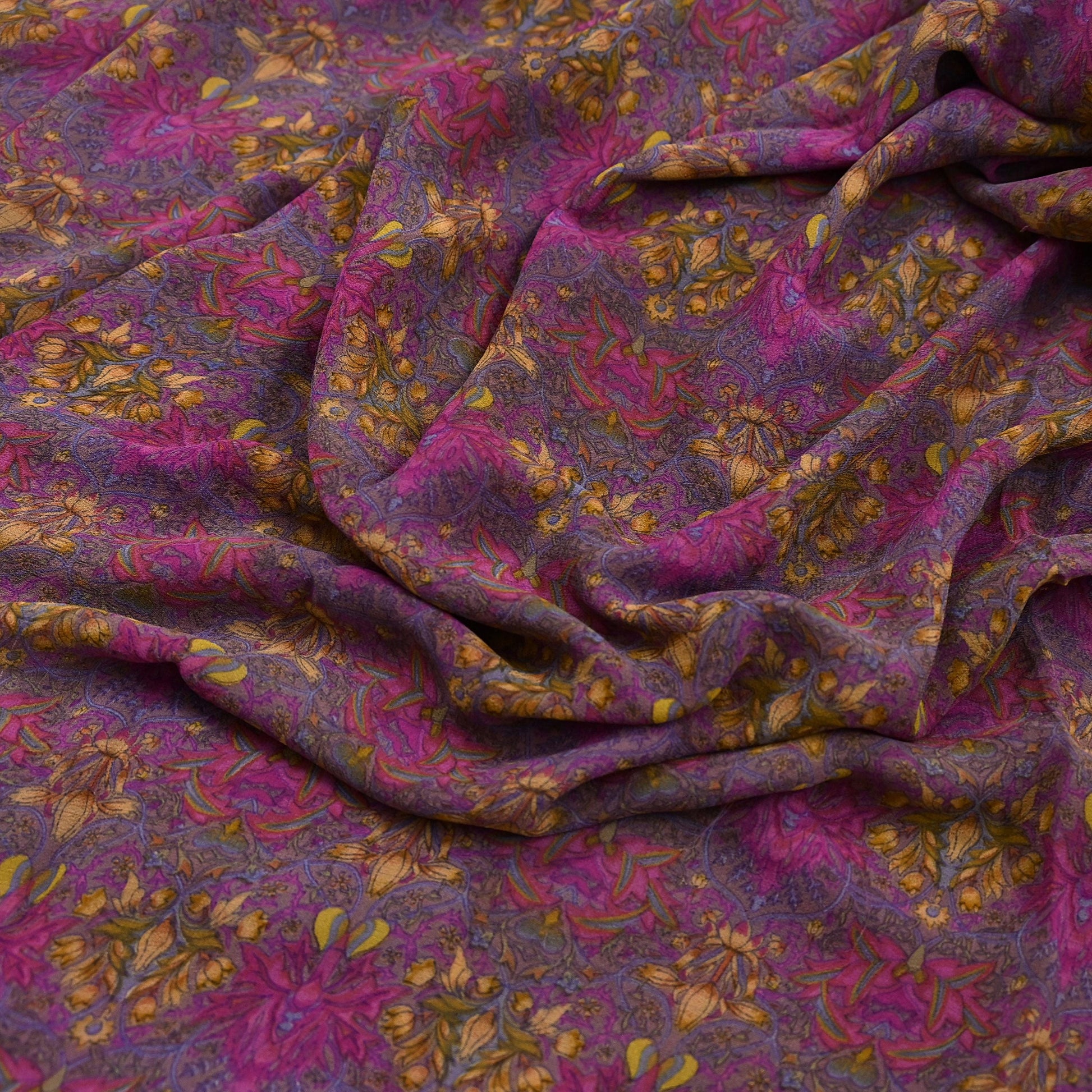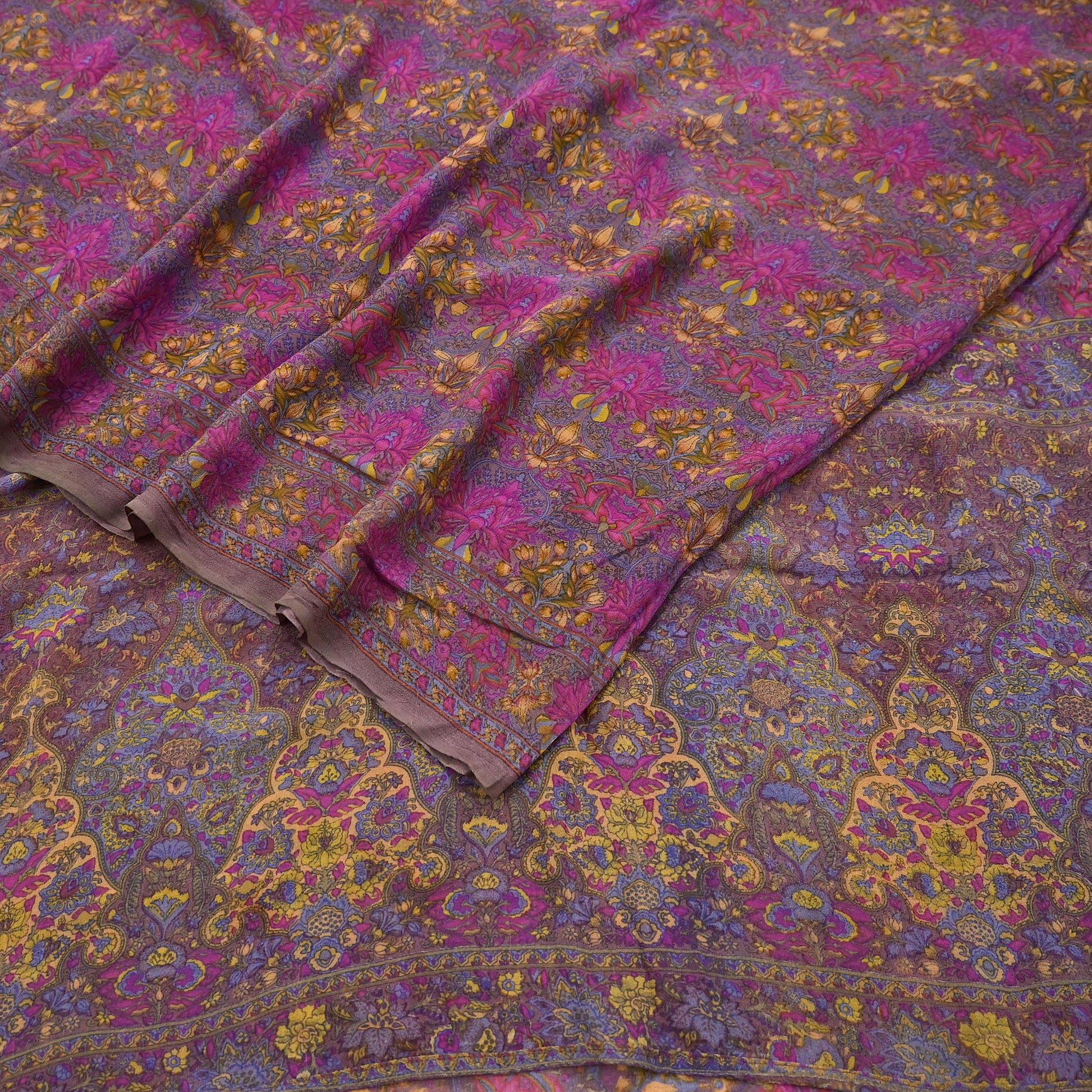 Indian Women Vintage Sari Brown 100% Pure Georgette Silk Printed Saree Sewing 5yd Soft Craft Fabric Floral Design Wrap Boho Dress making