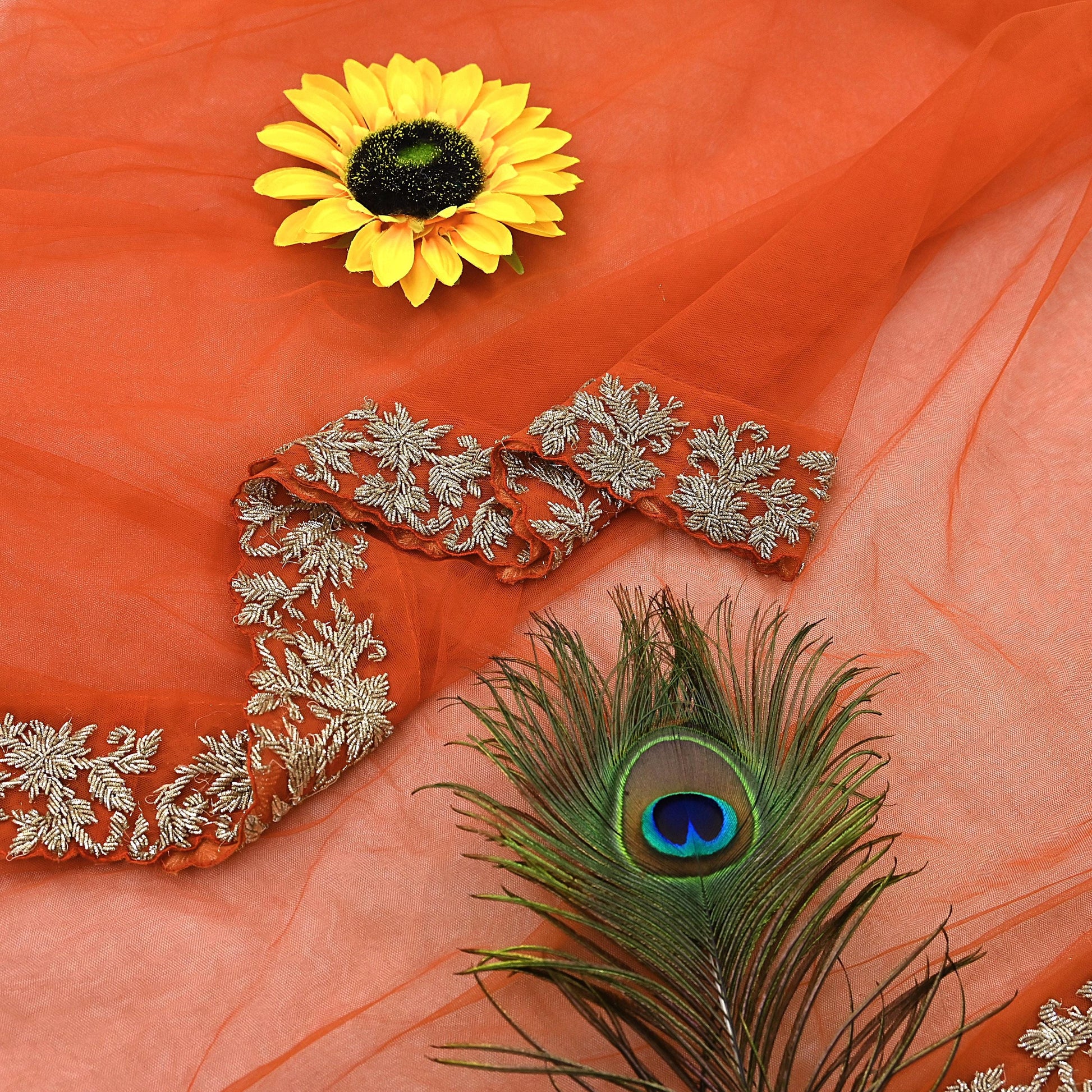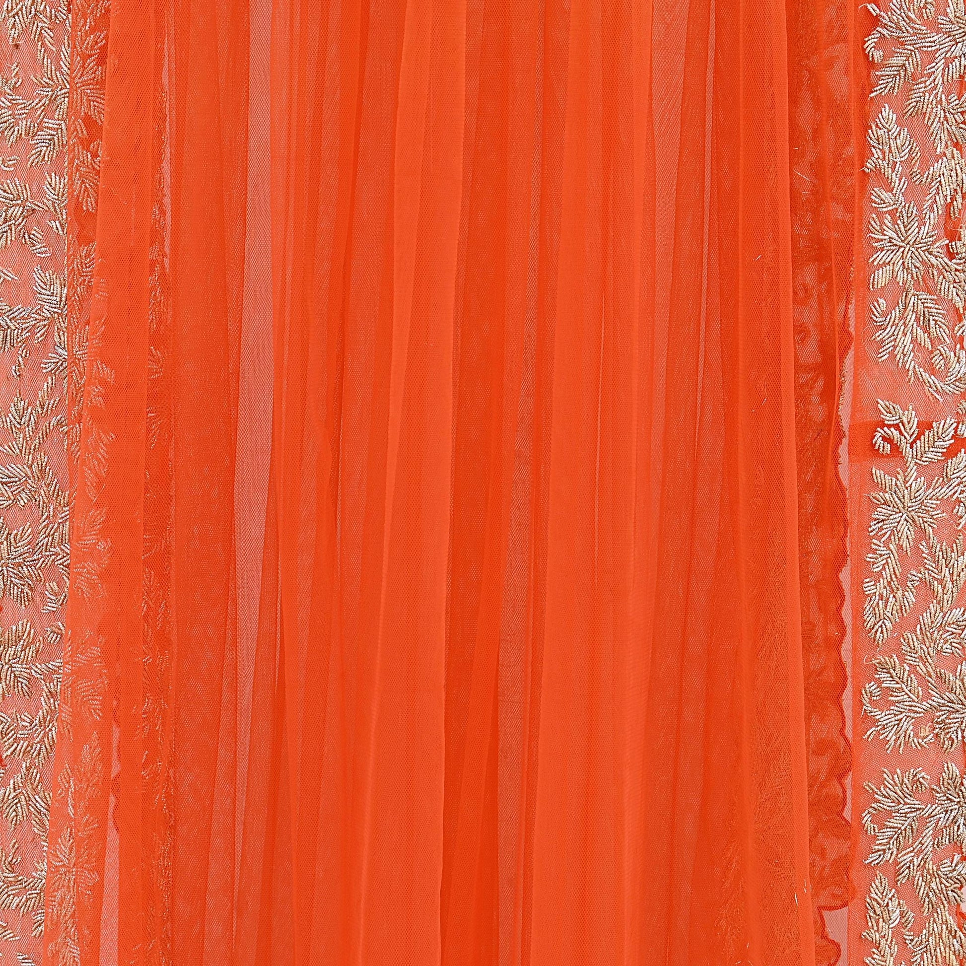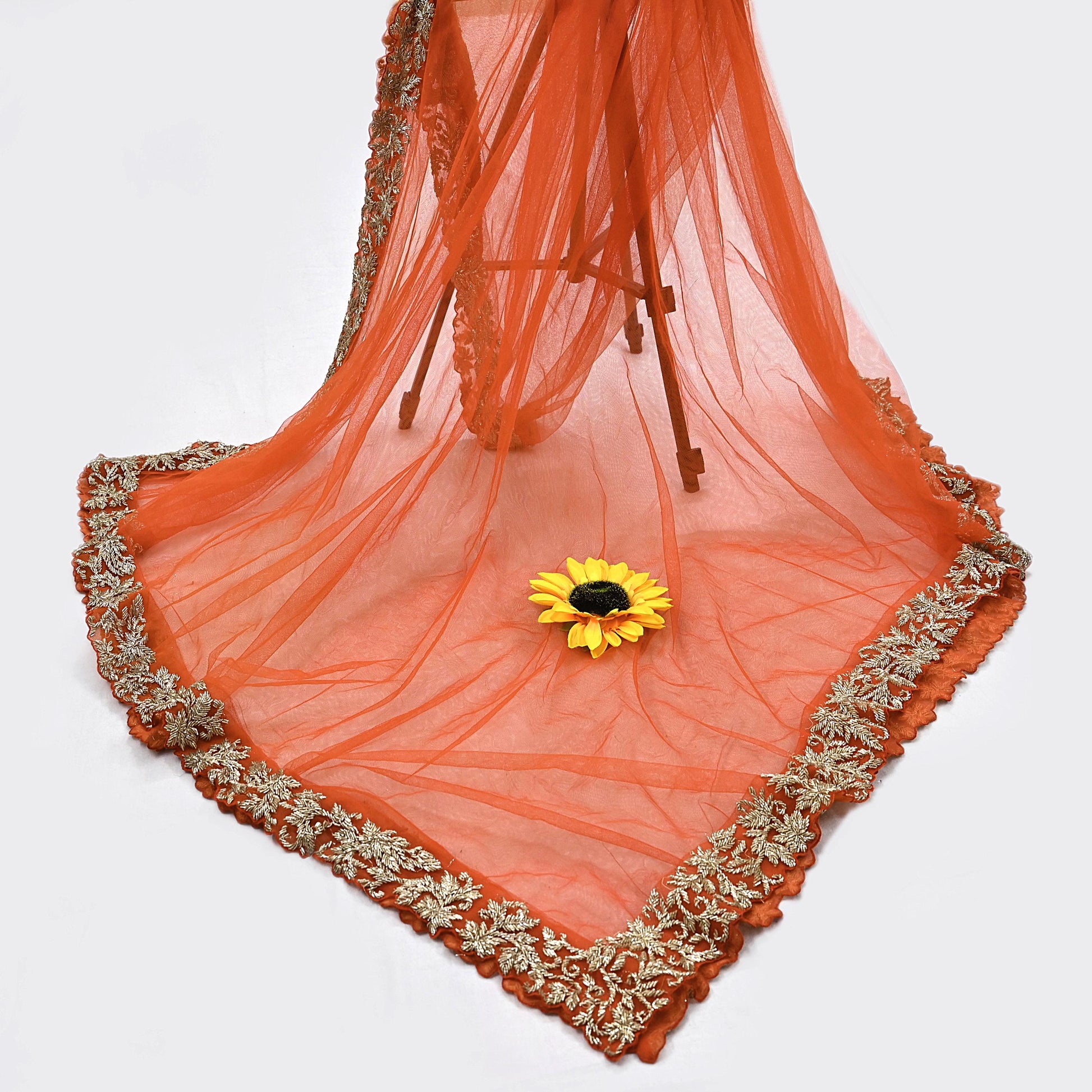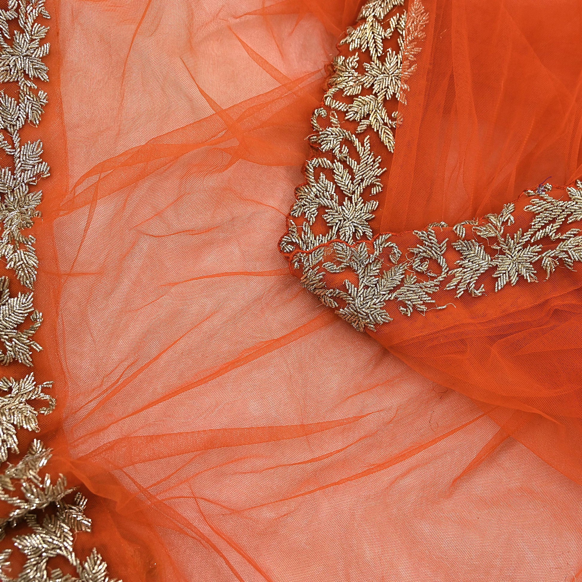 Stunning and Exquisite Heavy Hand-Embroidered Dupatta designed by Abdul Halder, crafted in luxurious orange net fabric. This couture masterpiece radiates elegance and opulence — truly a one-of-a-kind piece that’s difficult to express in words.