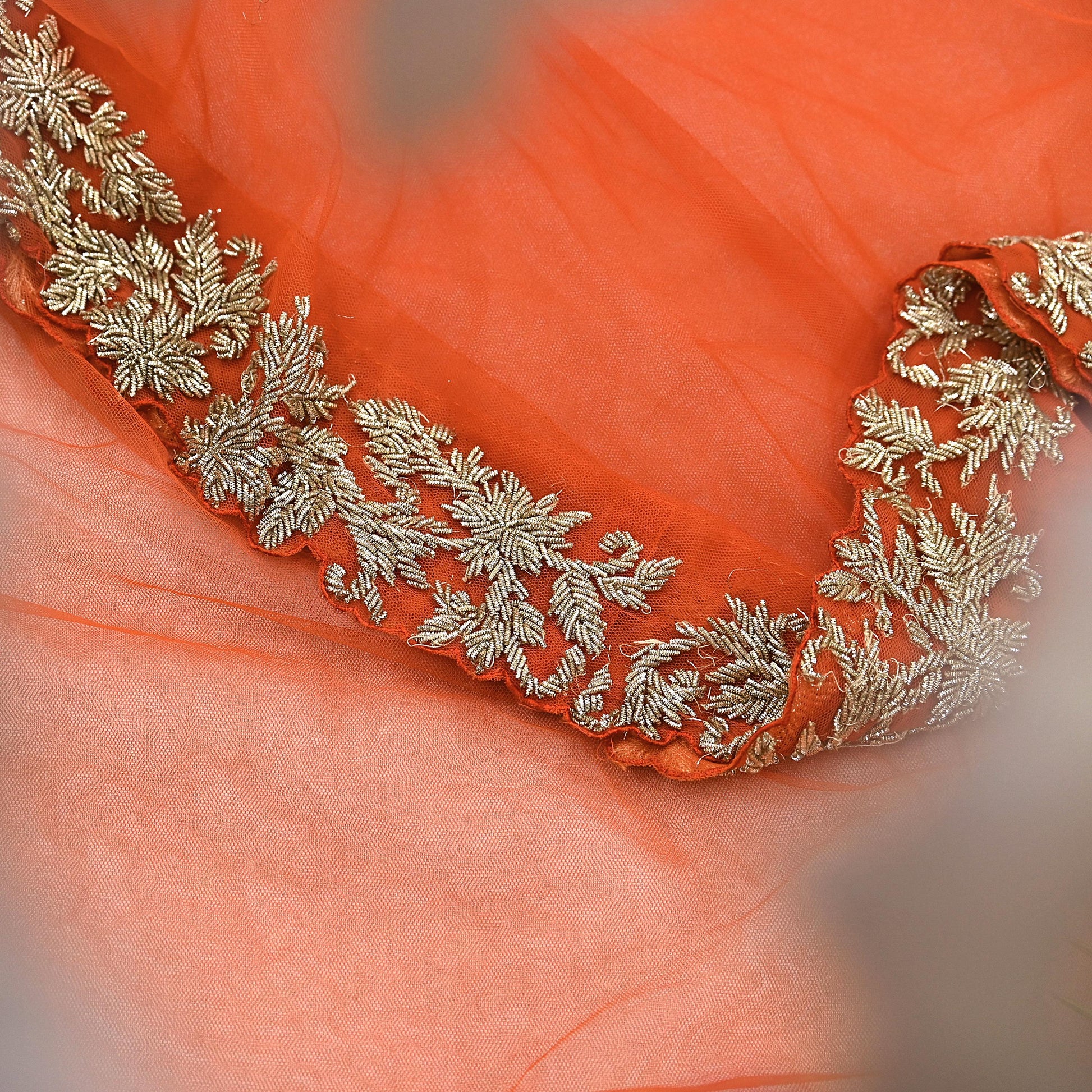 Keywords: orange dupatta, bridal veil, zardozi stole, wedding dupatta, abdul halder, festive scarf, indian couture, preowned dupatta, designer stole, luxury veil, hand embroidered, christmas gift, holiday wedding, hand embroidered net dupatta, orange wedding bridal stole, golden zardozi dabka embroidery, abdul halder couture accessory, indian bridal designer dupatta, sheer net golden border veil, handcrafted festive indian fashion, traditional zardozi embroidery stole, luxury ethnic wedding dupatta, vintage couture bridal scarf, metallic threadwork designer veil, festive orange net hand embroidery, christmas orange bridal accessory