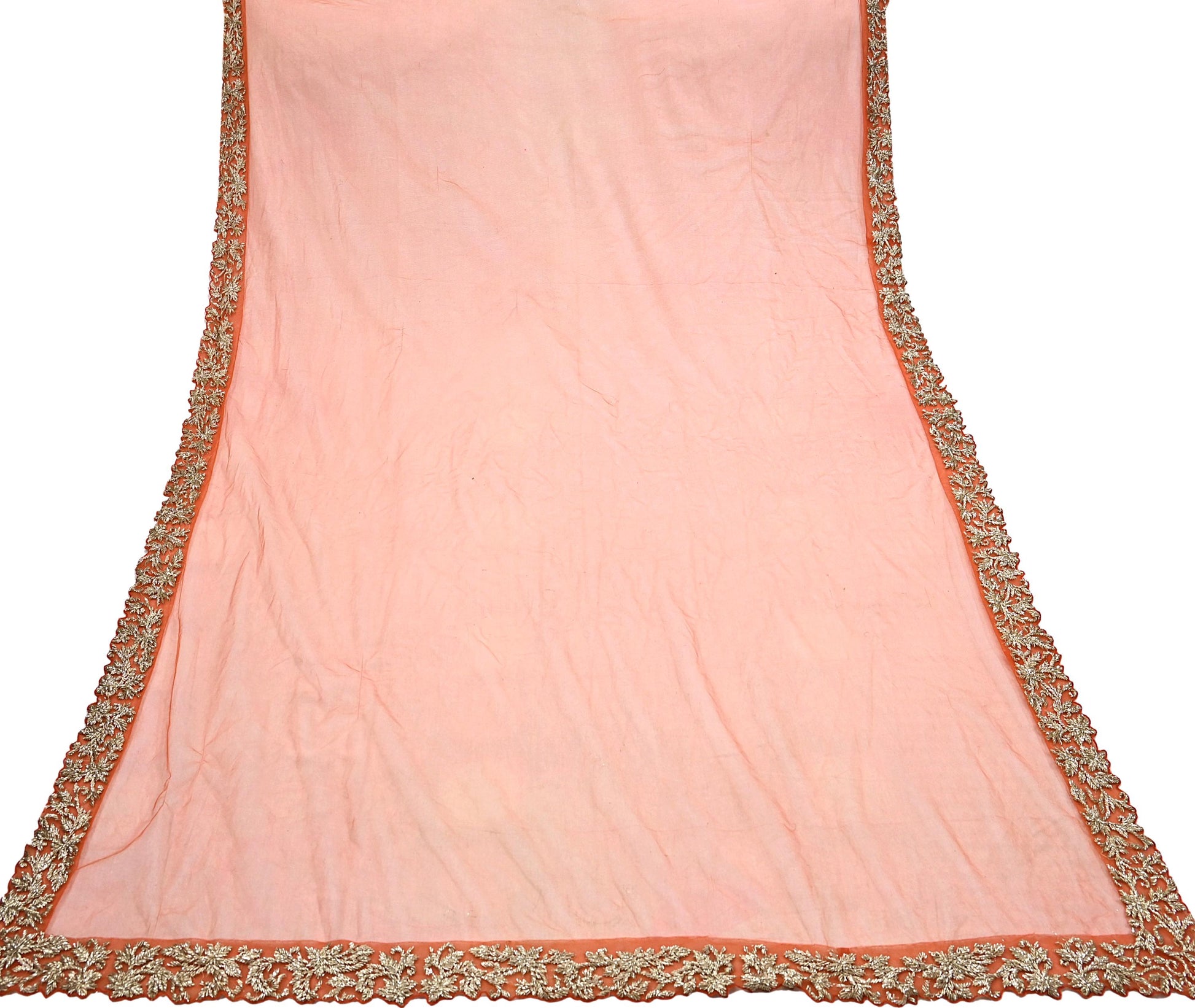 Orange Net Hand Embroidered Dupatta by Abdul Halder Indian Wedding Bridal Veil Heavy Zardozi Designer Stole Pre-Owned Couture