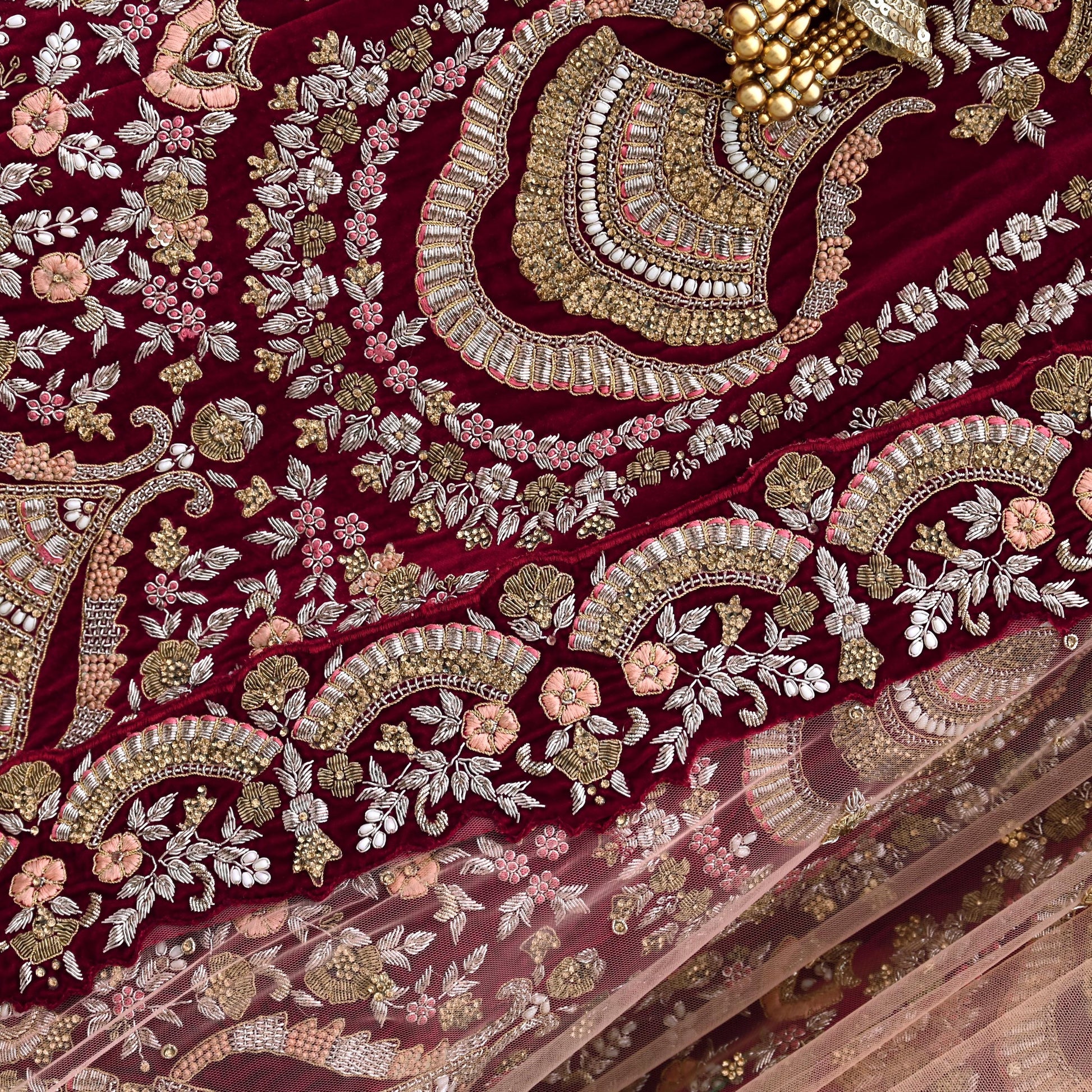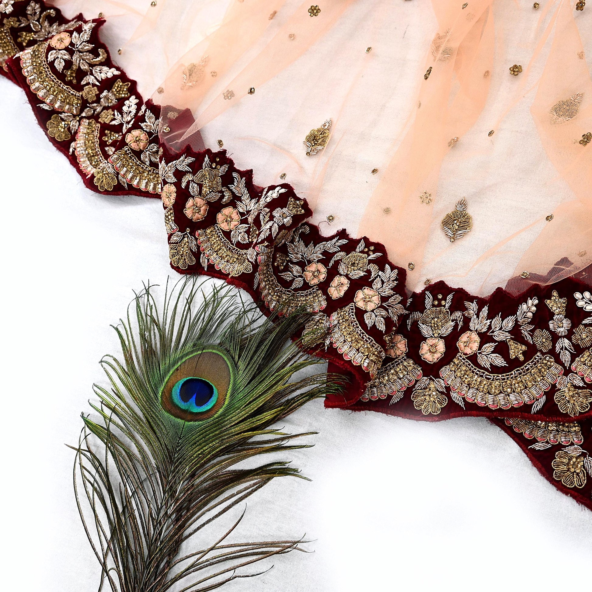 Fabric: Maroon Velvet Skirt & Peach Net Dupatta