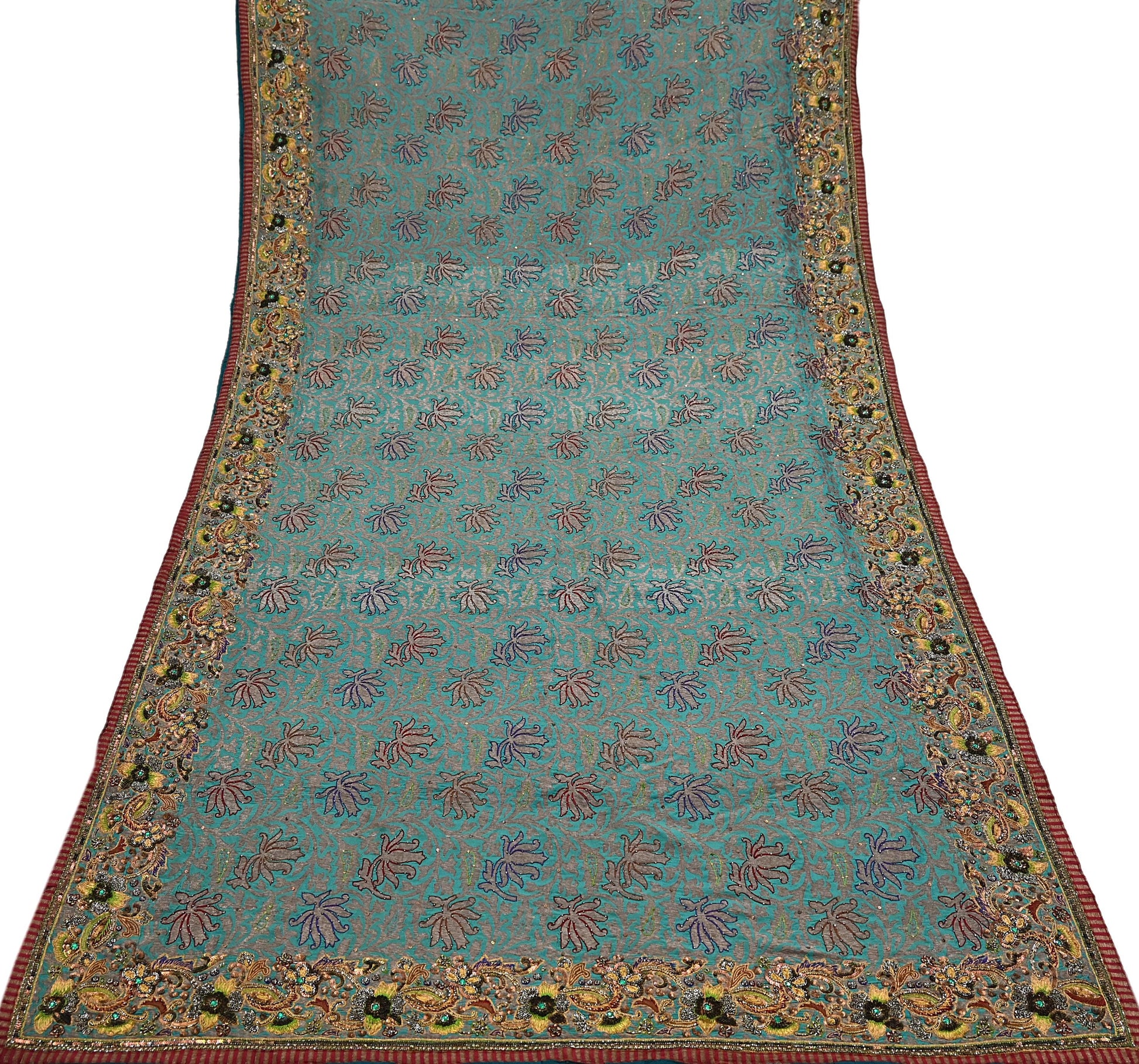 Work: Handwoven brocade + heavy gold zardozi embroidery With Golden Border work.