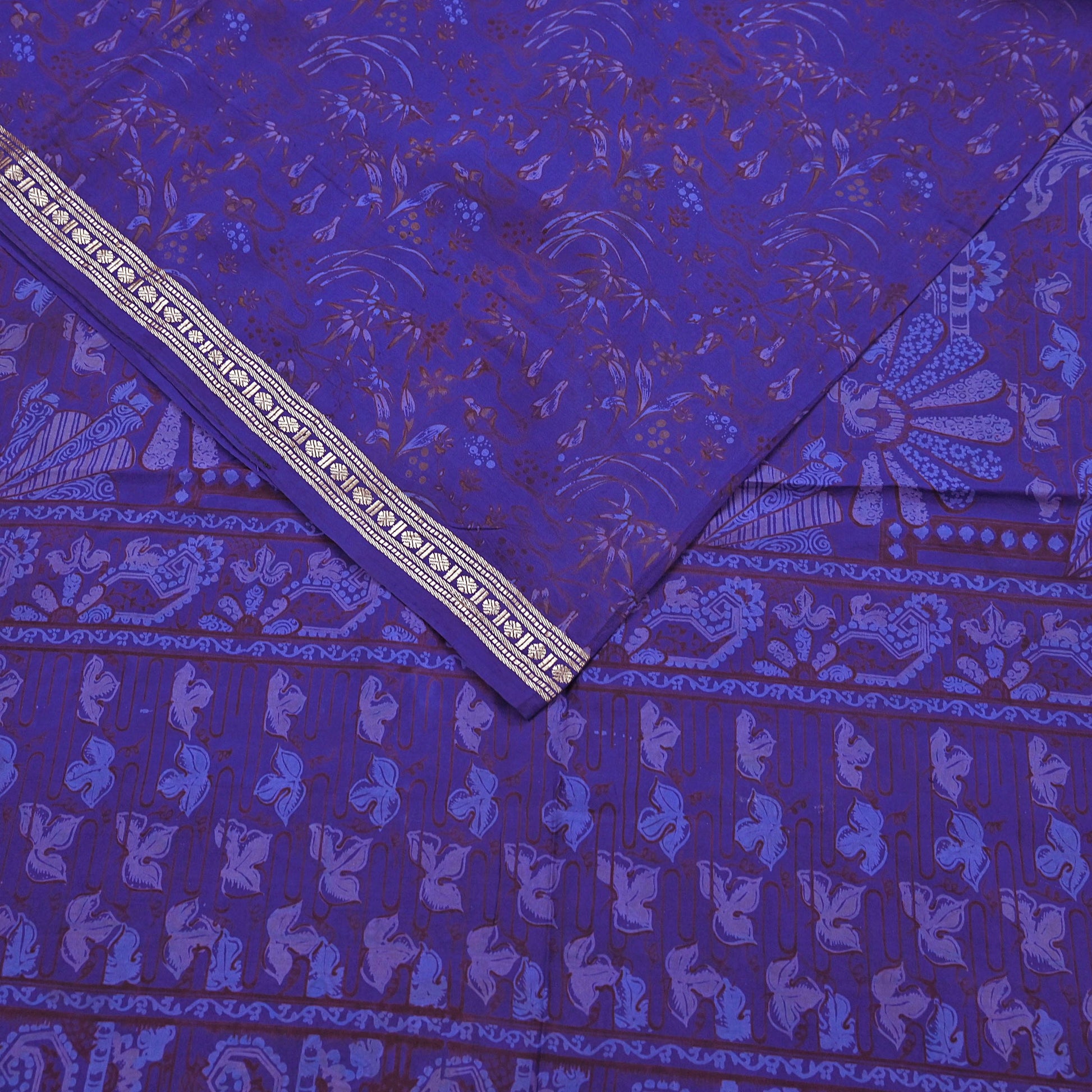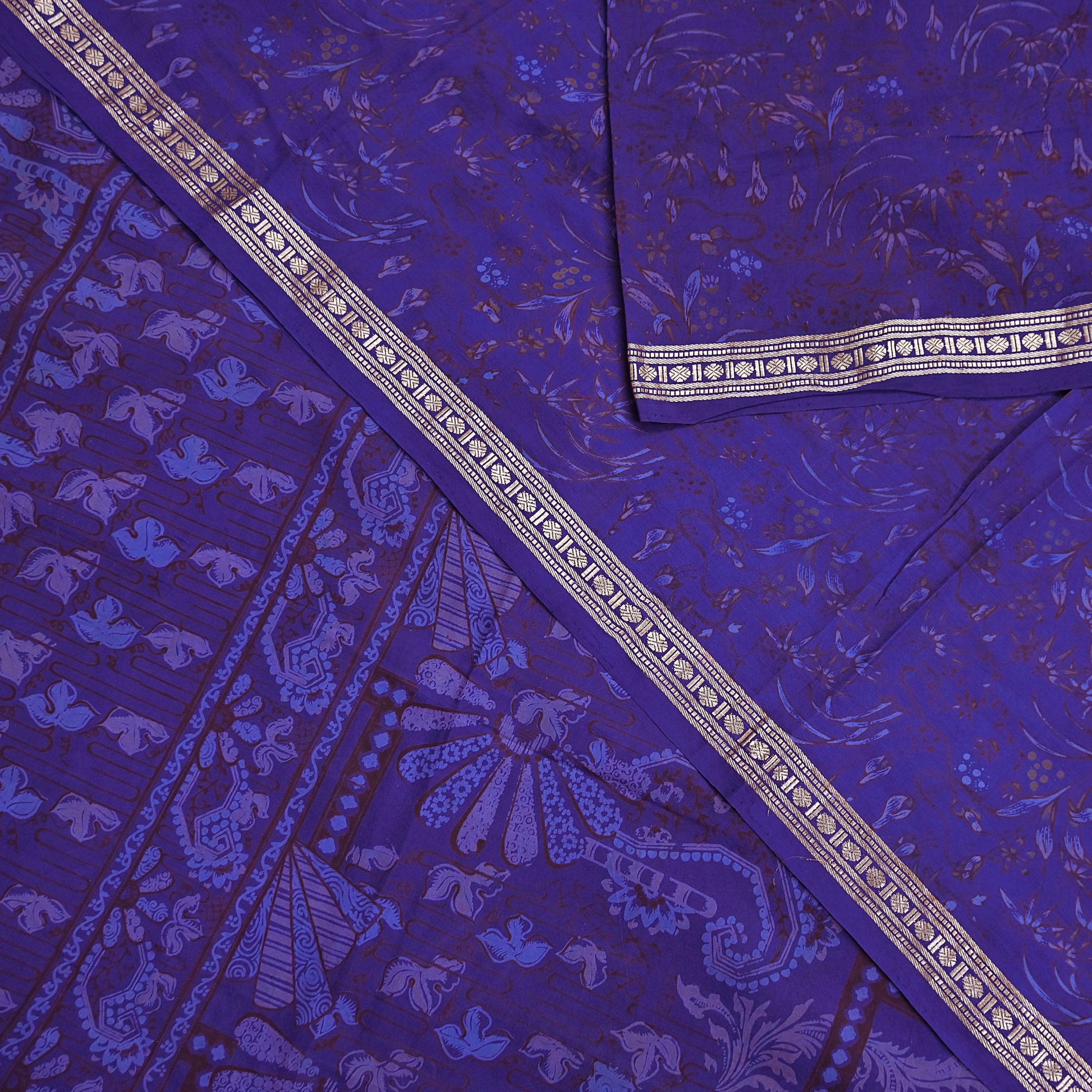 Add timeless Indian artistry to your creative projects with this Vintage Blue Pure Silk Saree, featuring an intricate floral pattern woven with delicate metallic gold zari borders. This handwoven silk textile captures traditional Indian craftsmanship and elegance — ideal for collectors, designers, and fabric enthusiasts.