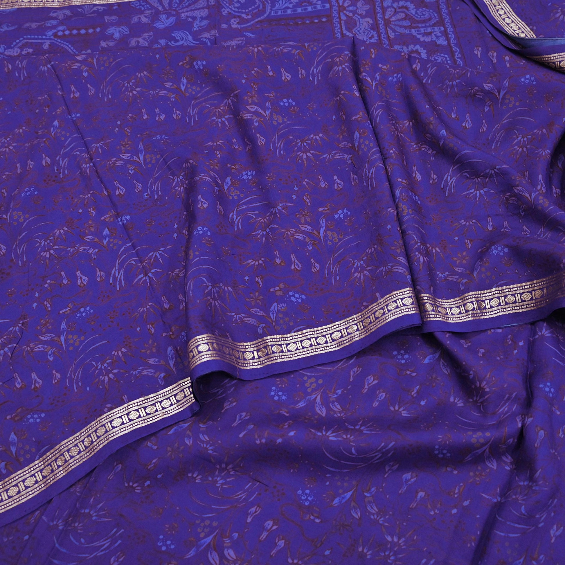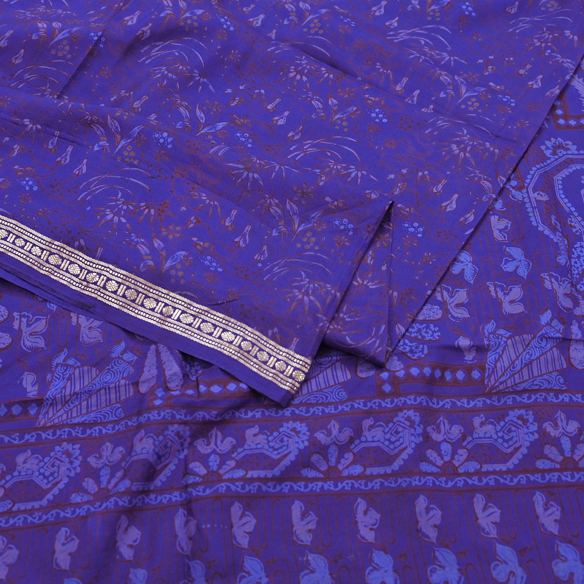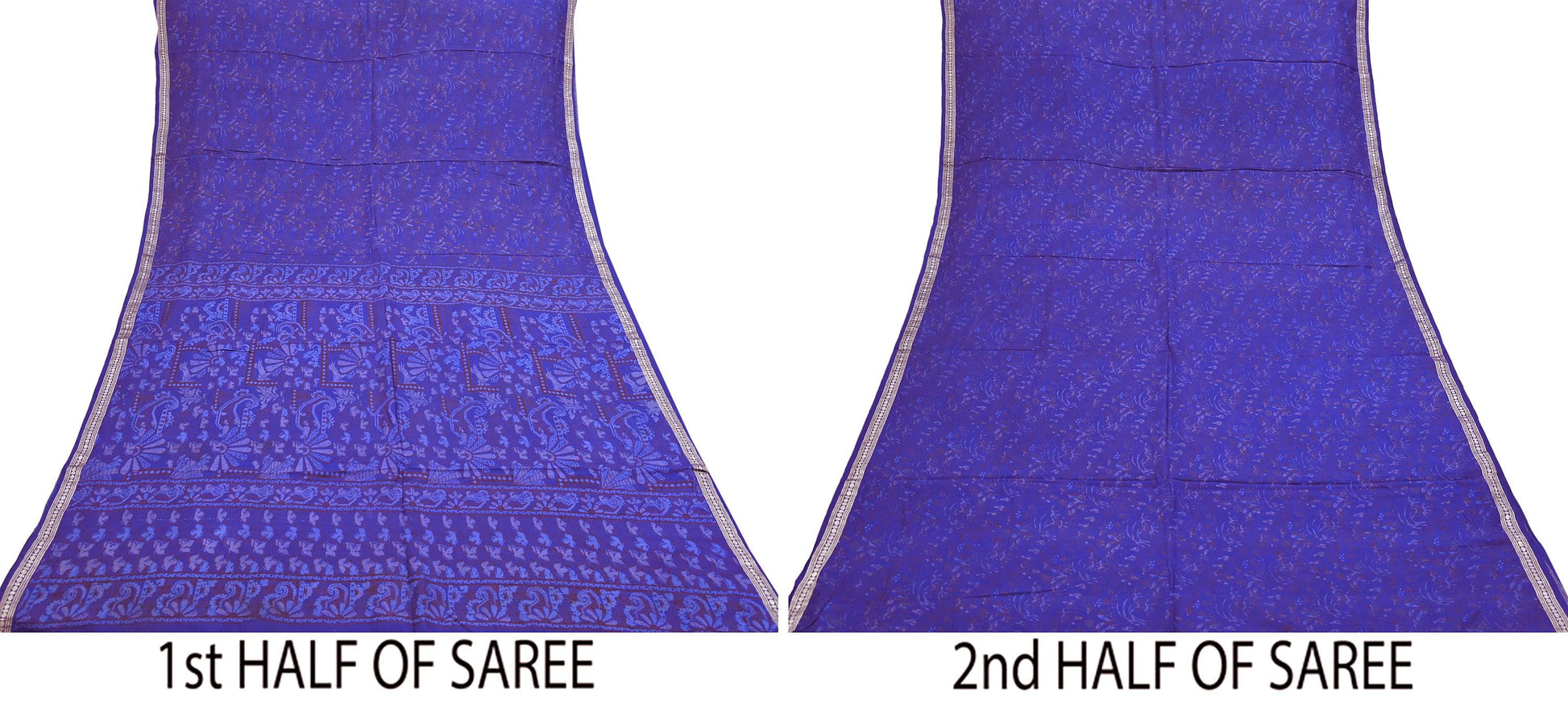 Vintage Blue Pure Silk Saree Indian Printed Silk Fabric 5 Yards Boho Craft Material for Sewing, Quilting, Dressmaking, Upcycling