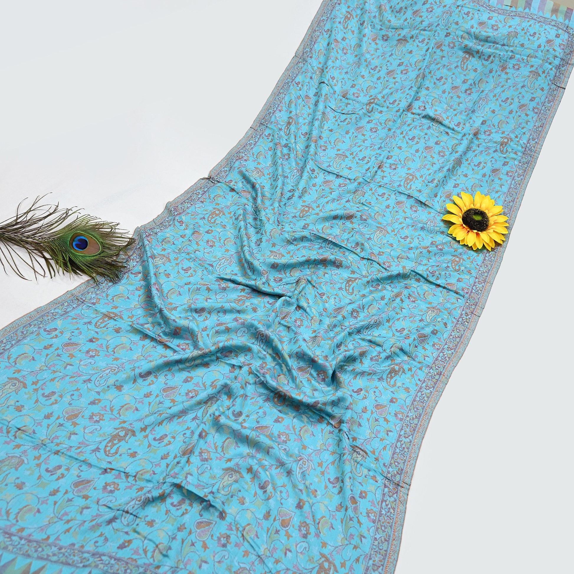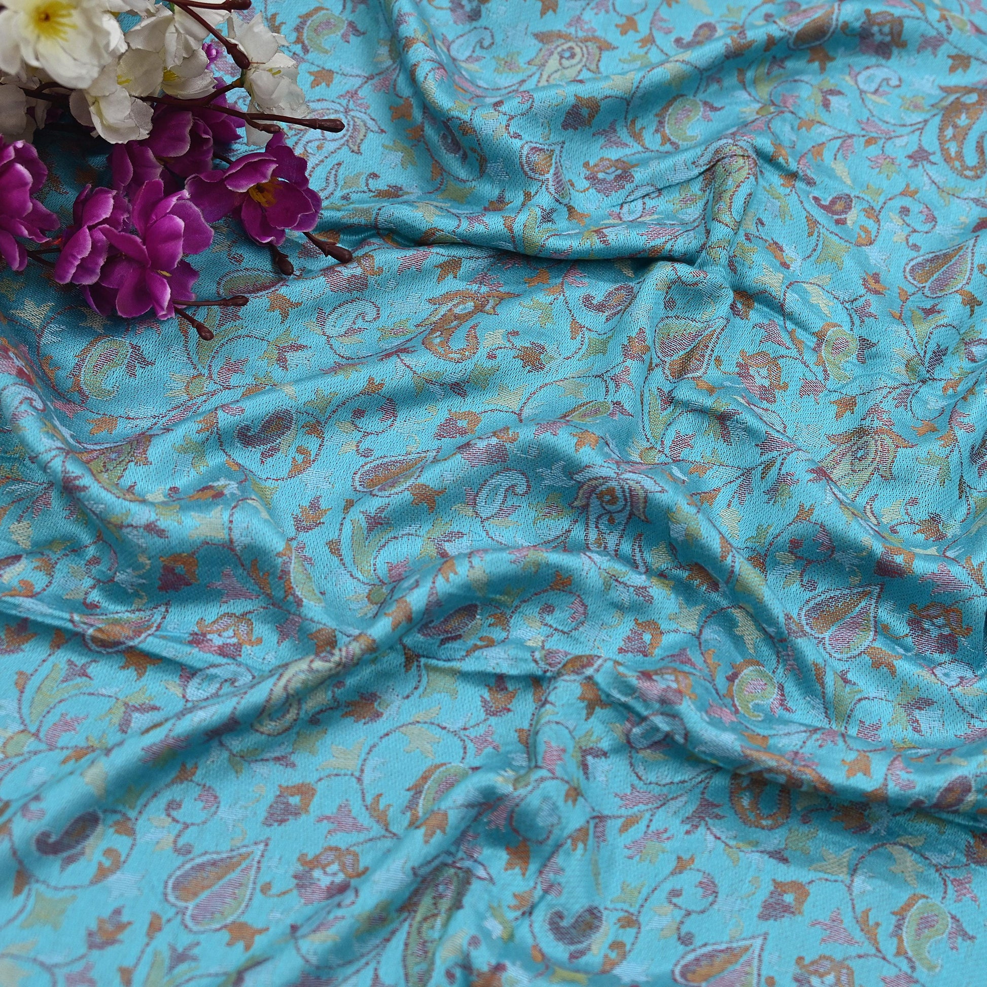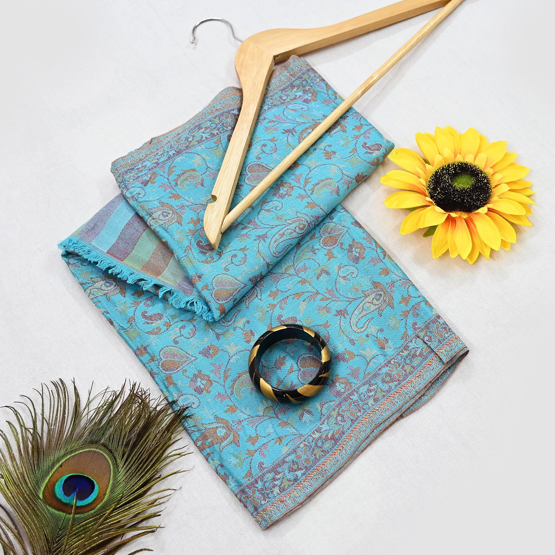 We Are Offering You A Vintage Blue Color Viscose Stole/Shawl Which Adorns Hand Woven Work. Shawl has handmade Traditional Hand Woven work design with floral & Paisley design. Shawl has matching fringes on both ends of borders. This cozy, warm and fuzzy stool is soft against skin due to the mellow woolen fabric. A truly gorgeous piece which will also make an admirable gift.