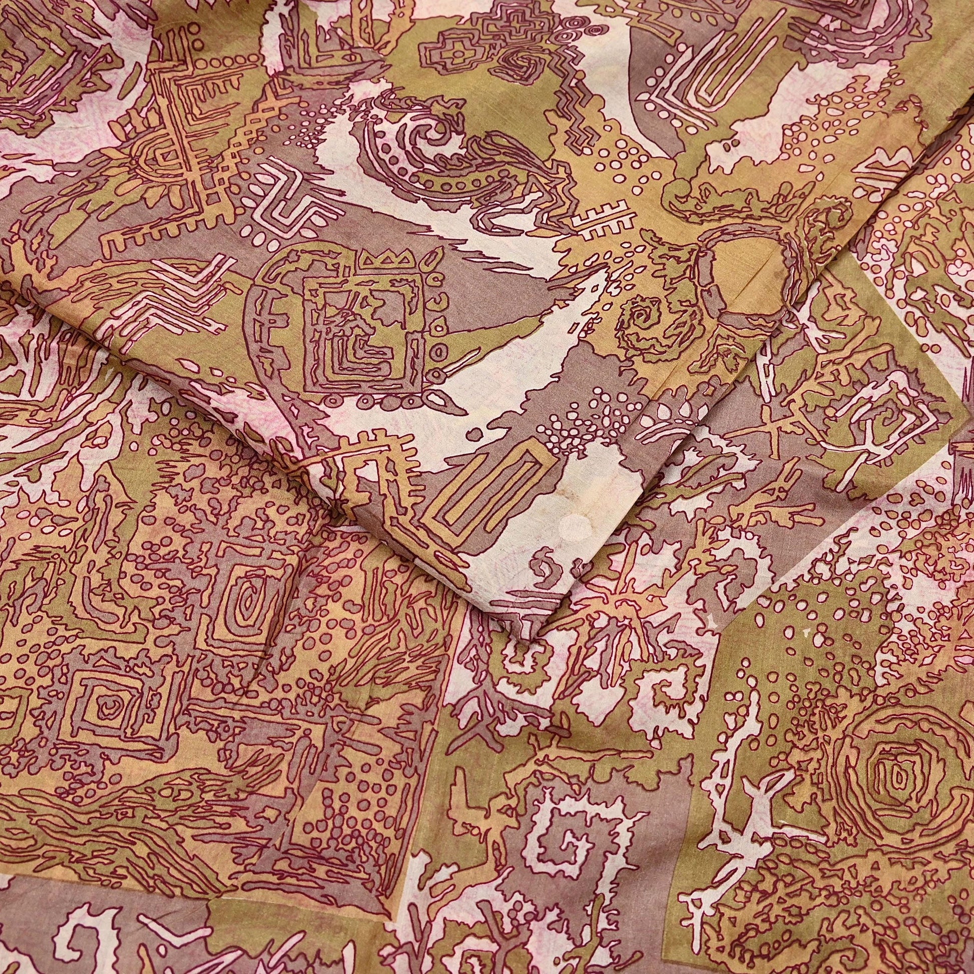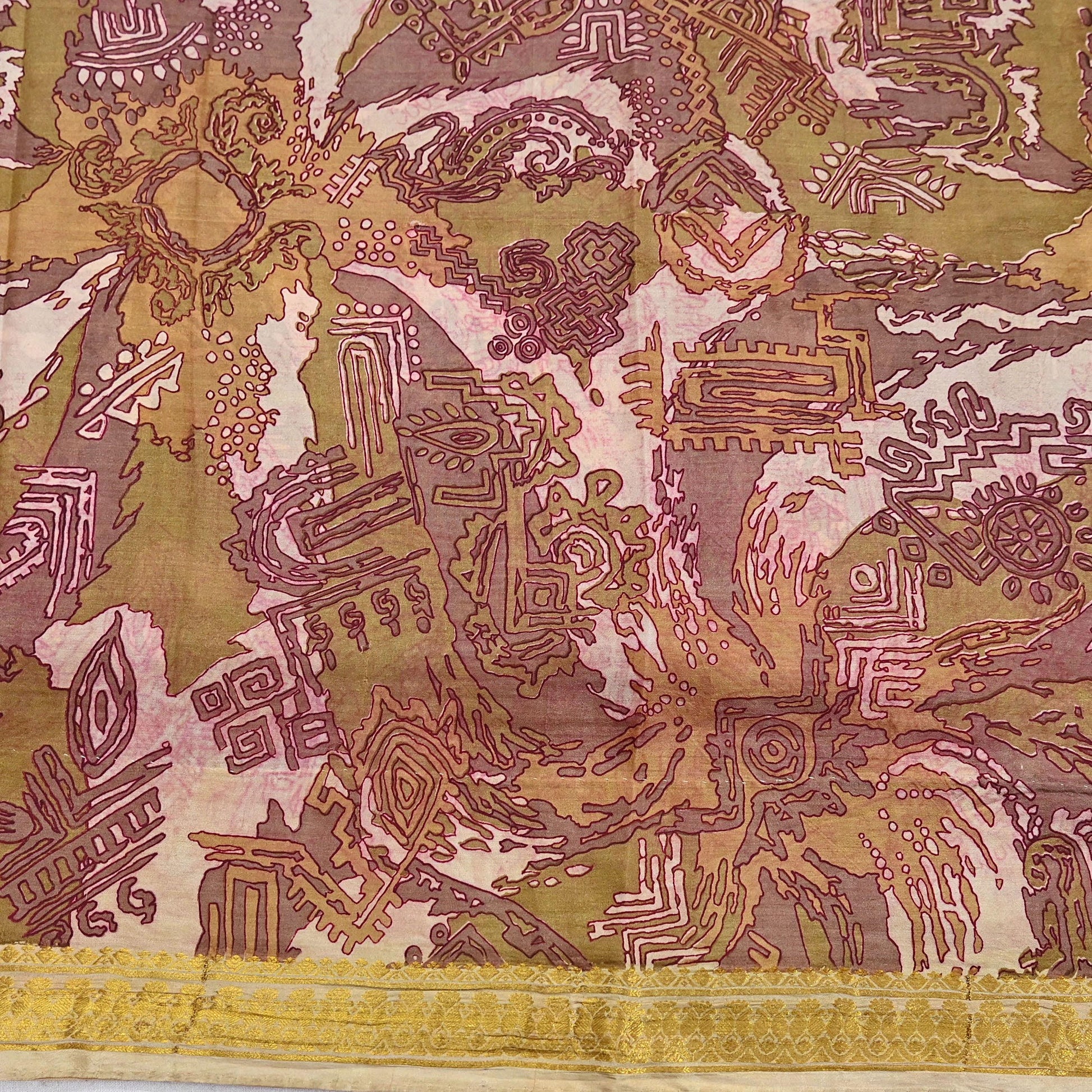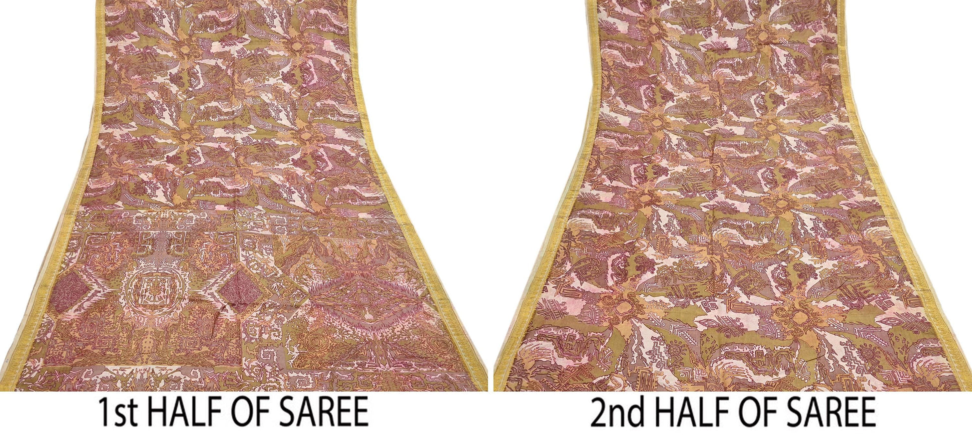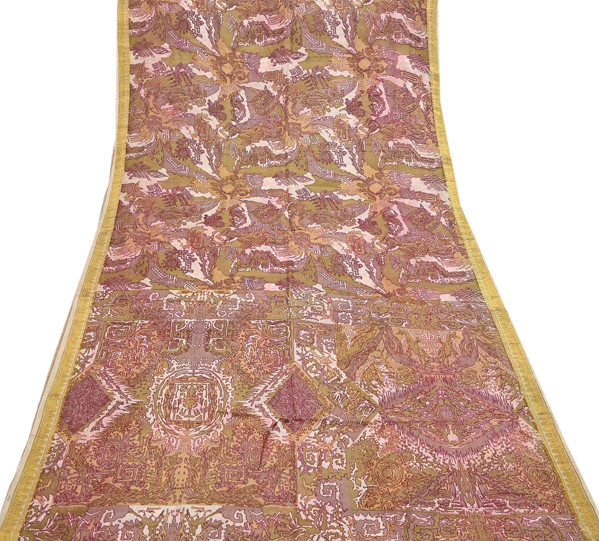 Vintage Green, Beige Pure Silk Saree Indian Printed Silk Fabric 5 Yards Boho Craft Material for Sewing, Quilting, Dressmaking, Upcycling