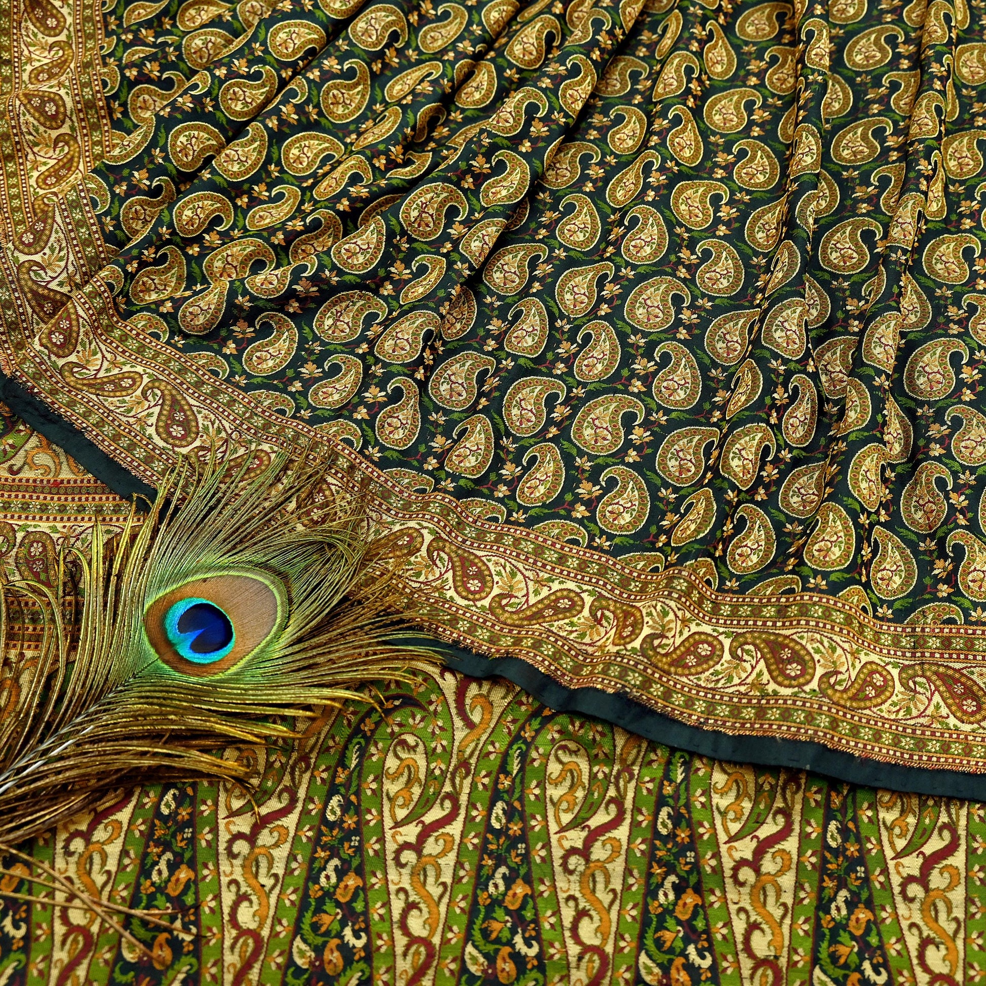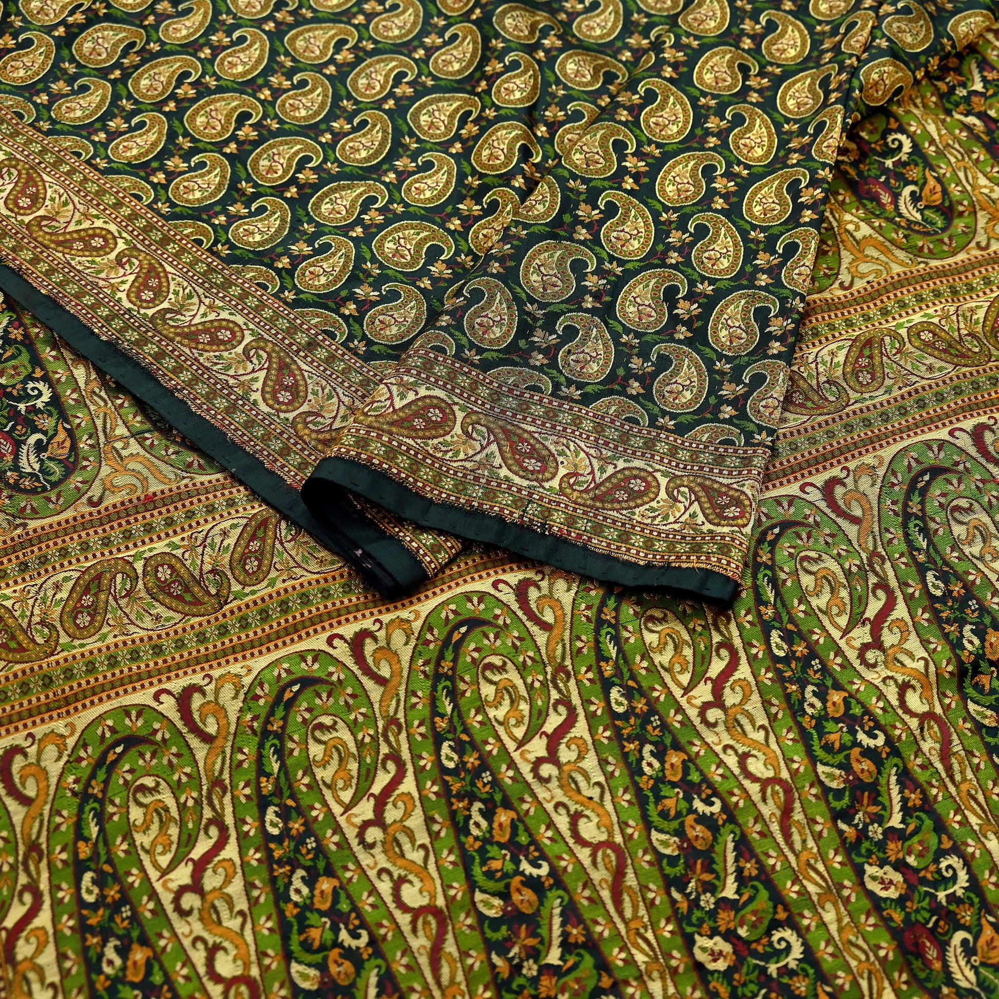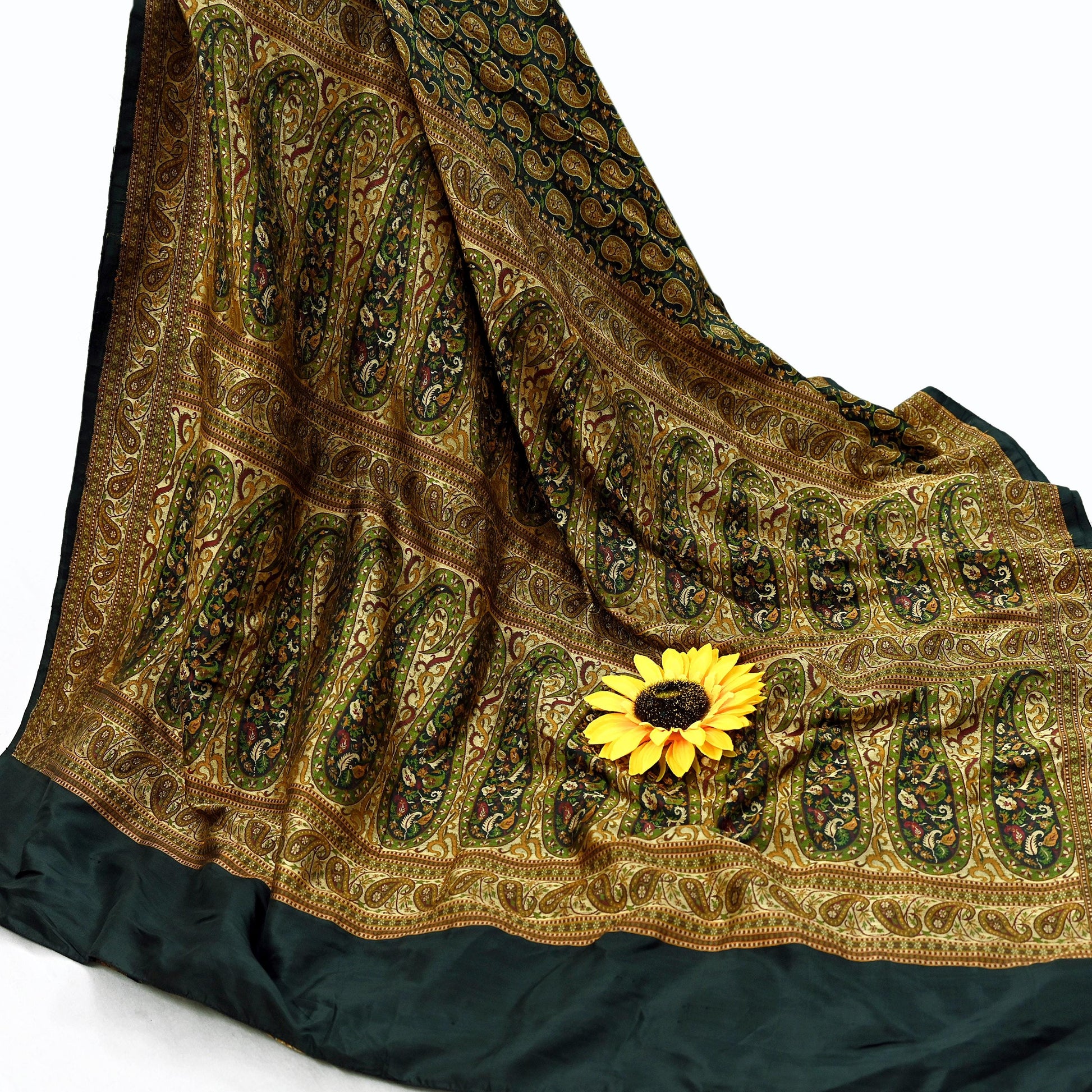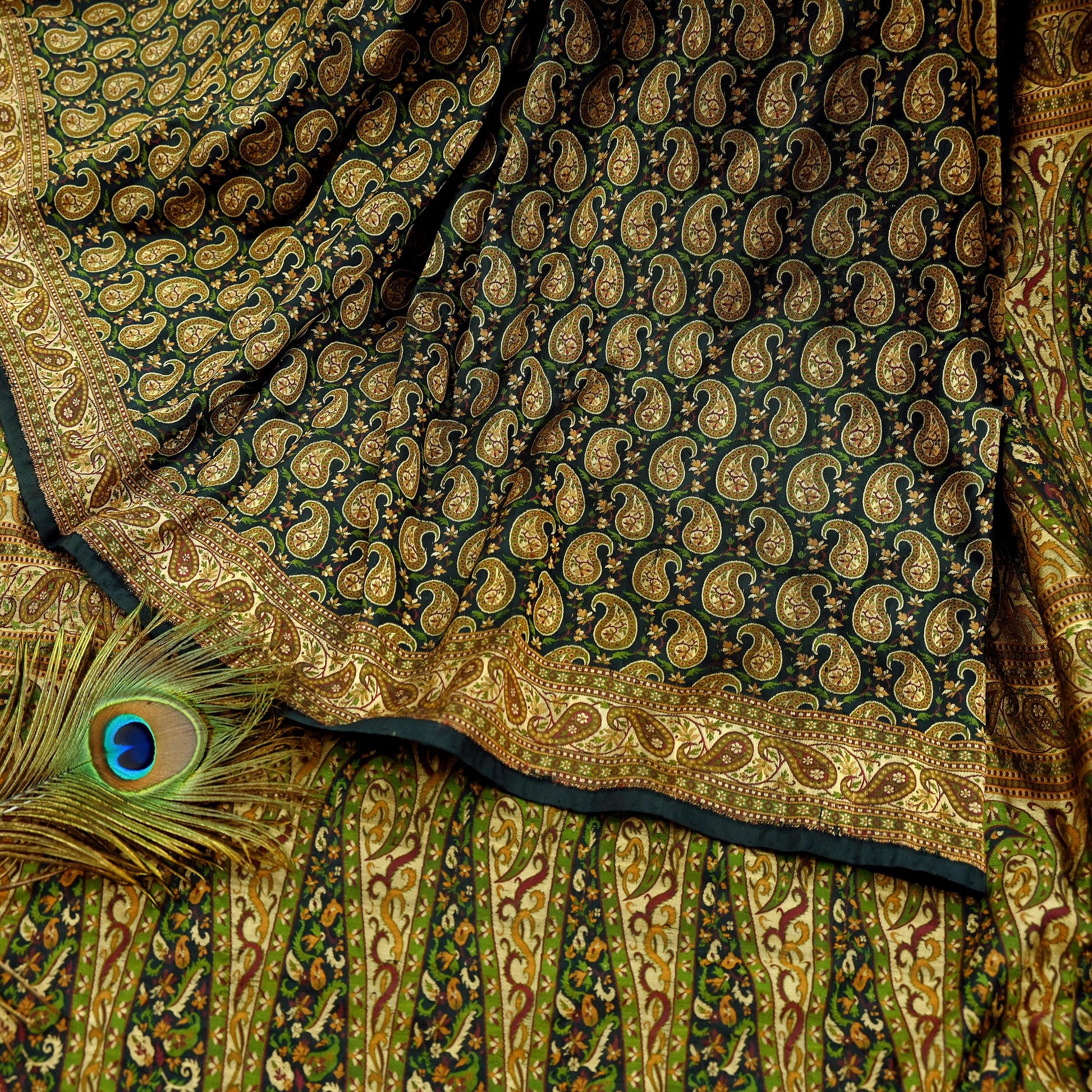 *Awesome Beautiful Antique Vintage Black Colored Hand Woven Kashmiri Pure Silk Sari.