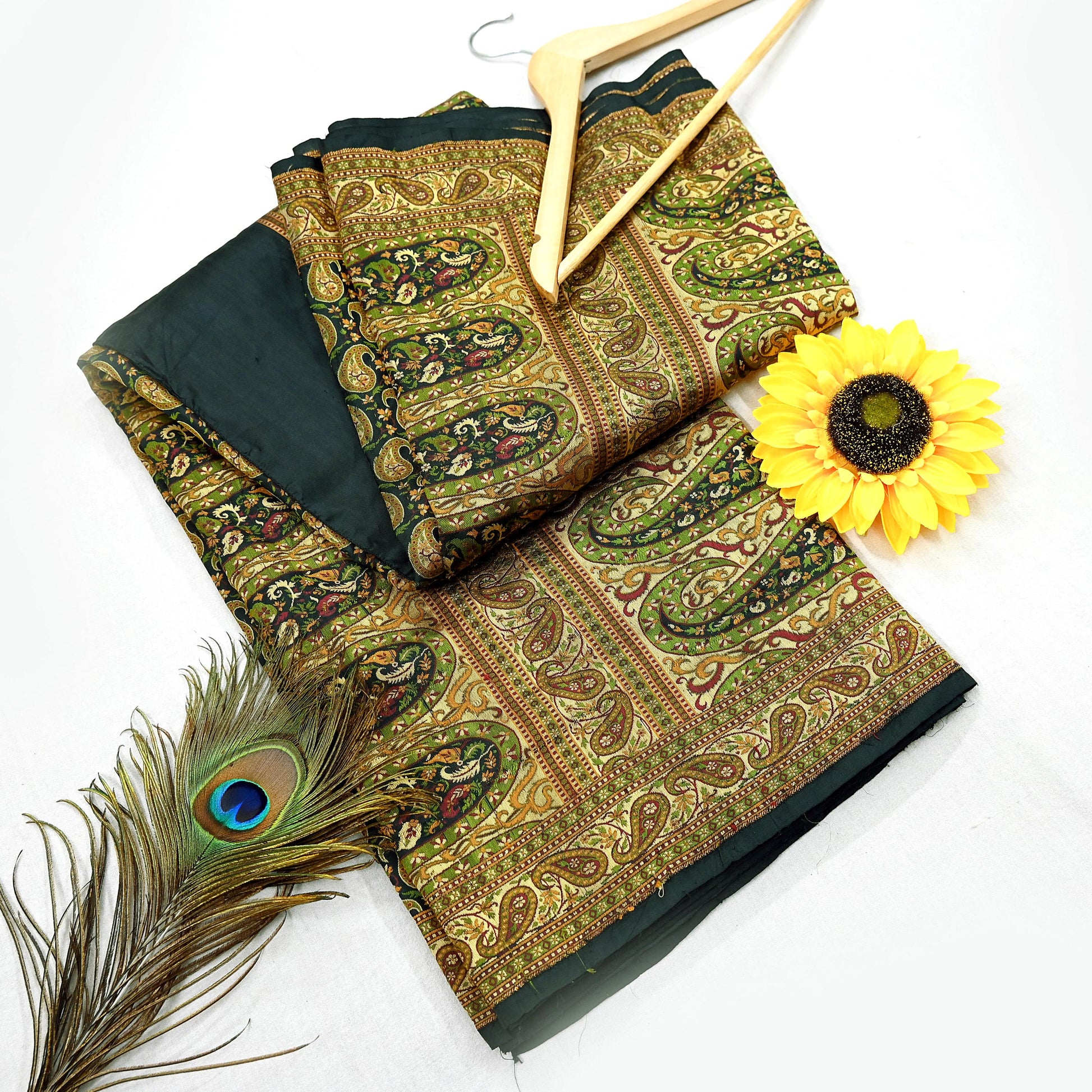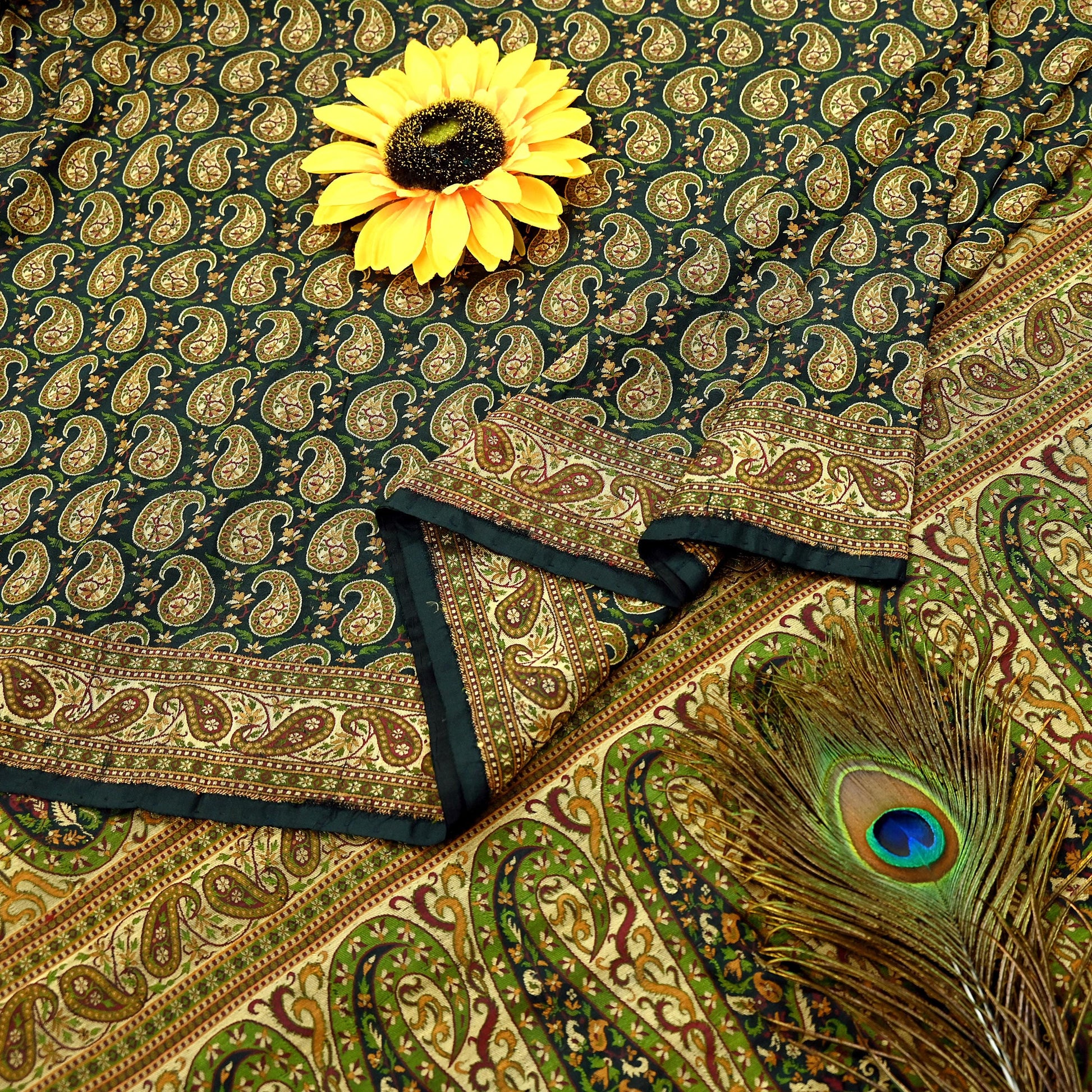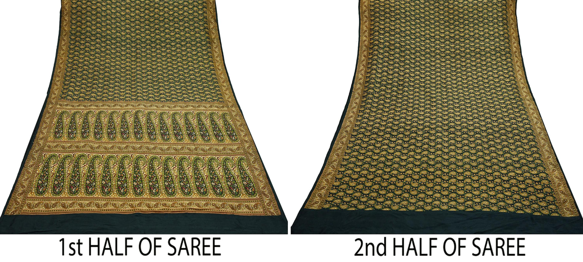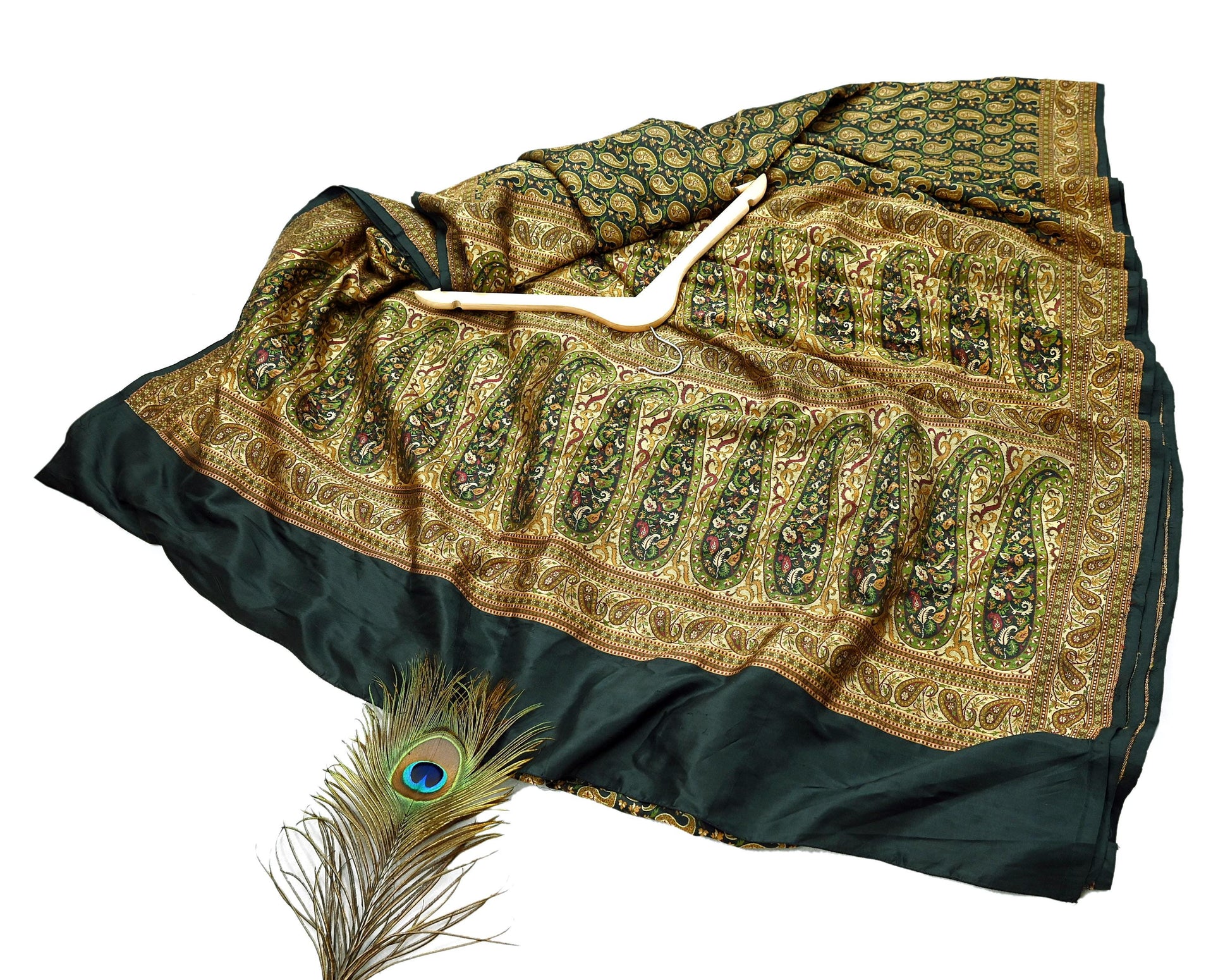 *Awesome Beautiful Antique Vintage Black Colored Hand Woven Kashmiri Pure Silk Sari.