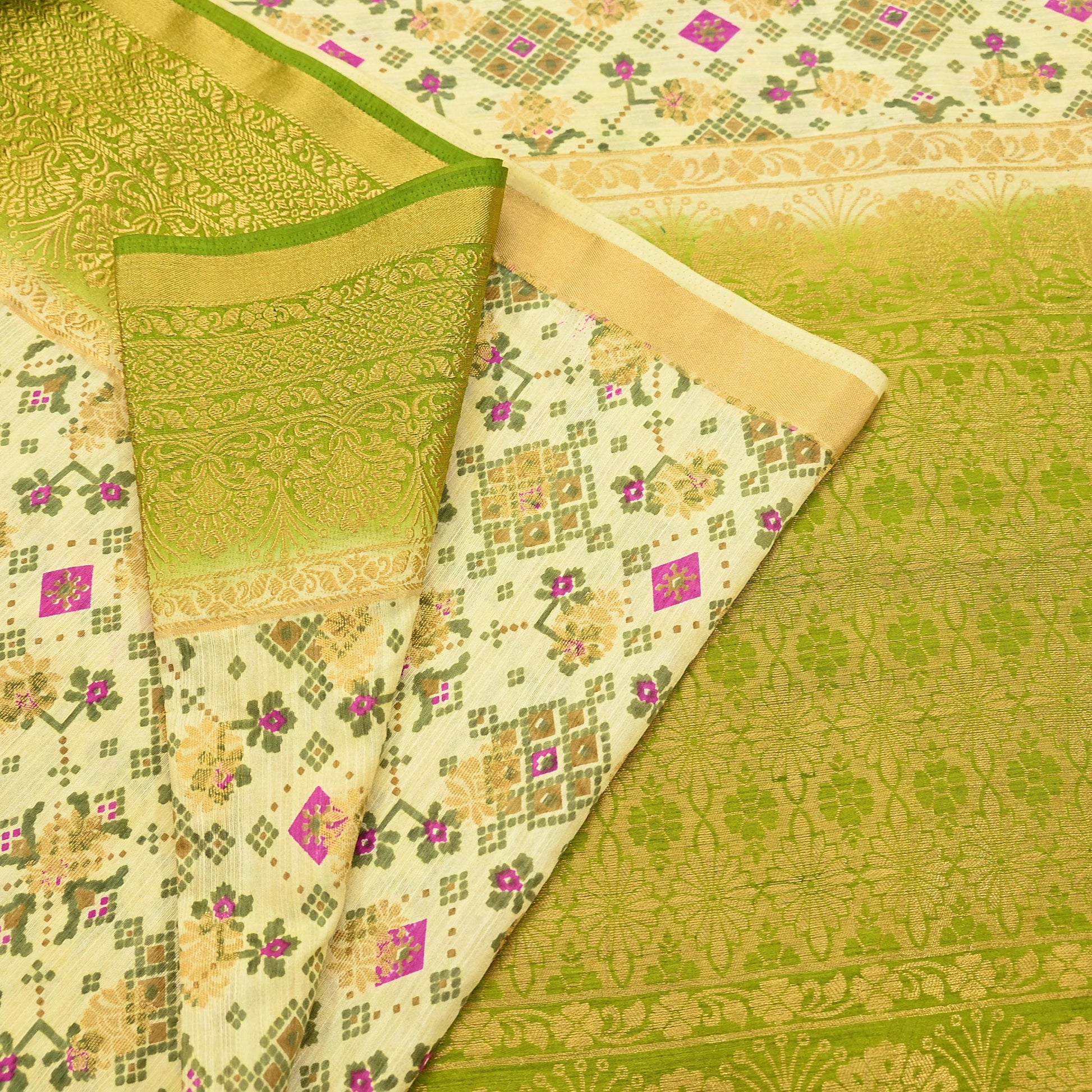 *Vintage Green & Ivory Saree Artificial Silk Hand Woven Printed Fabric Sari