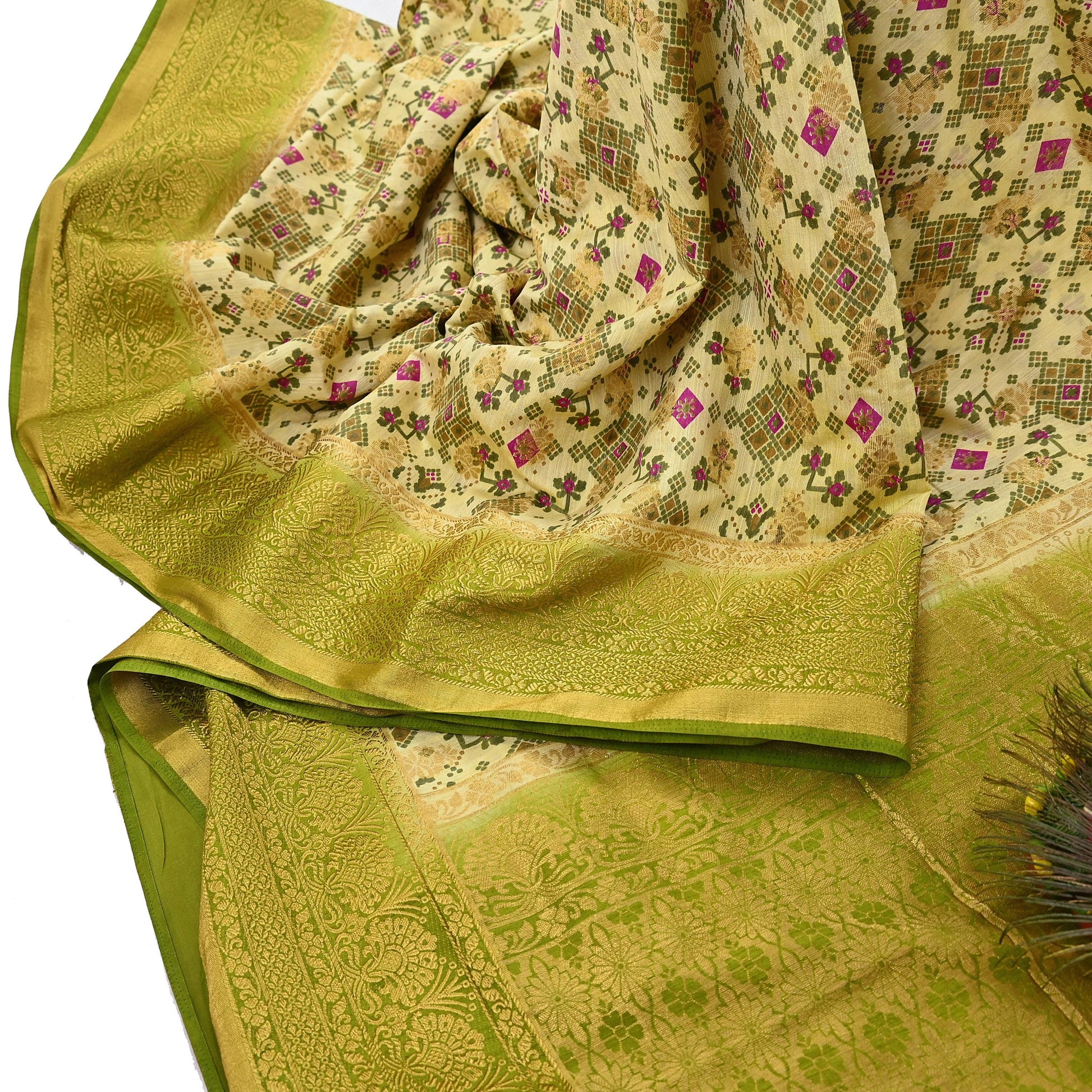 *We offers this vintage Green & Ivory color Woven Printed saree which is crafted with Art Silk.