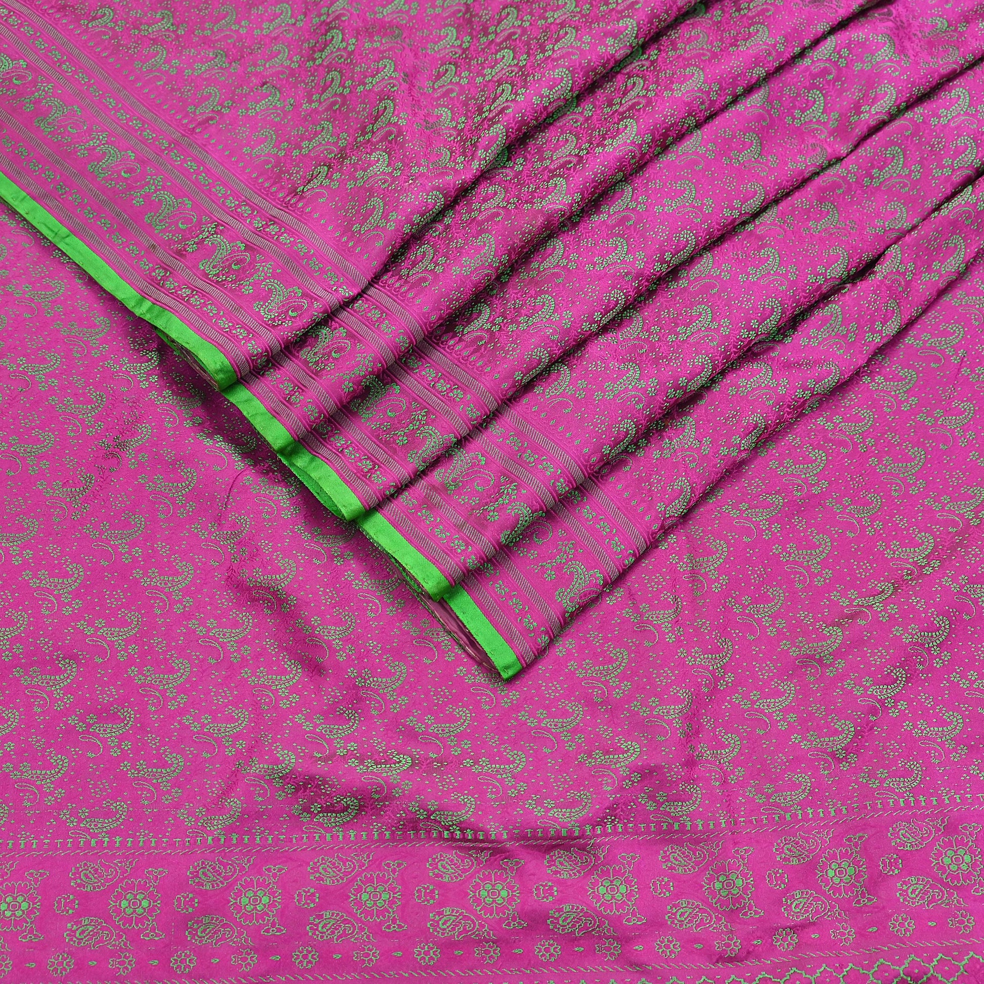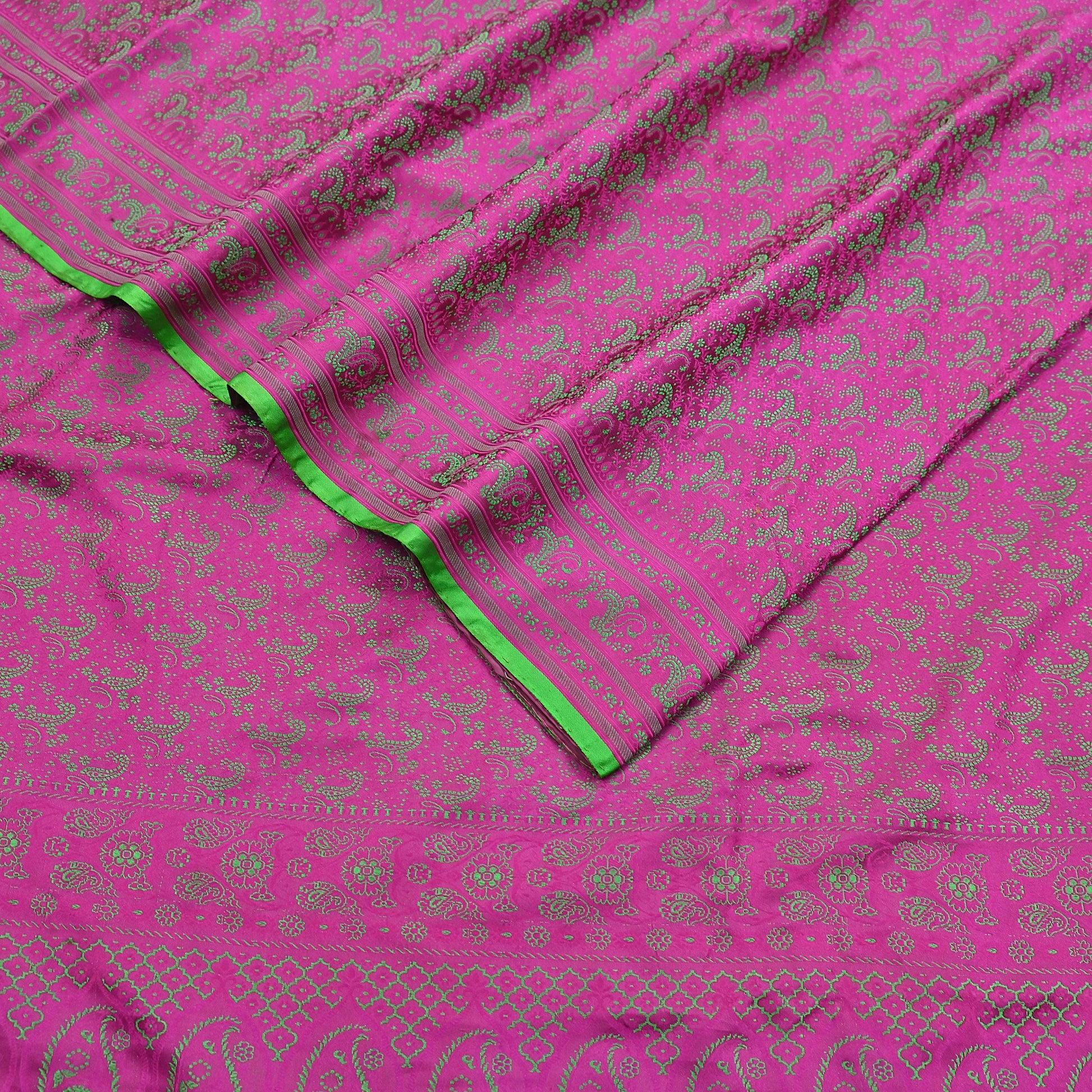 Vintage Purple & Green Banarasi Silk Saree Pure Satin Silk Handwoven Tanchoi Fabric with Floral Weave 5 Yard Dressmaking Craft Material