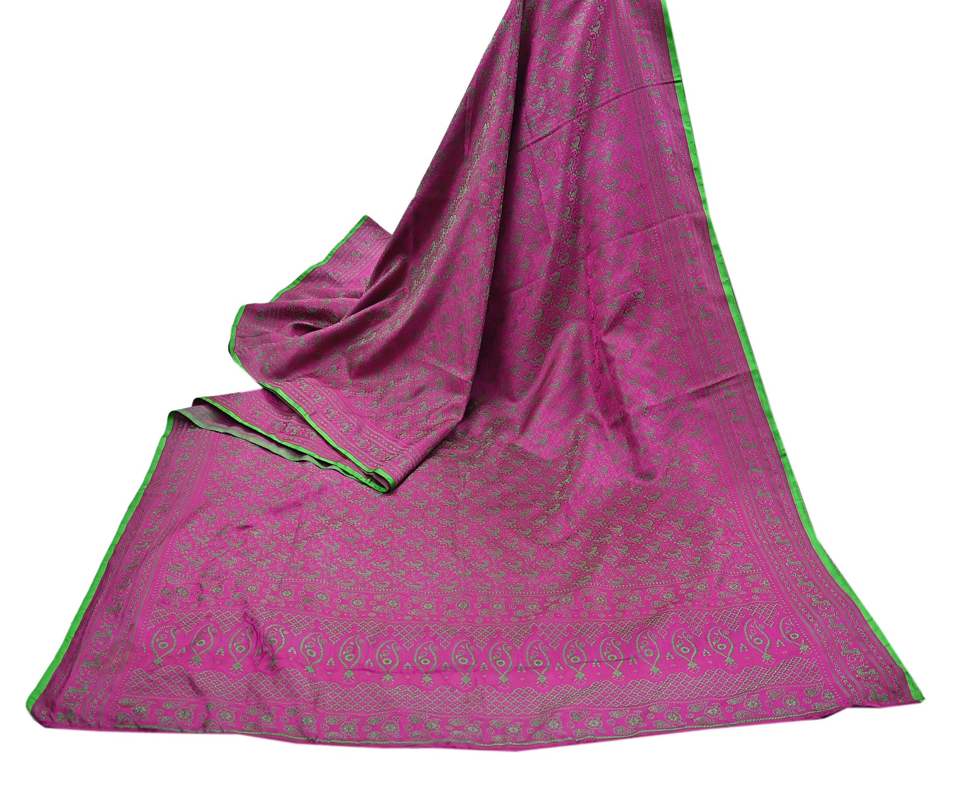 Bring timeless Indian artistry into your hands with this Vintage Purple & Green Tanchoi Banarasi Pure Satin Silk Saree, an exquisite collectible handwoven masterpiece from Banaras, India. This saree features fine jacquard weaving with Paisley & Floral motifs, crafted in luxurious satin silk that drapes beautifully.