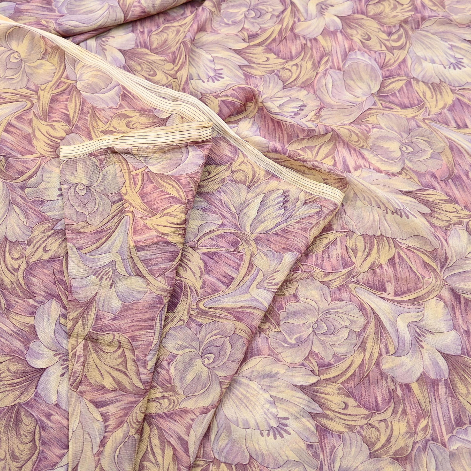 Vintage Saree Beige Pure Chiffon Silk Printed Sari Craft Fabric Sewing 5Yard Soft quilting crafting dress making