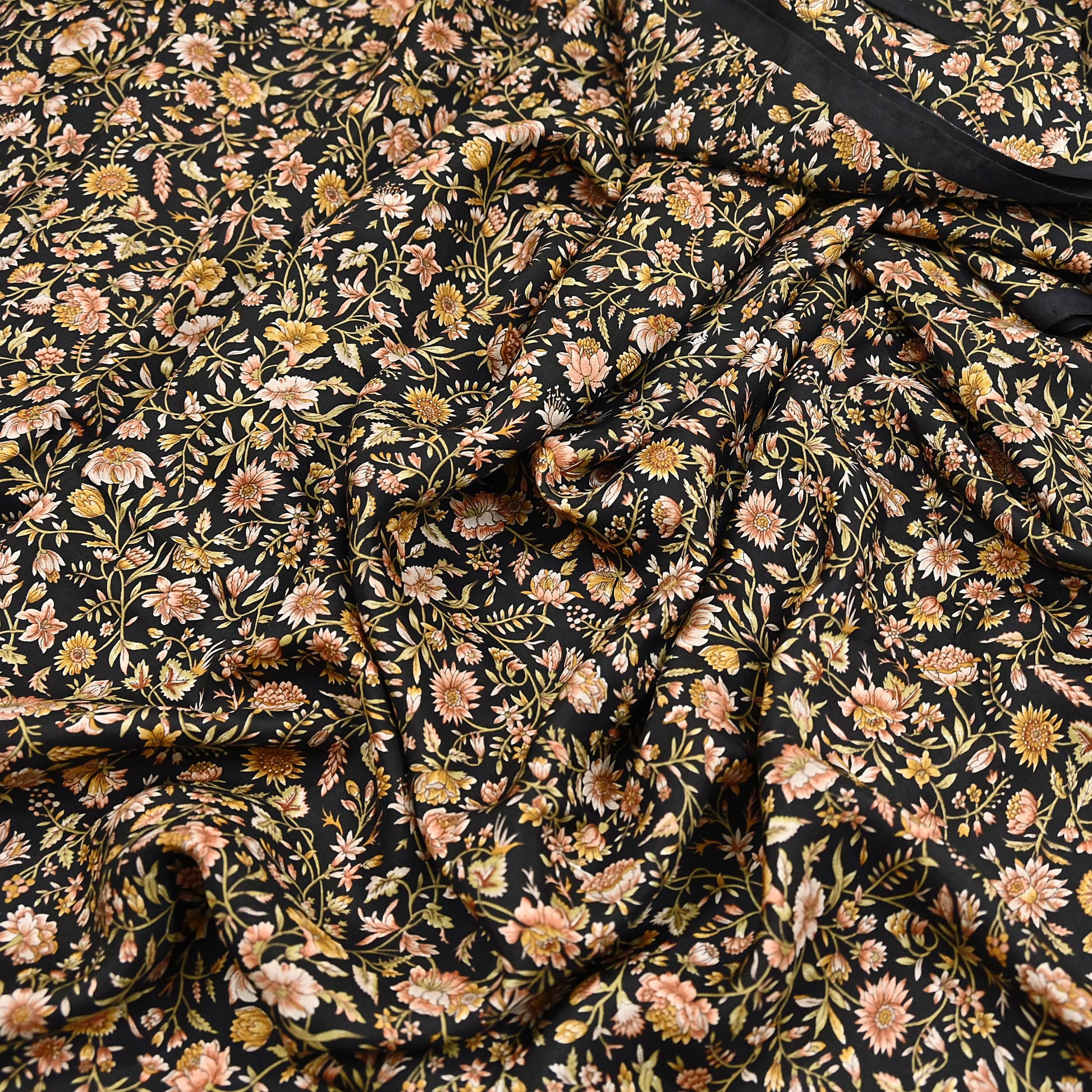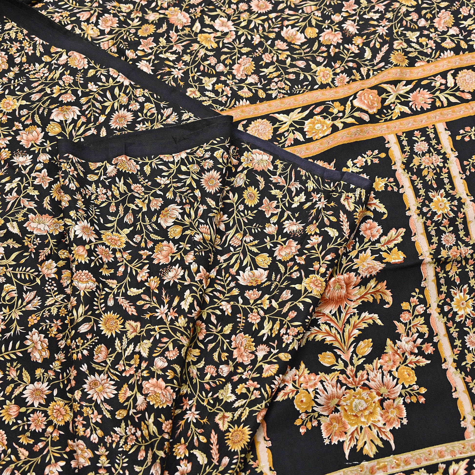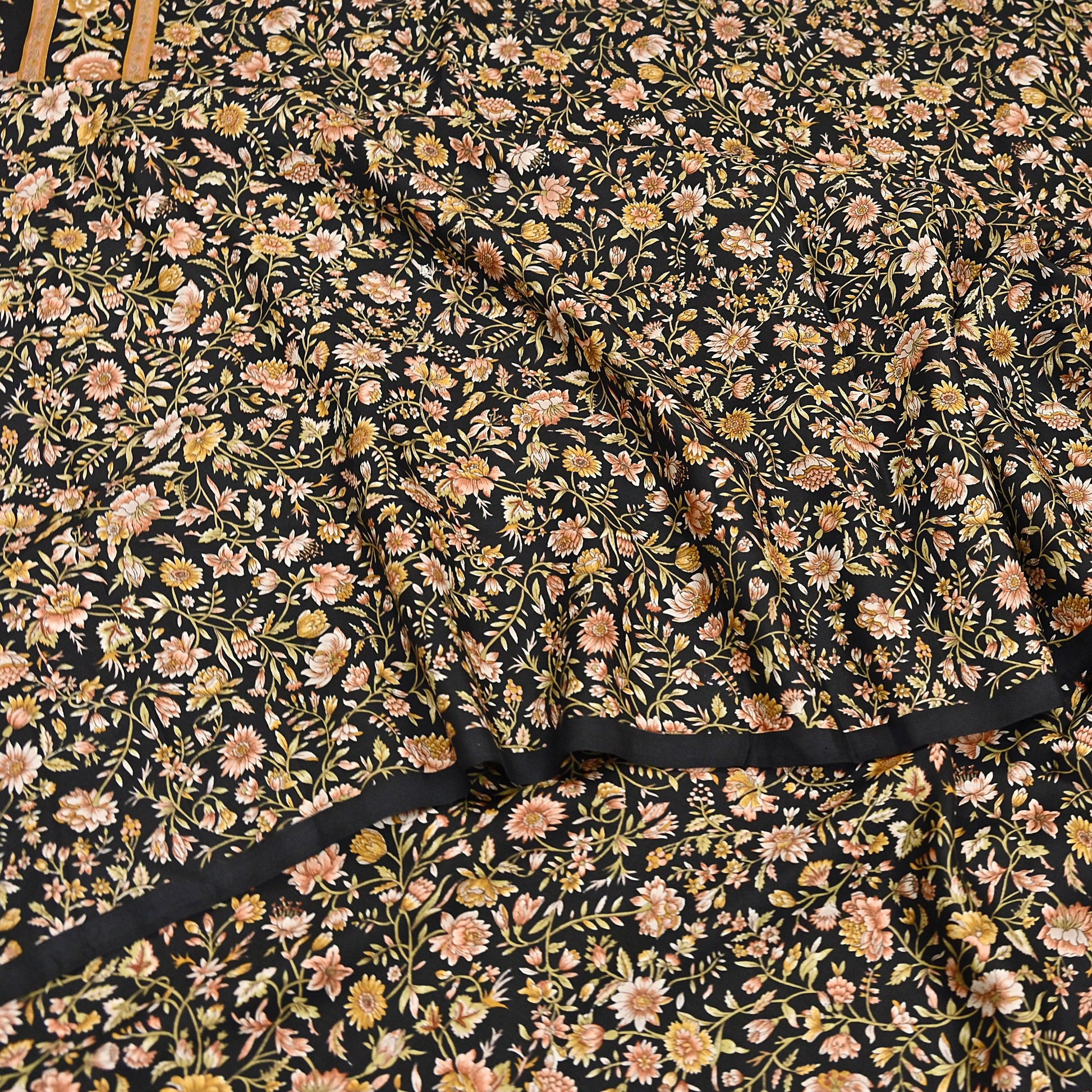 Vintage Sari Black Pure Silk Printed Saree Craft Fabric 6yard Sewing Floral Soft Dress Designing for Crafting Upcycle Quilting