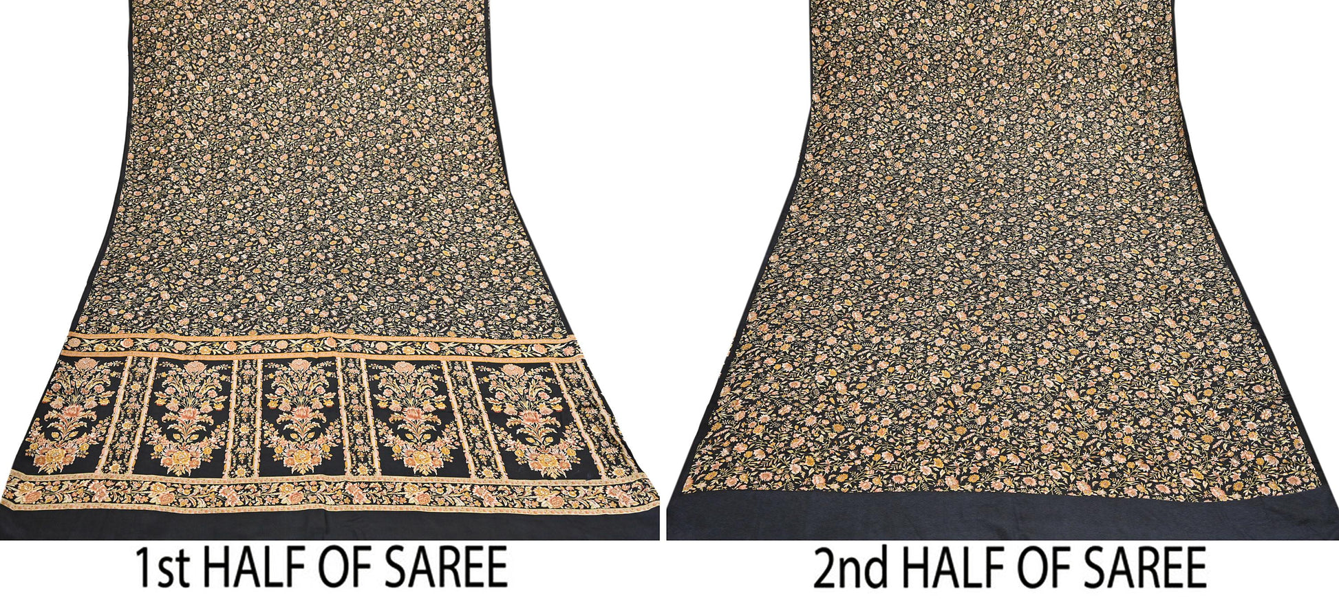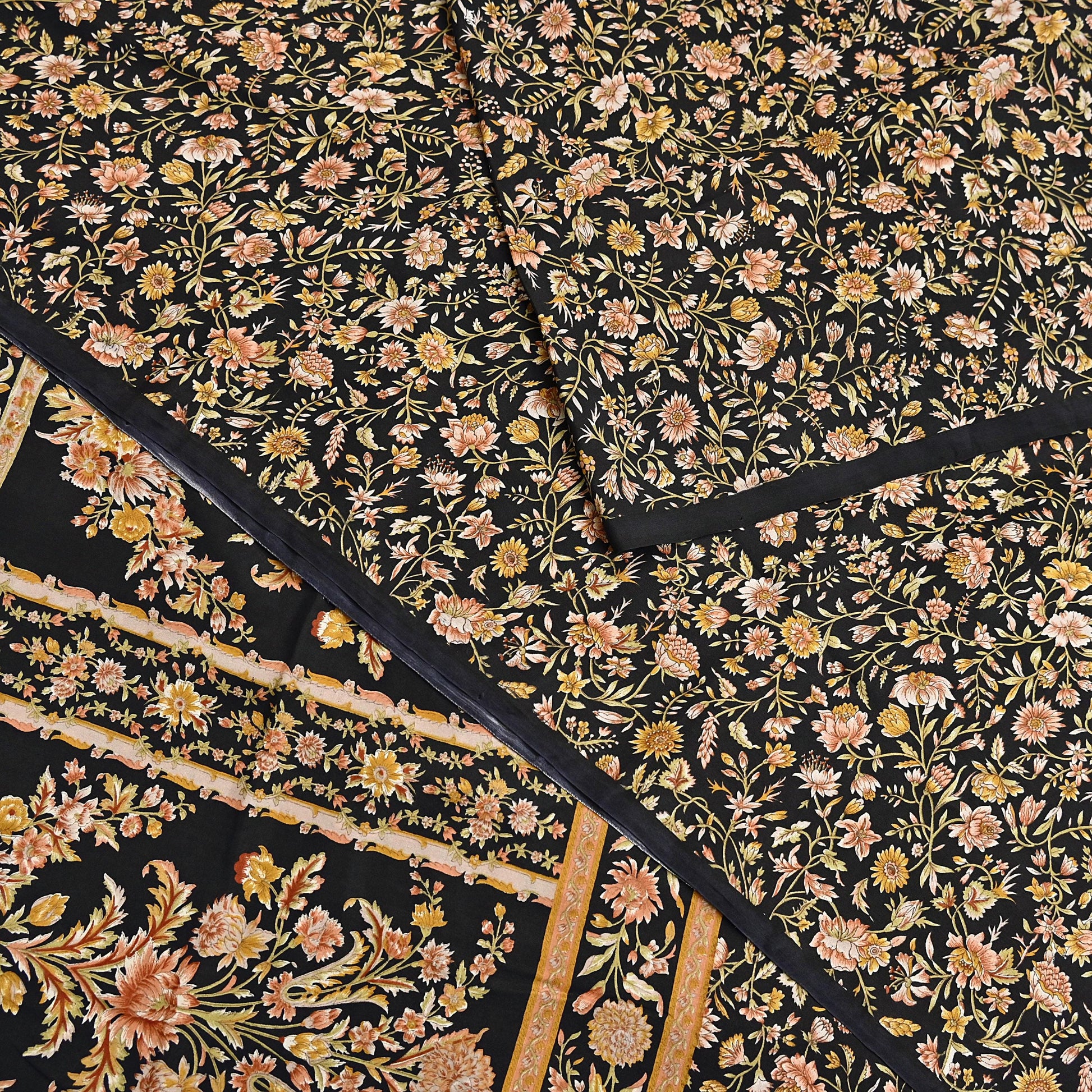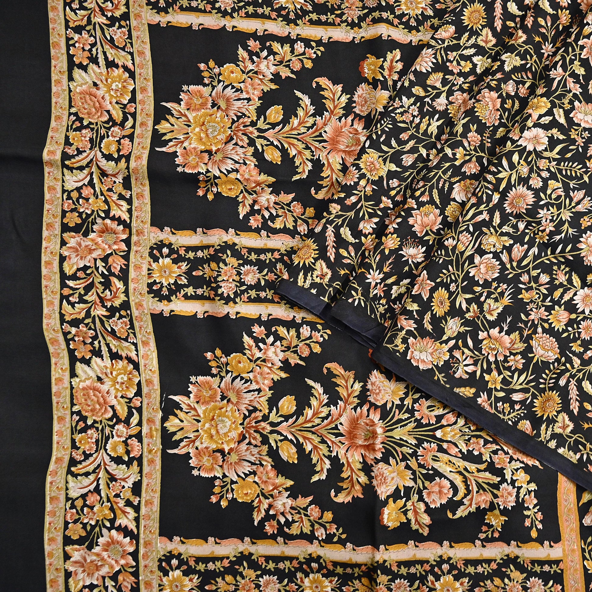 Vintage Sari Black Pure Silk Printed Saree Craft Fabric 6yard Sewing Floral Soft Dress Designing for Crafting Upcycle Quilting
