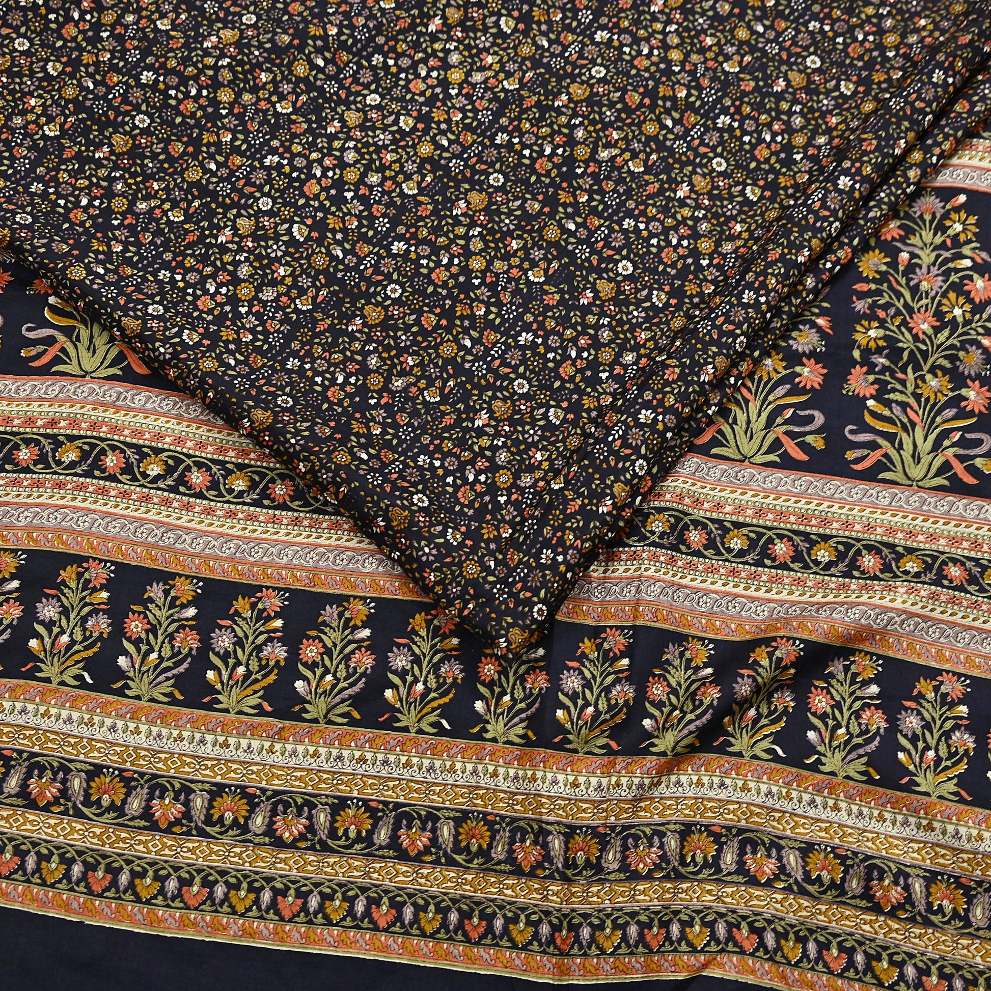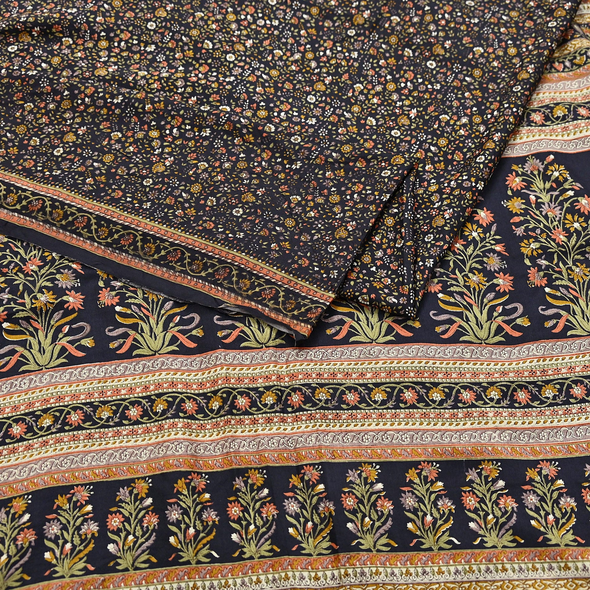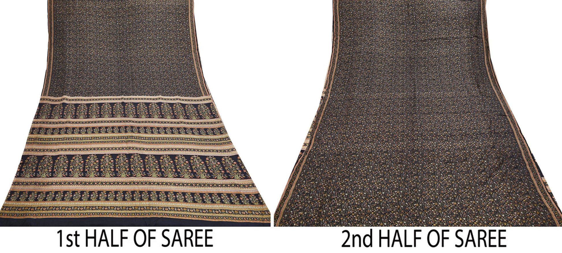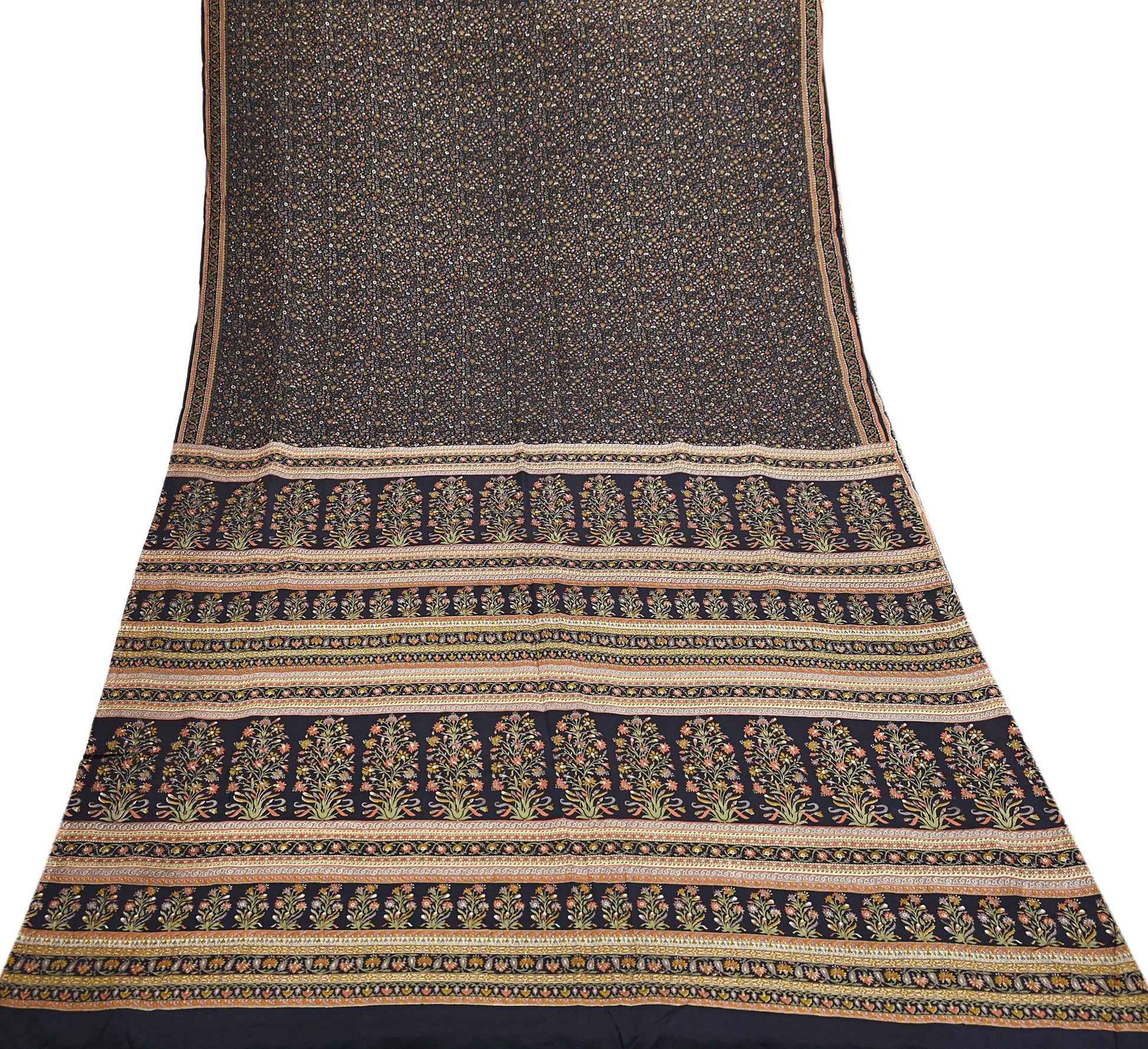 Vintage Sari Black Pure Silk Printed Saree Craft Fabric 6yard Sewing Floral Soft Dress Designing for Crafting Upcycle Quilting