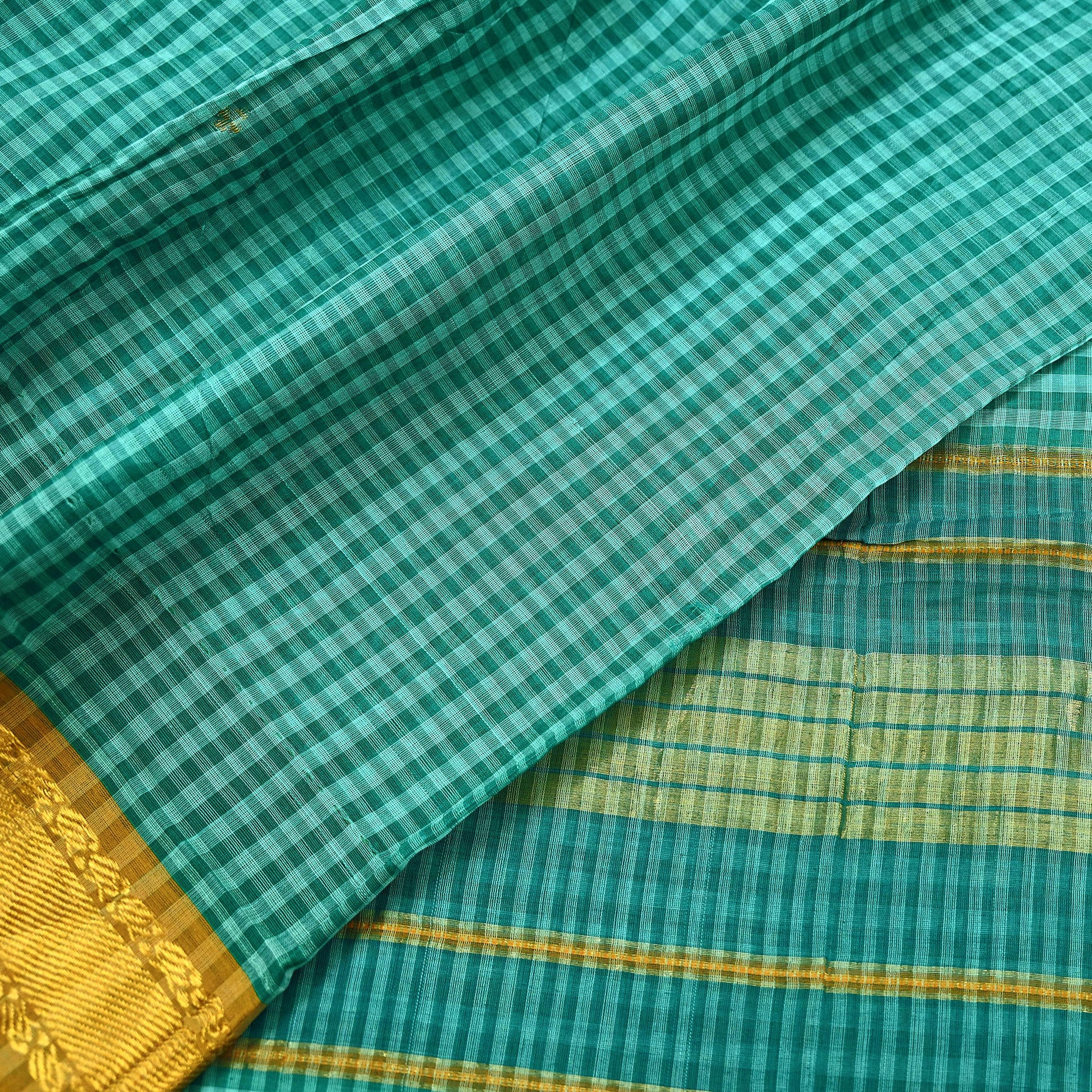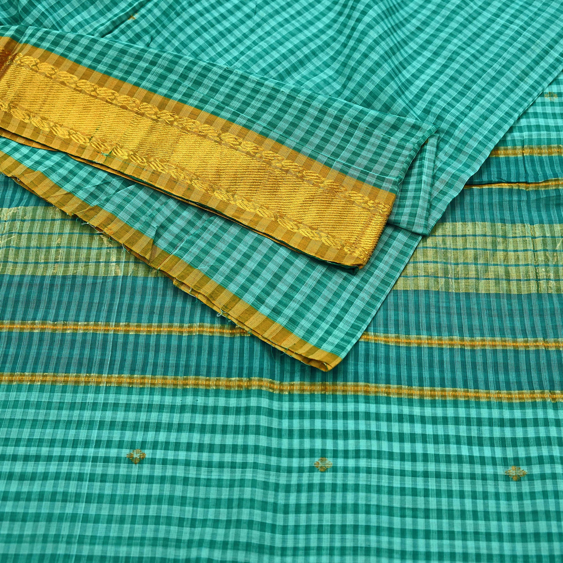 Vintage Sari Green Pure Cotton Hand Woven Sarees Craft Fabric Zari 5Yd Sewing Soft Crafting Dress making Upcycle Quilting Zigzag