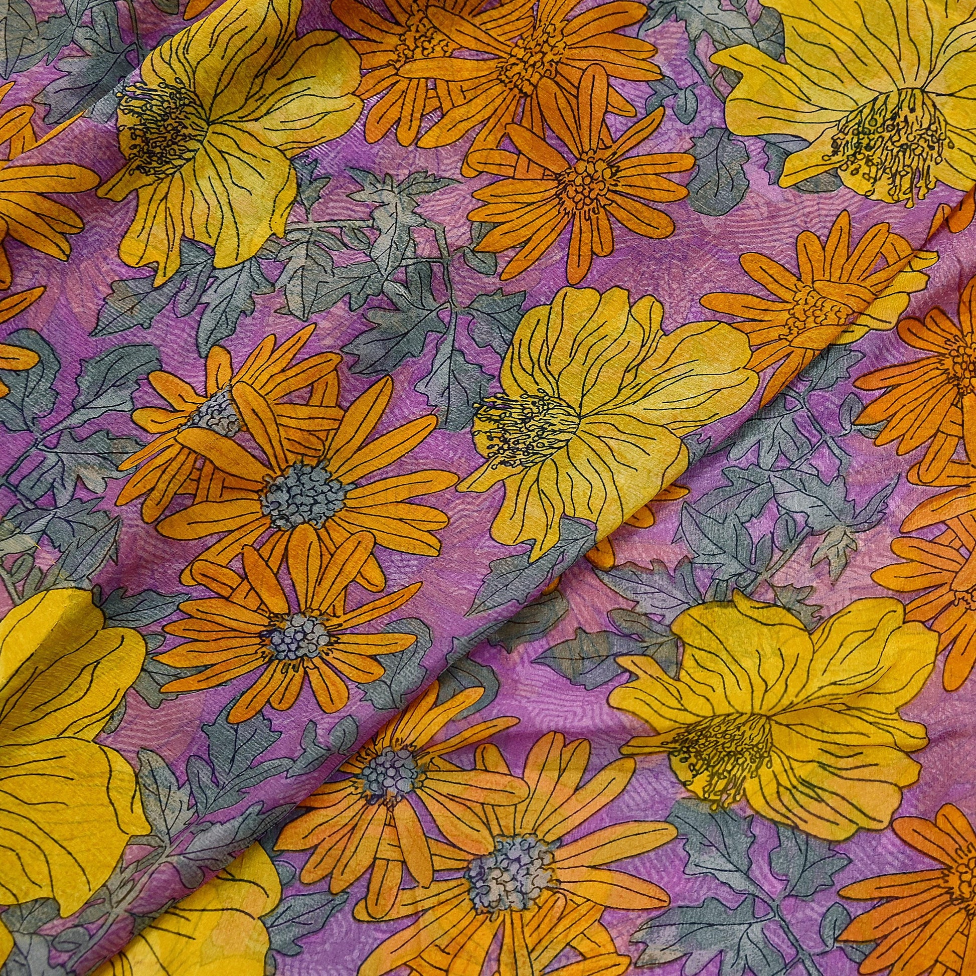 Vintage Purple & Saffron Printed Pure Chiffon Silk Saree with Paisley & Floral Motifs π