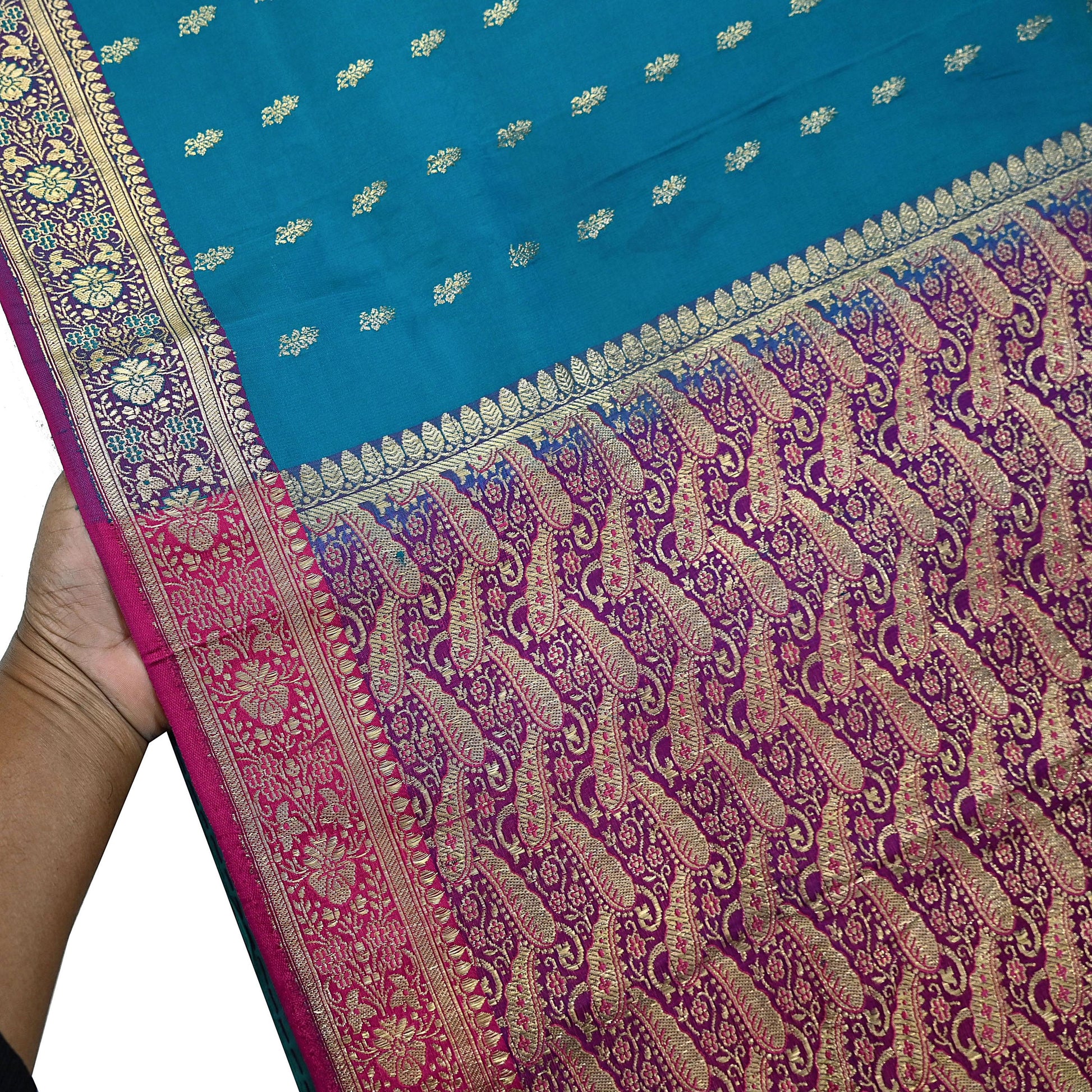 This heavy saree can be used for various crafting ideas too. Use it for dress designing, as a throw, as window dressing, upholstery, table linen and much more. Let your creative juices flow!