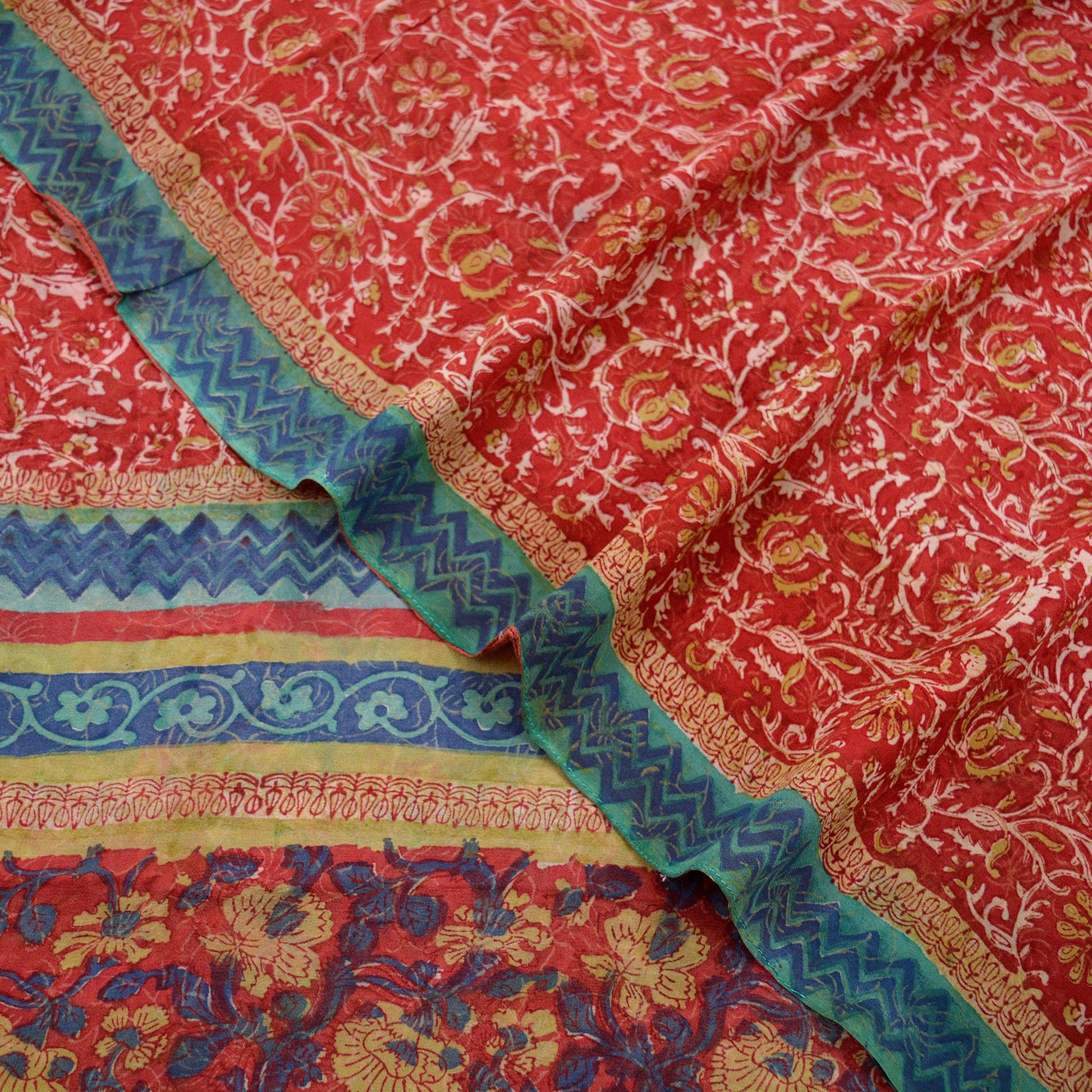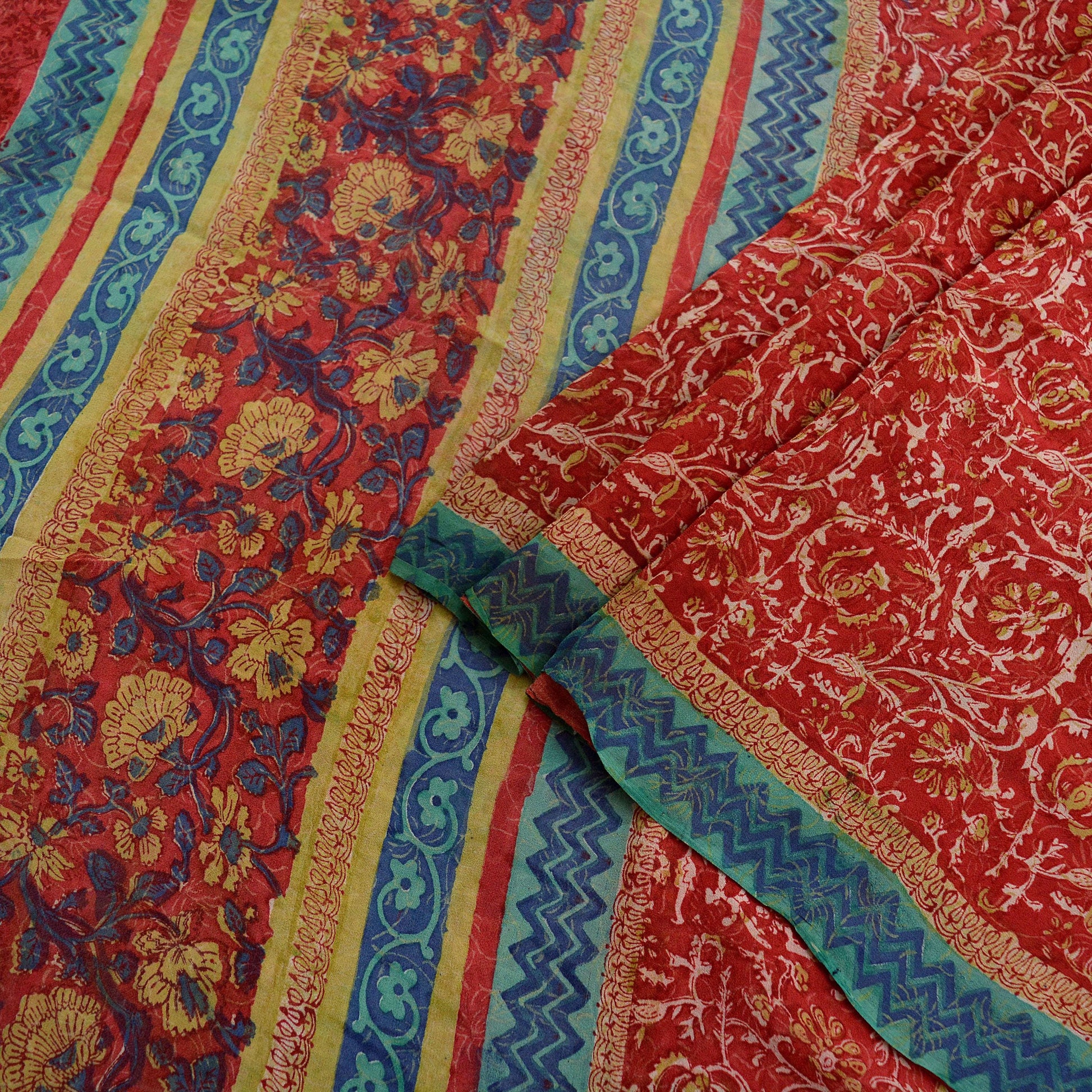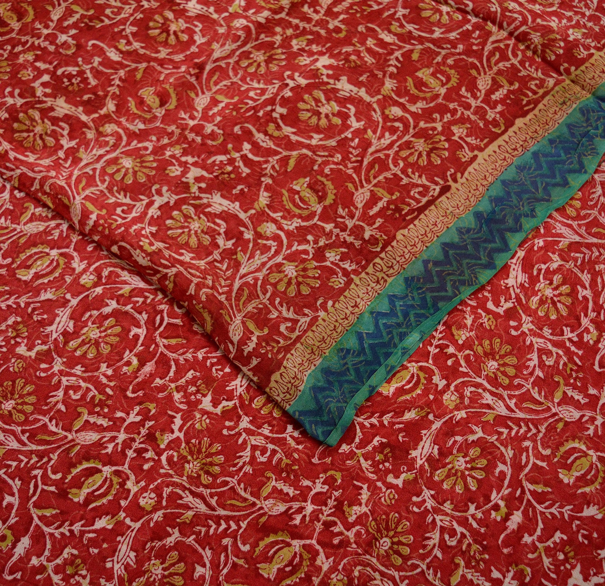 Vintage Sari Red 100% Pure Georgette Silk Printed Sarees 5yd Sewing Craft Fabric Soft Dress Designing for Crafting Quilting Upcycle Used