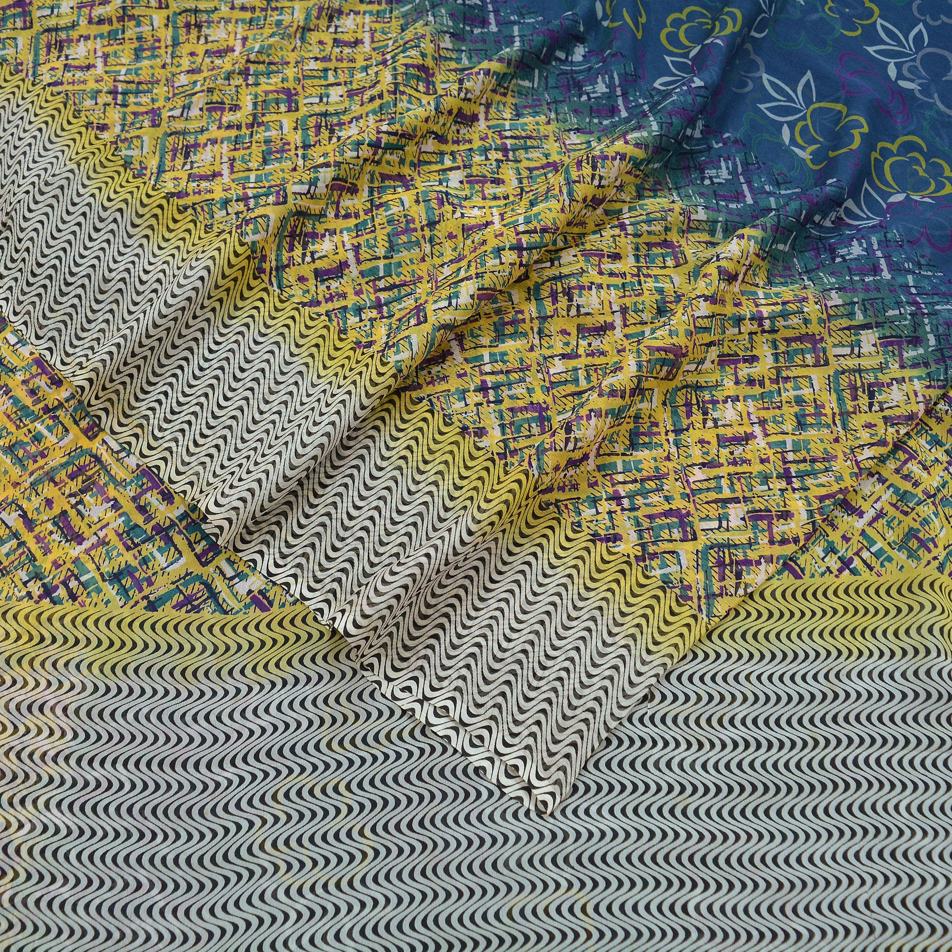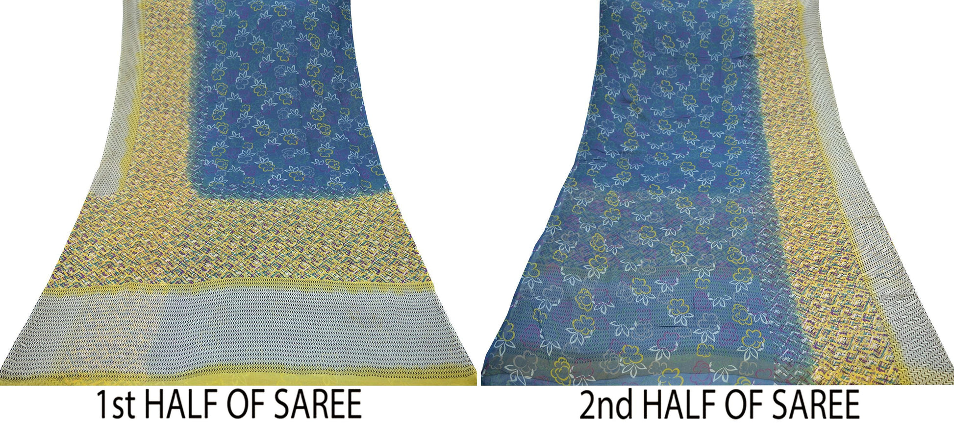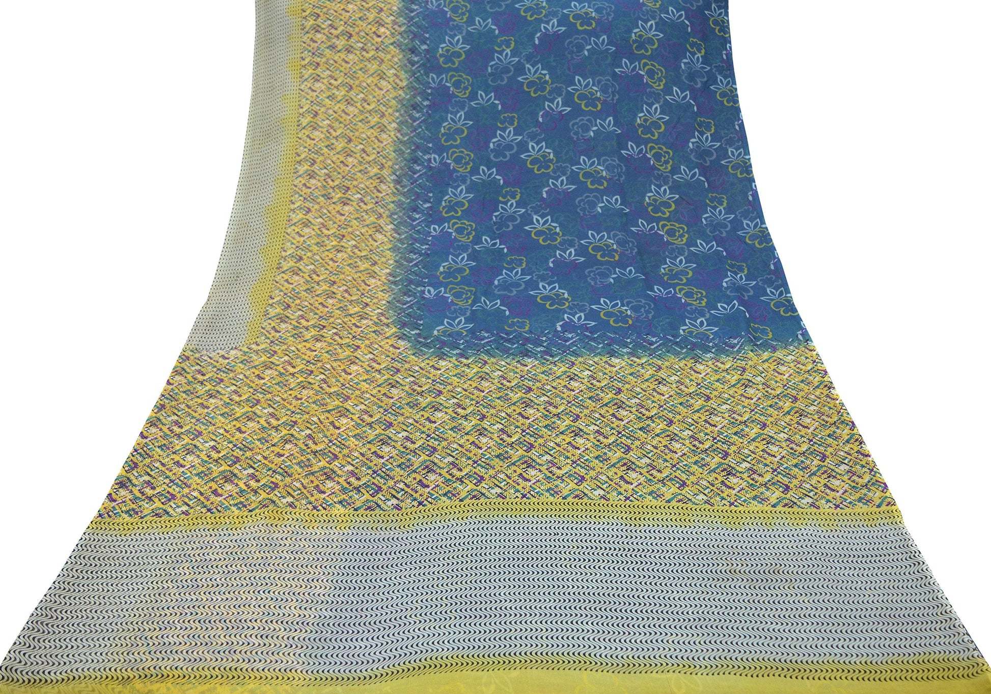 Vintage Sari Yellow & Green 100% Pure Chiffon Silk Printed Sarees Sewing 5yd Craft Fabric Soft Dress Designing for Crafting Floral