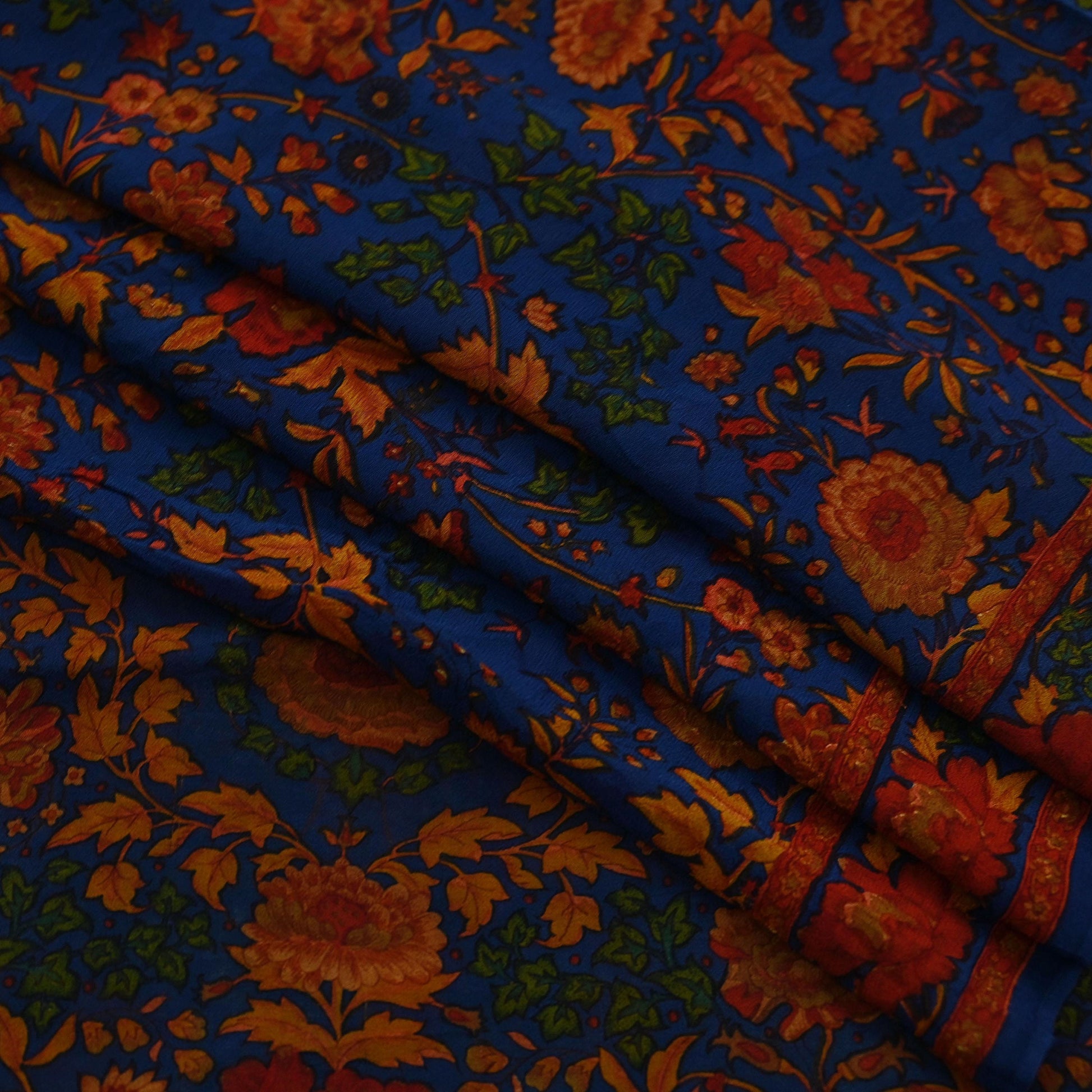 Nice Floral design with printed work on Blue color base fabric is really enhancing the beauty of the saree.