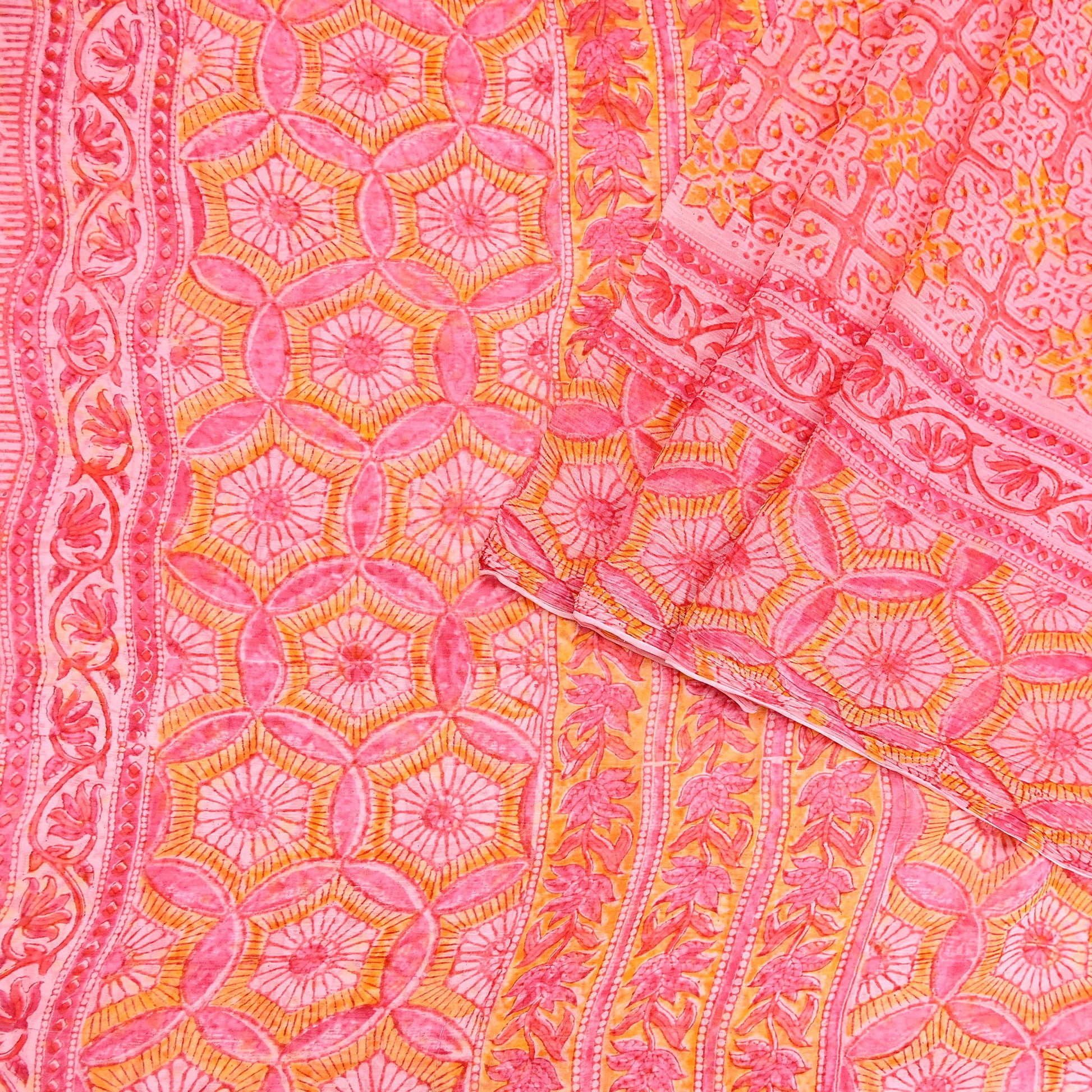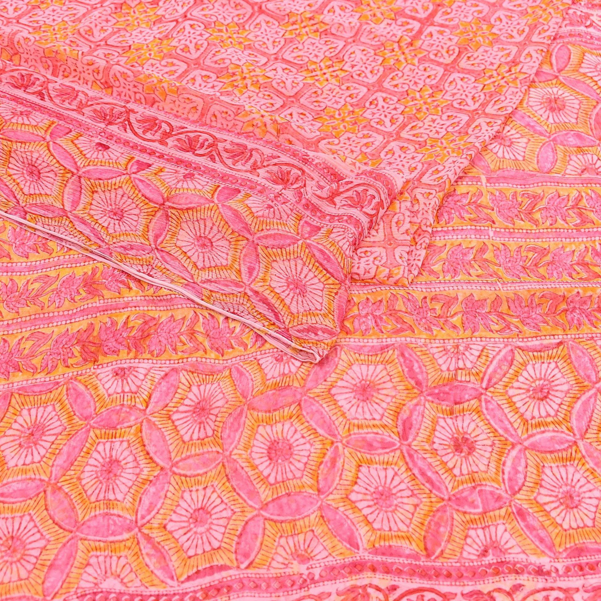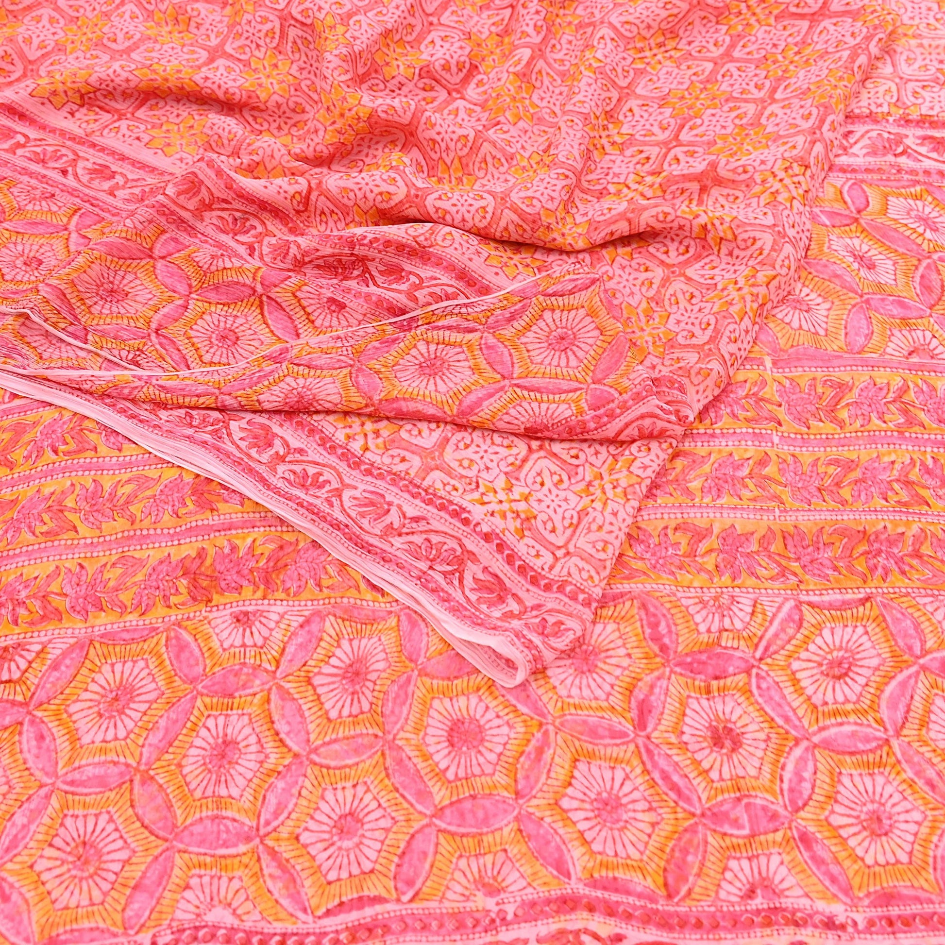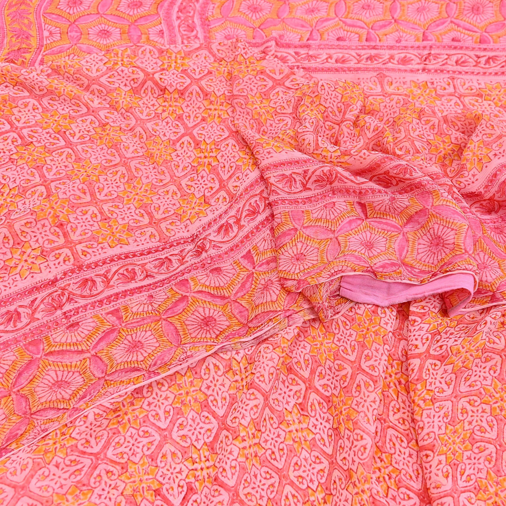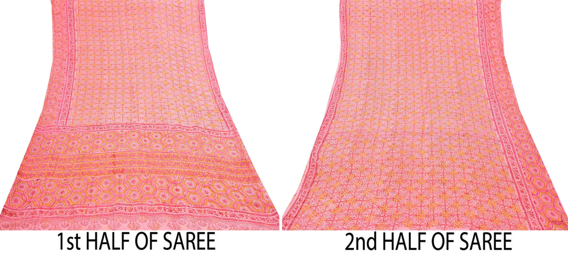 Women Vintage Pink Saree Blend Chiffon Printed Sari Craft Fabric Sewing 6Yd Soft Light Sari Dress Making Floral Crafting Quilting Upcycle