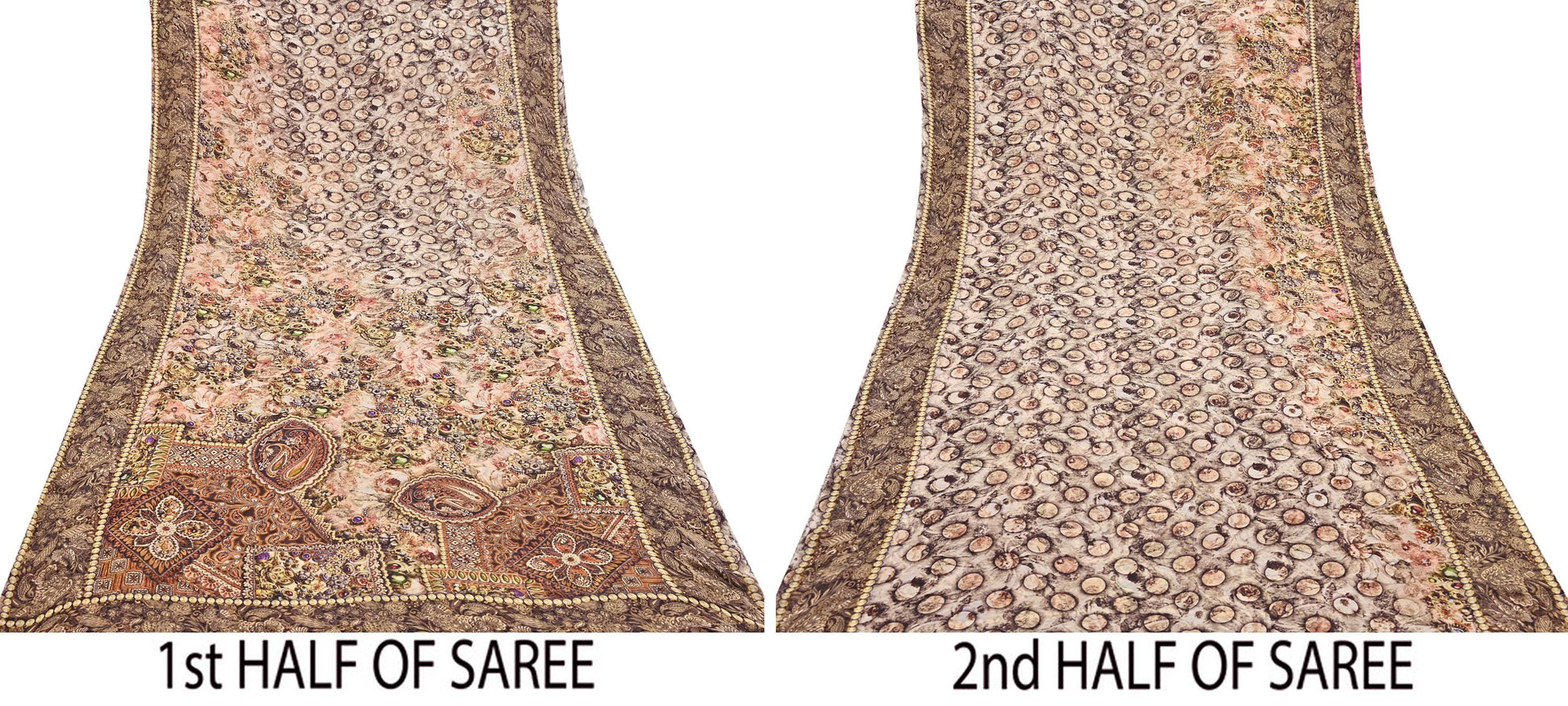 Women Vintage Sari Beige & Black Pure Georgette Silk Digital Printed Saree Craft Fabric Sewing 5Yd Light Dress Making Geometric Crafting
