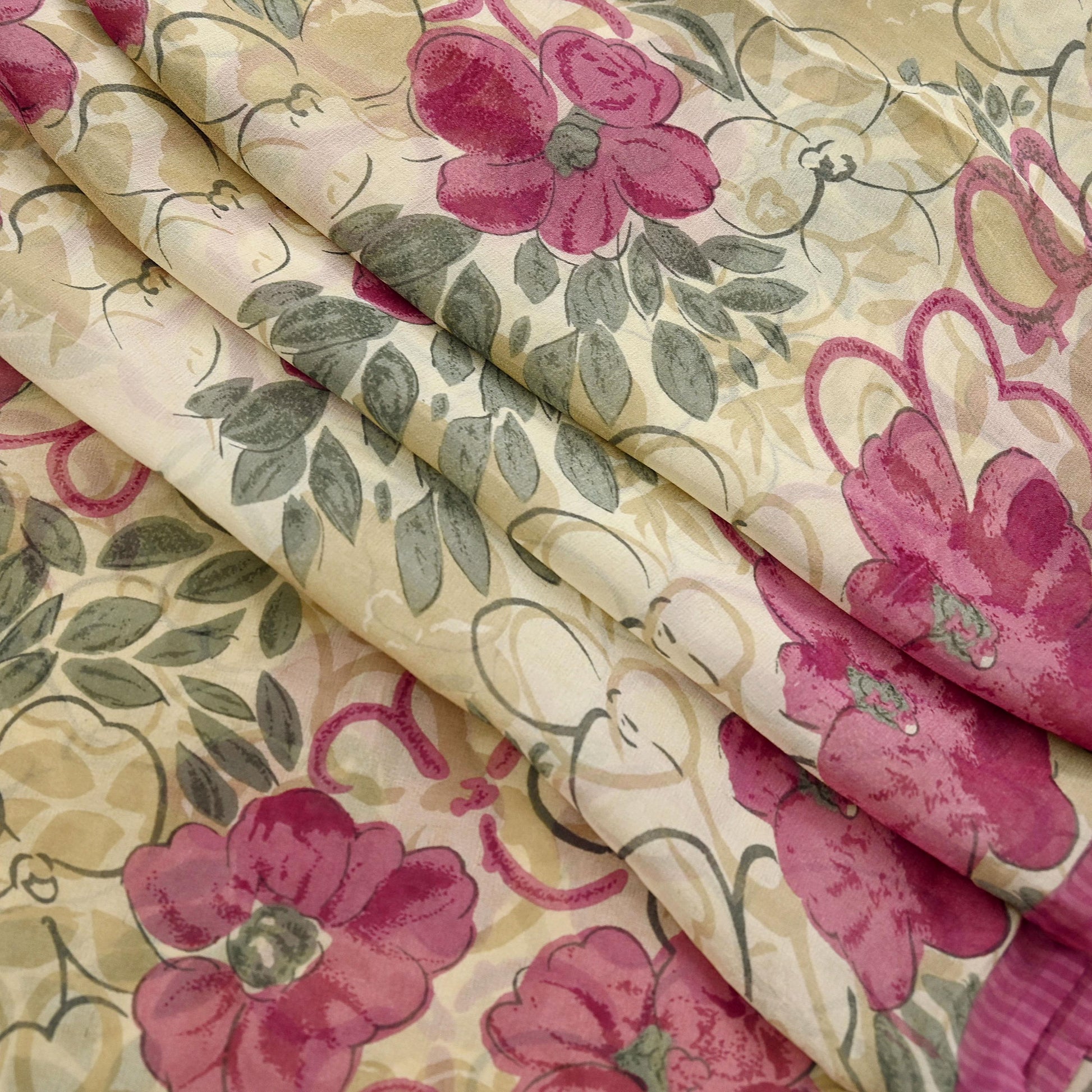 * Attractive Beige Colored Pure Georgette Silk Printed Saree .