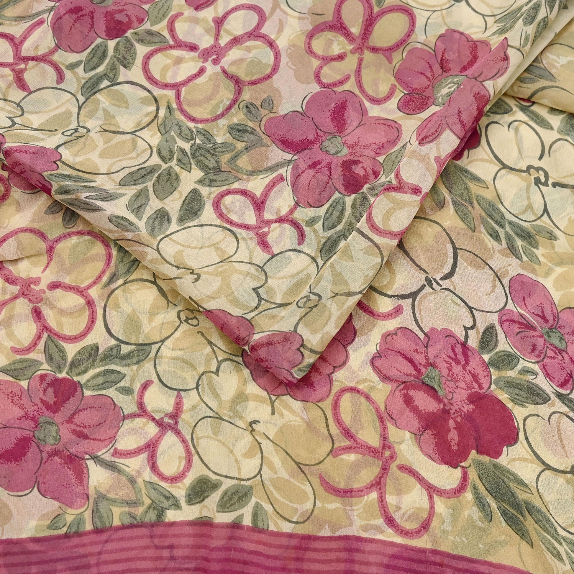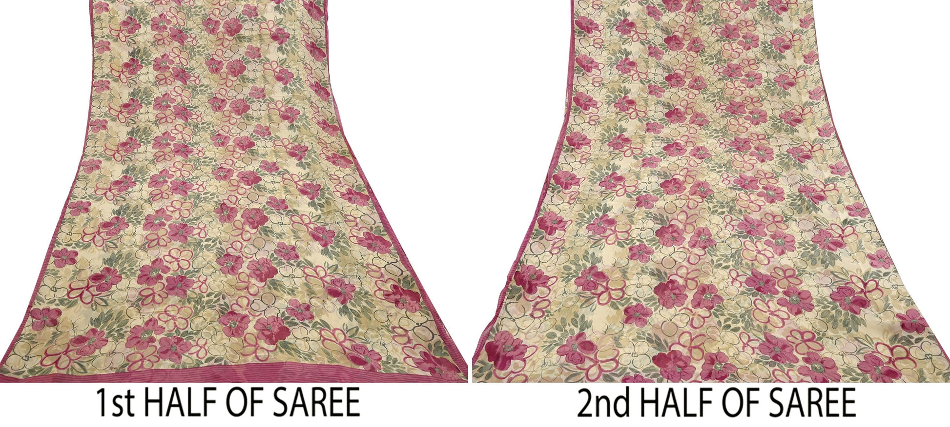 Women Vintage Sari Beige Pure Georgette Silk Digital Printed Saree Craft Fabric Sewing 5Yd Light Dress Making Geometric Crafting Quilting