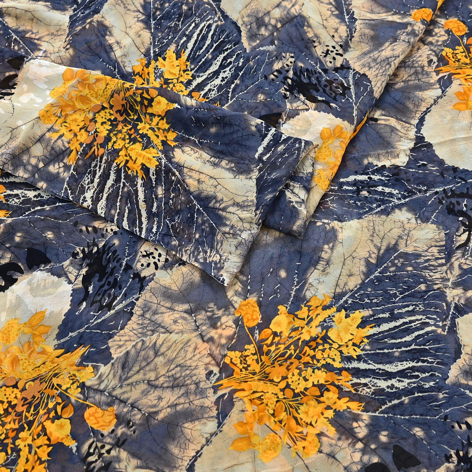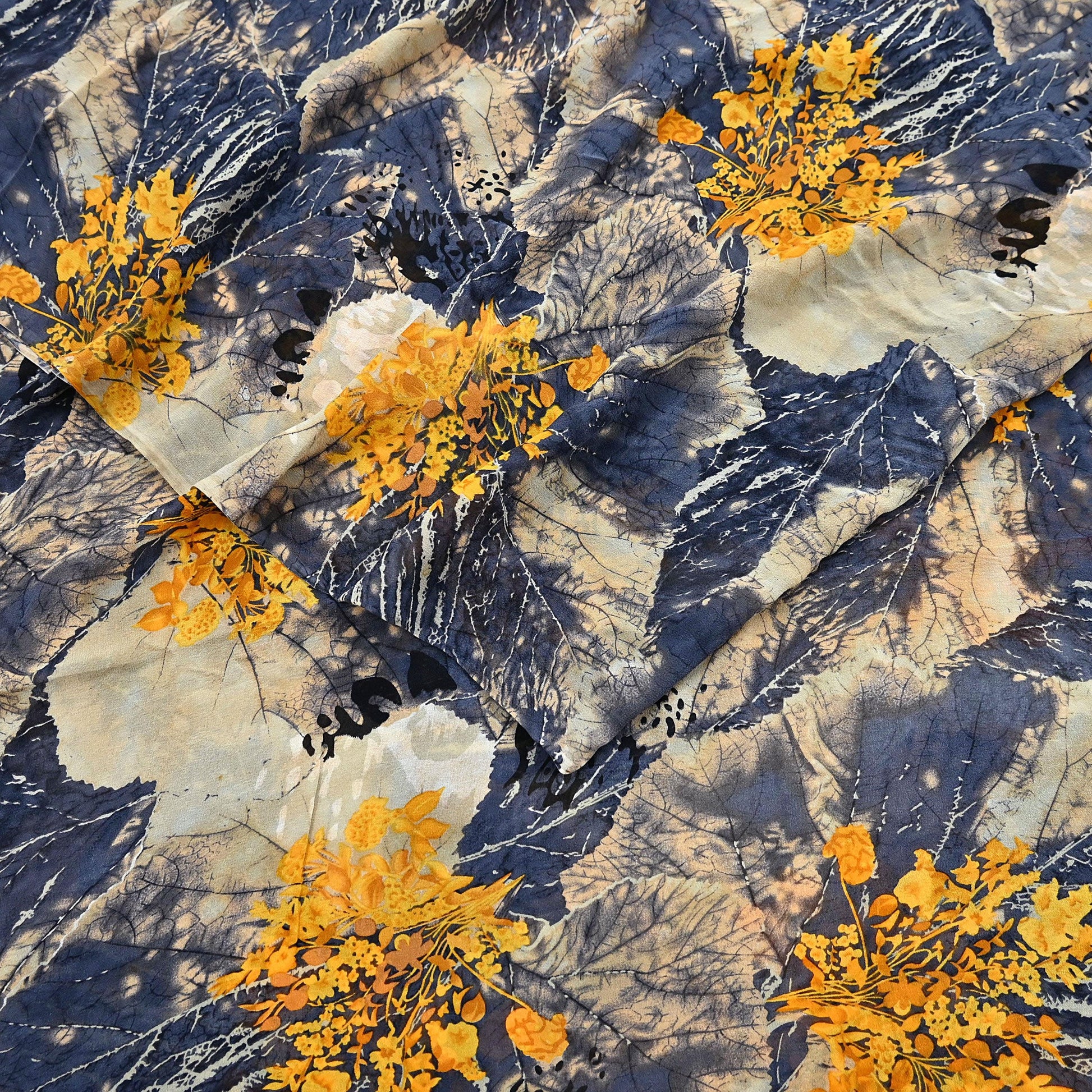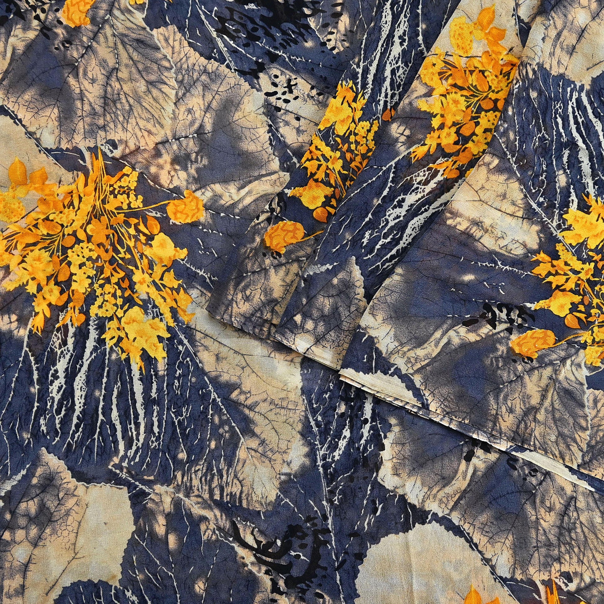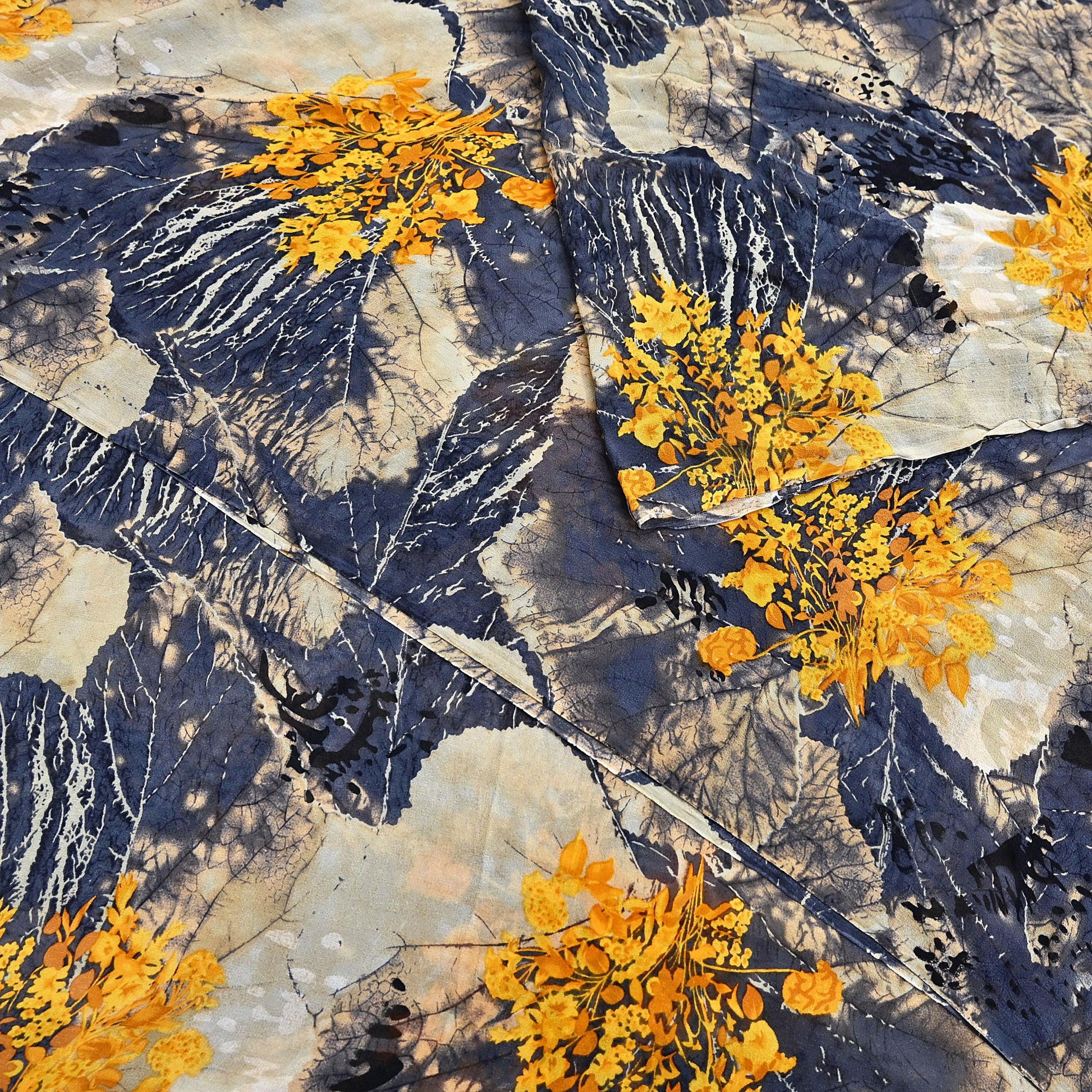 Women Vintage Sari Gray & Beige Pure Georgette Silk Printed Saree Craft Fabric Sewing 5Yard Soft Light Dress Making Dress making Crafting