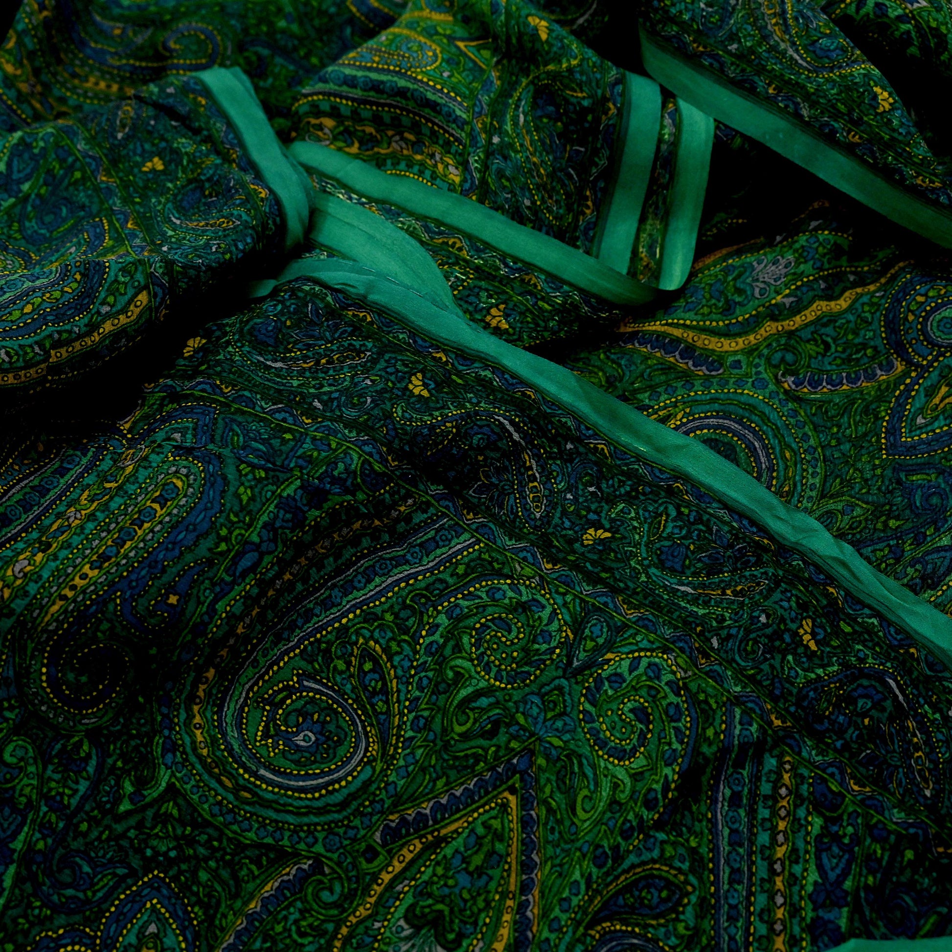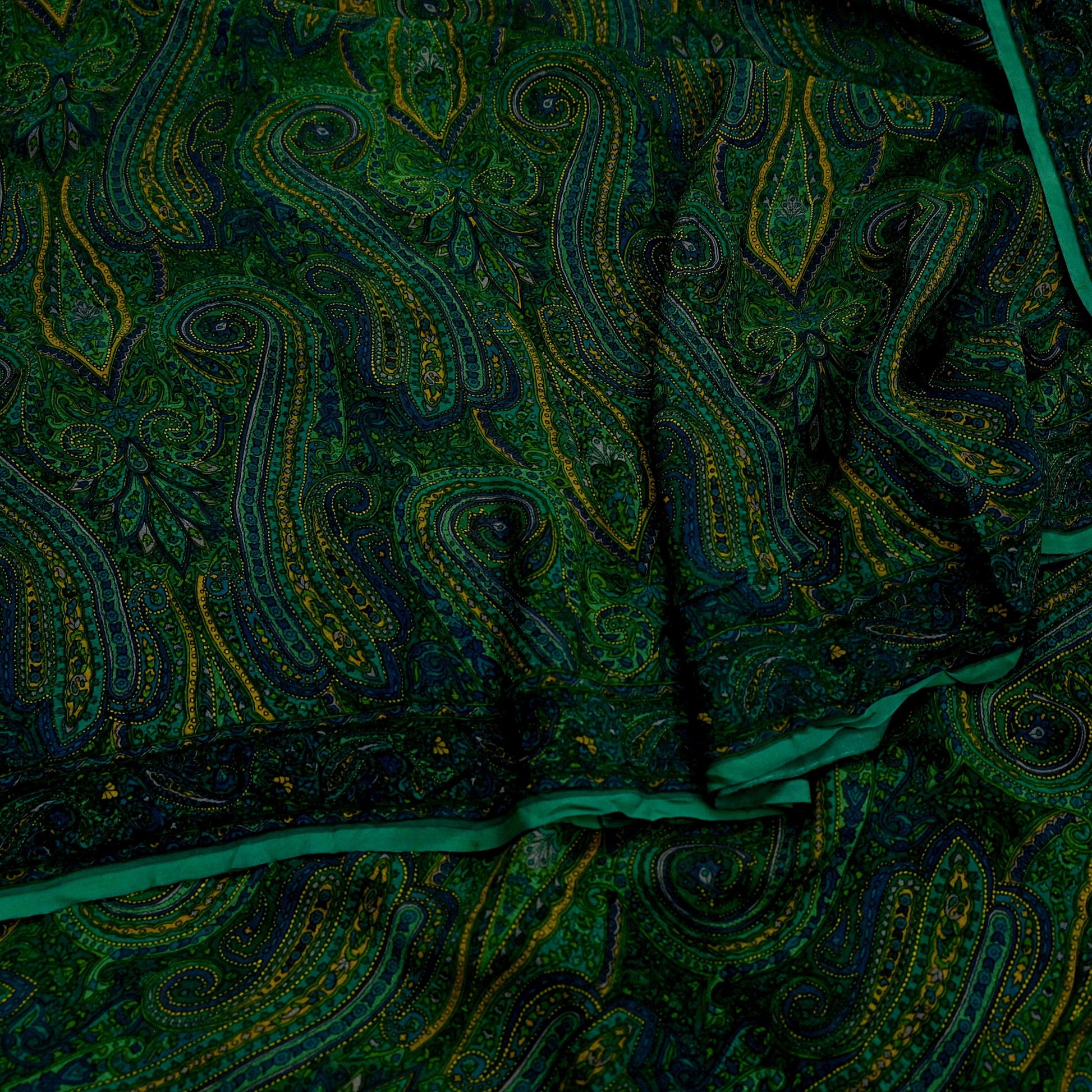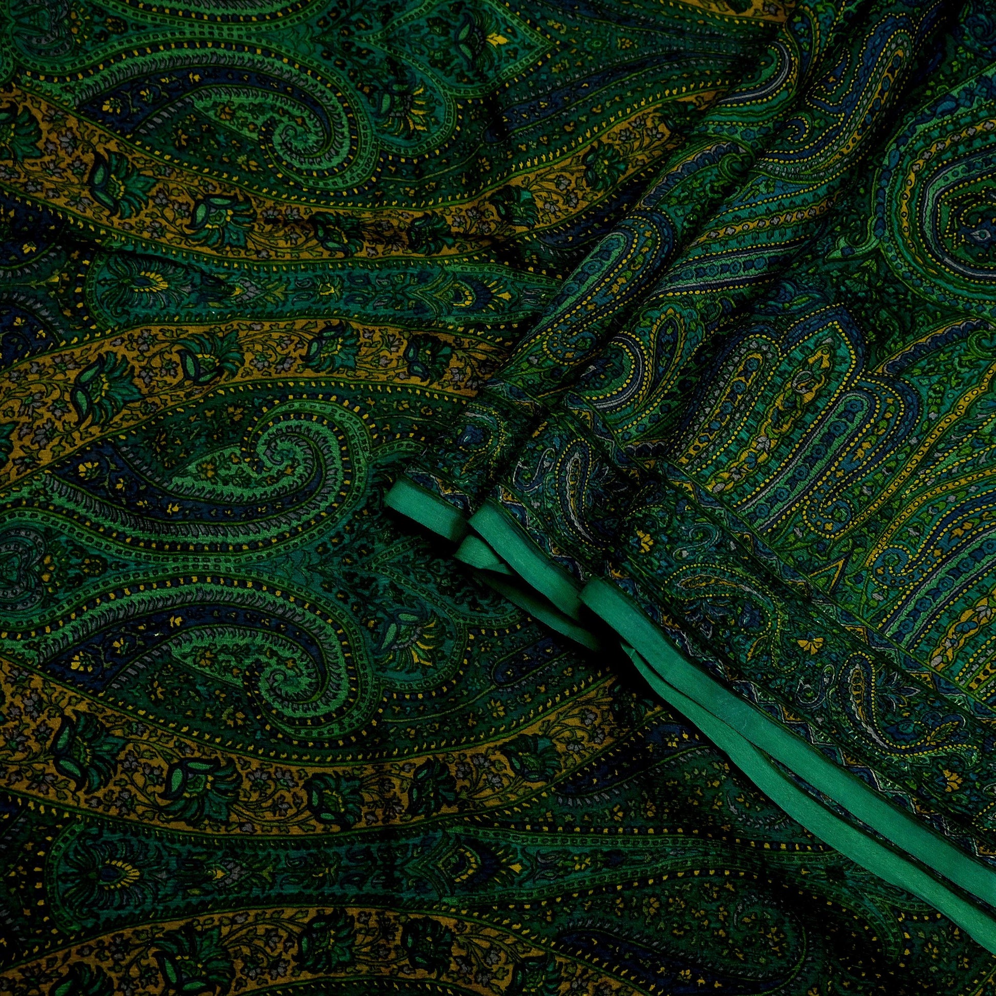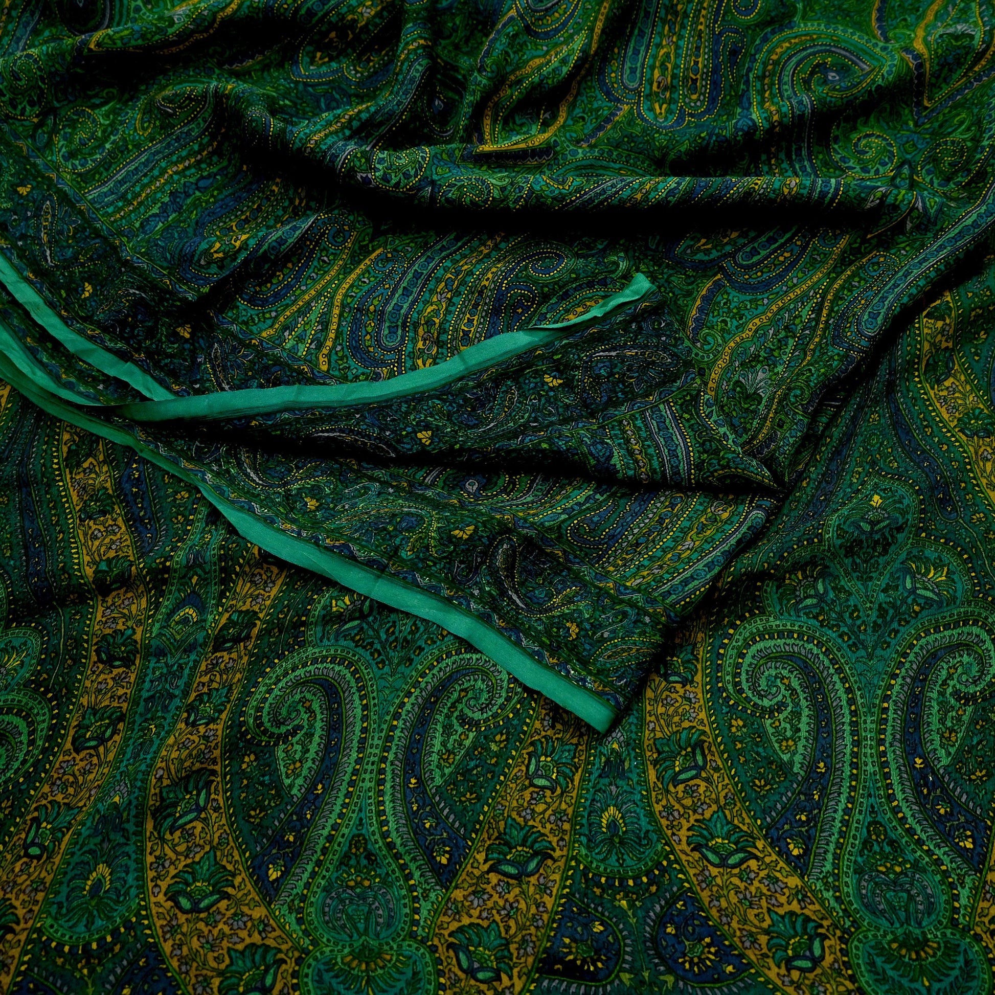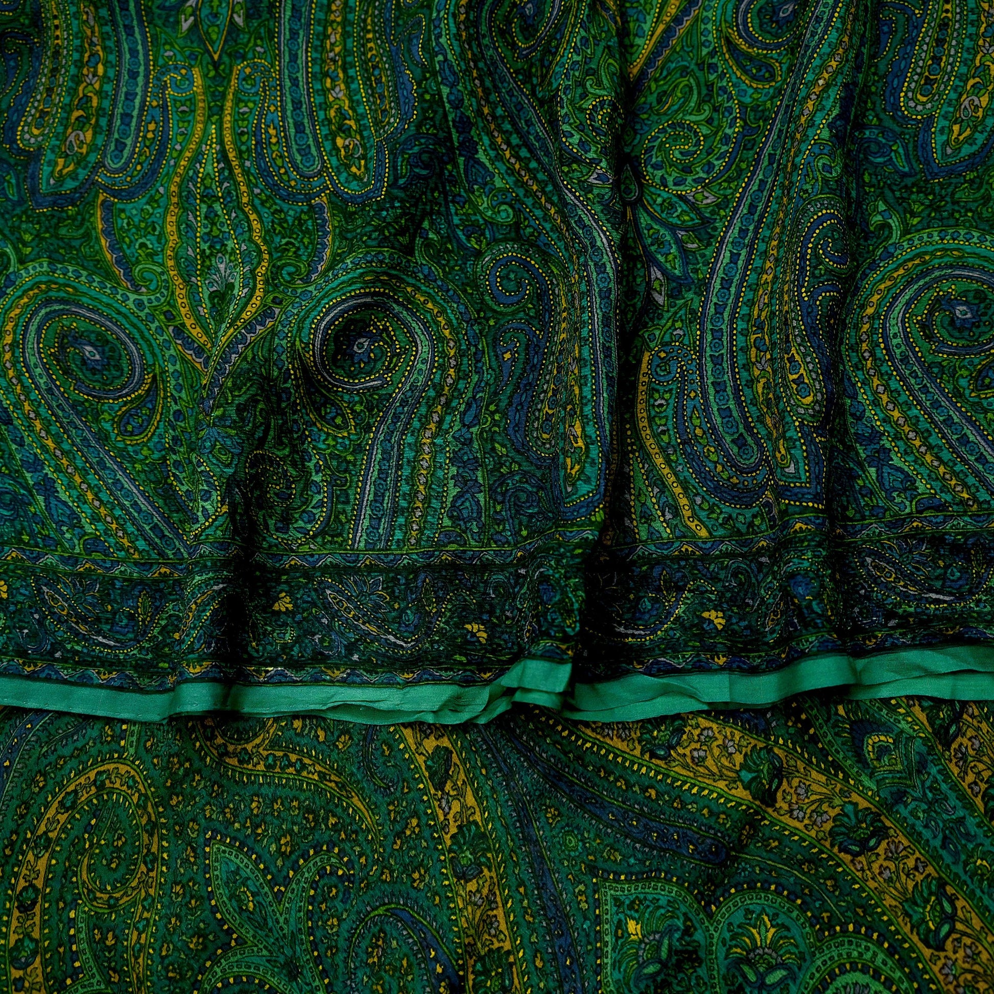 Women Vintage Sari Green Pure Chiffon Silk Printed Sarees Craft Fabric Sewing 5Yd Soft Dress Making Crafting Quilting Upcycle Used