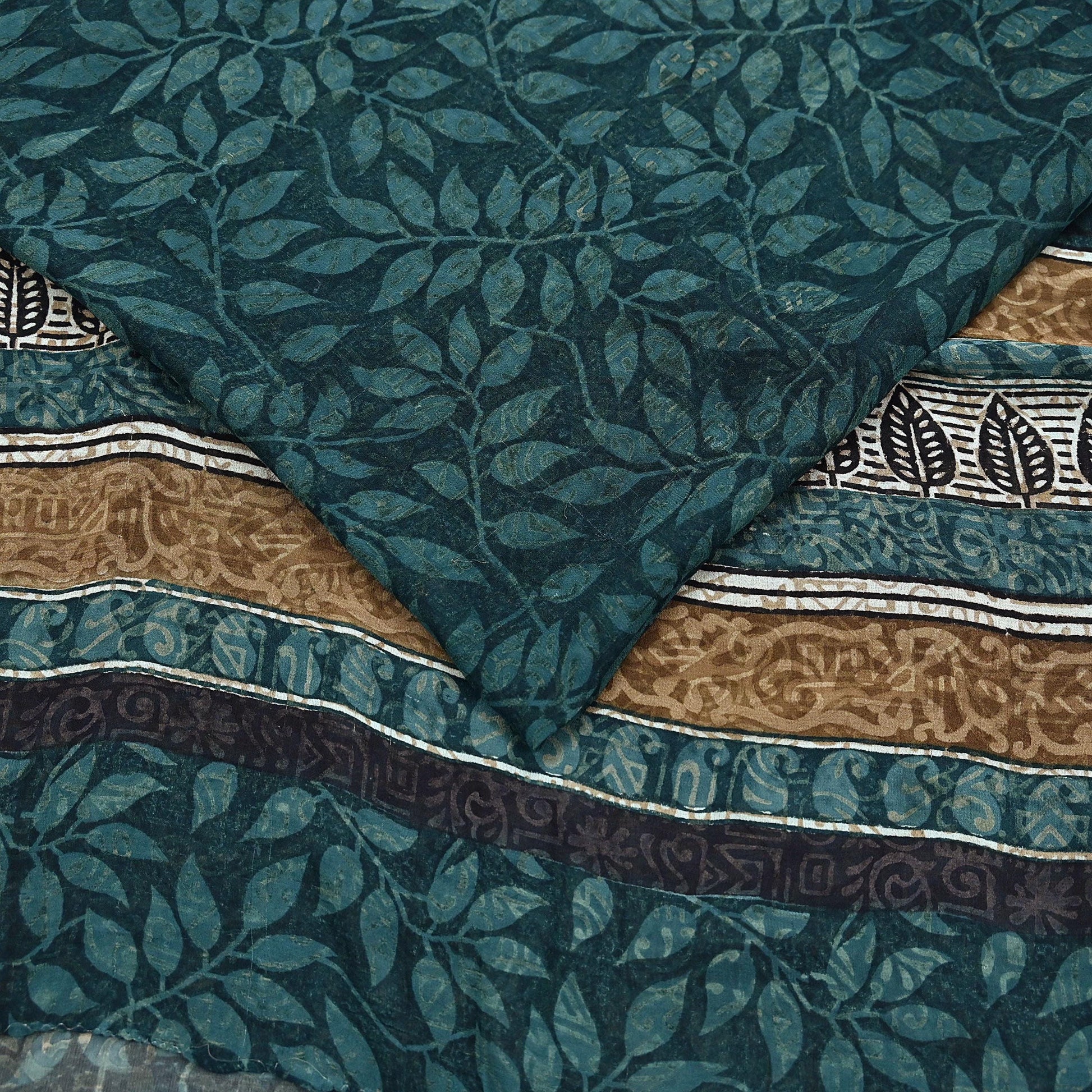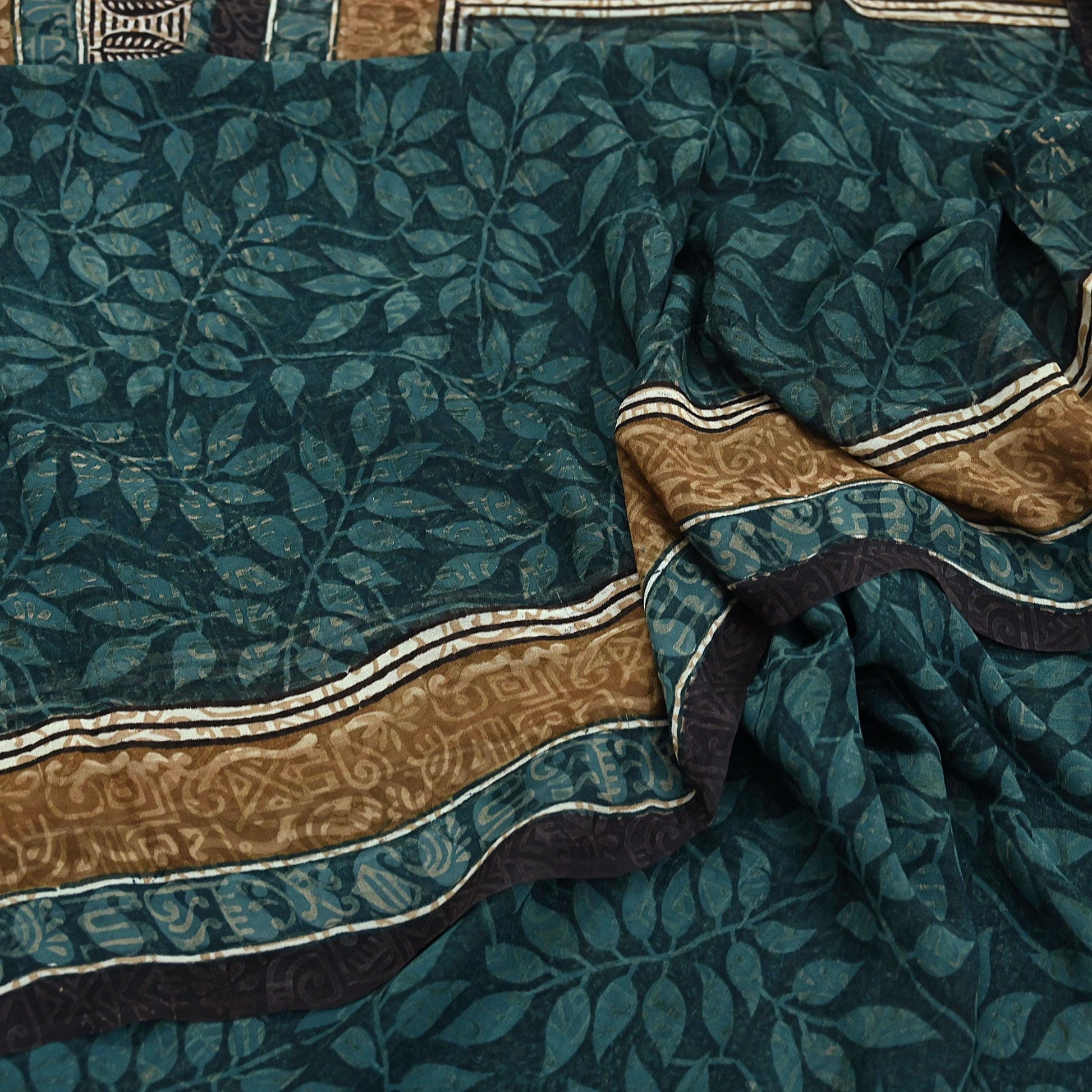 Women Vintage Sari Green Pure Georgette Silk Printed Saree Craft Fabric Sewing 6Yard Soft Light Dress Making Floral