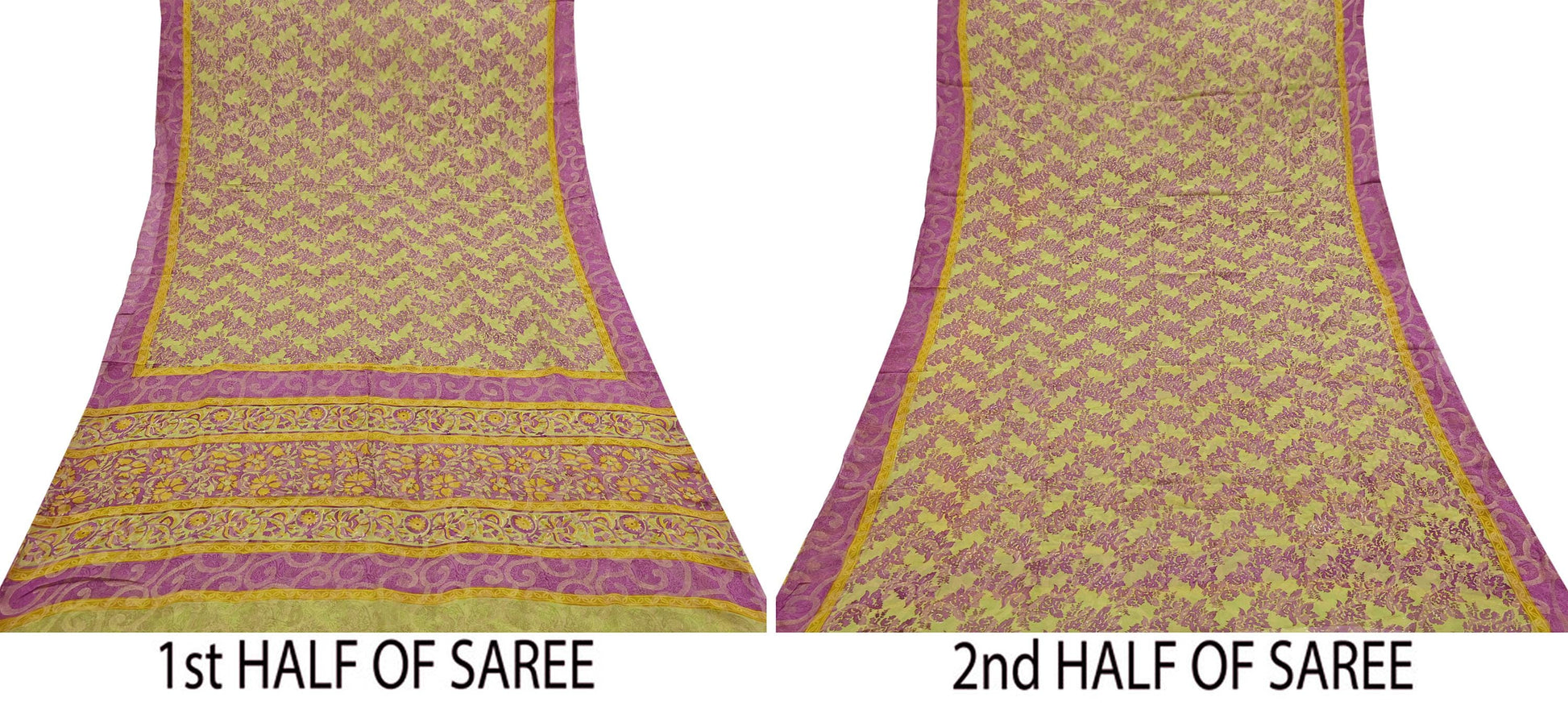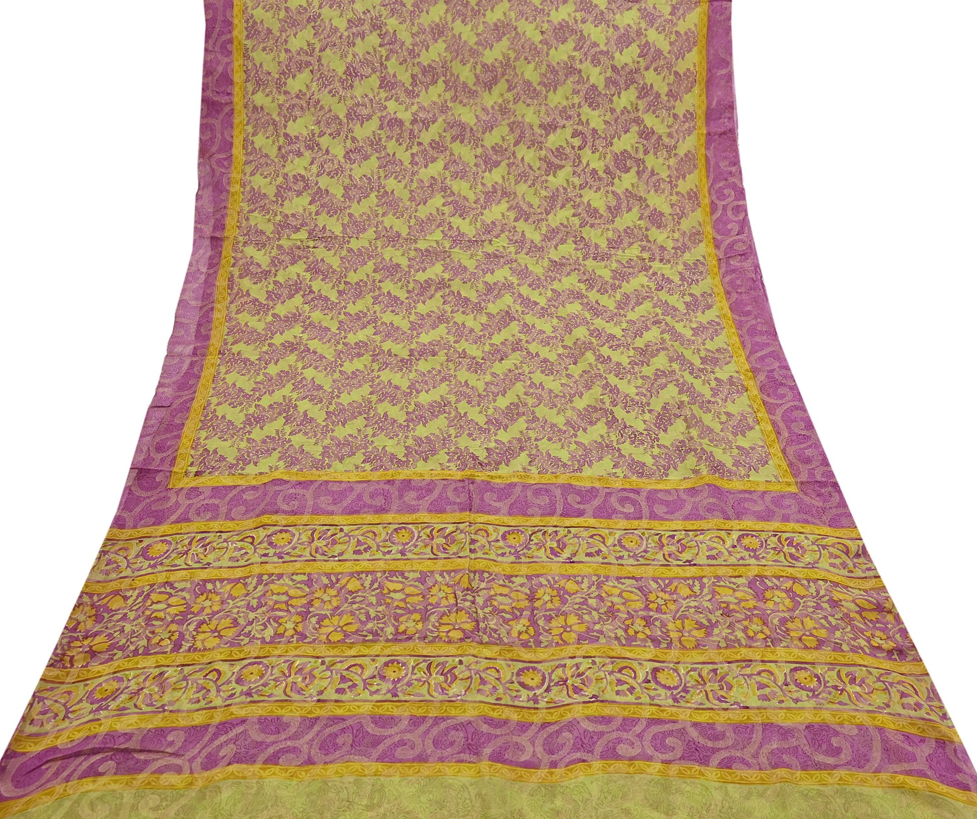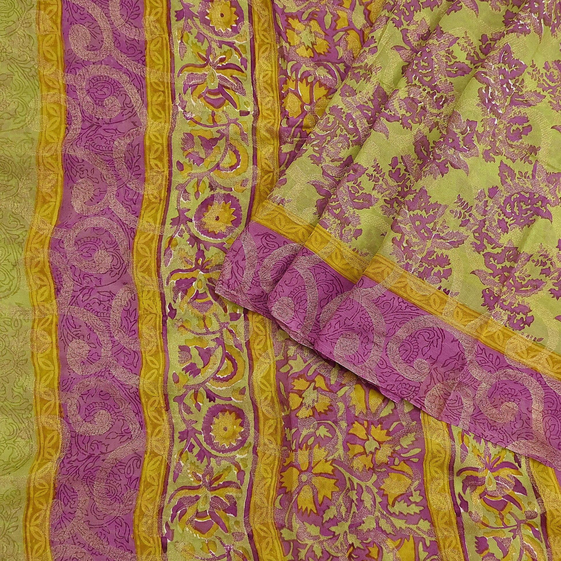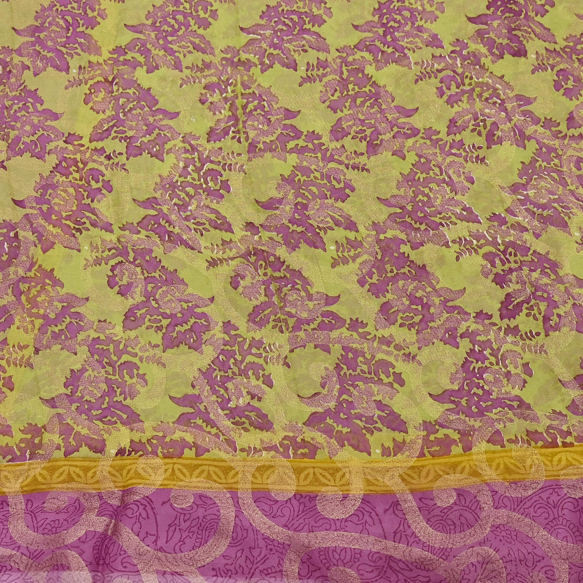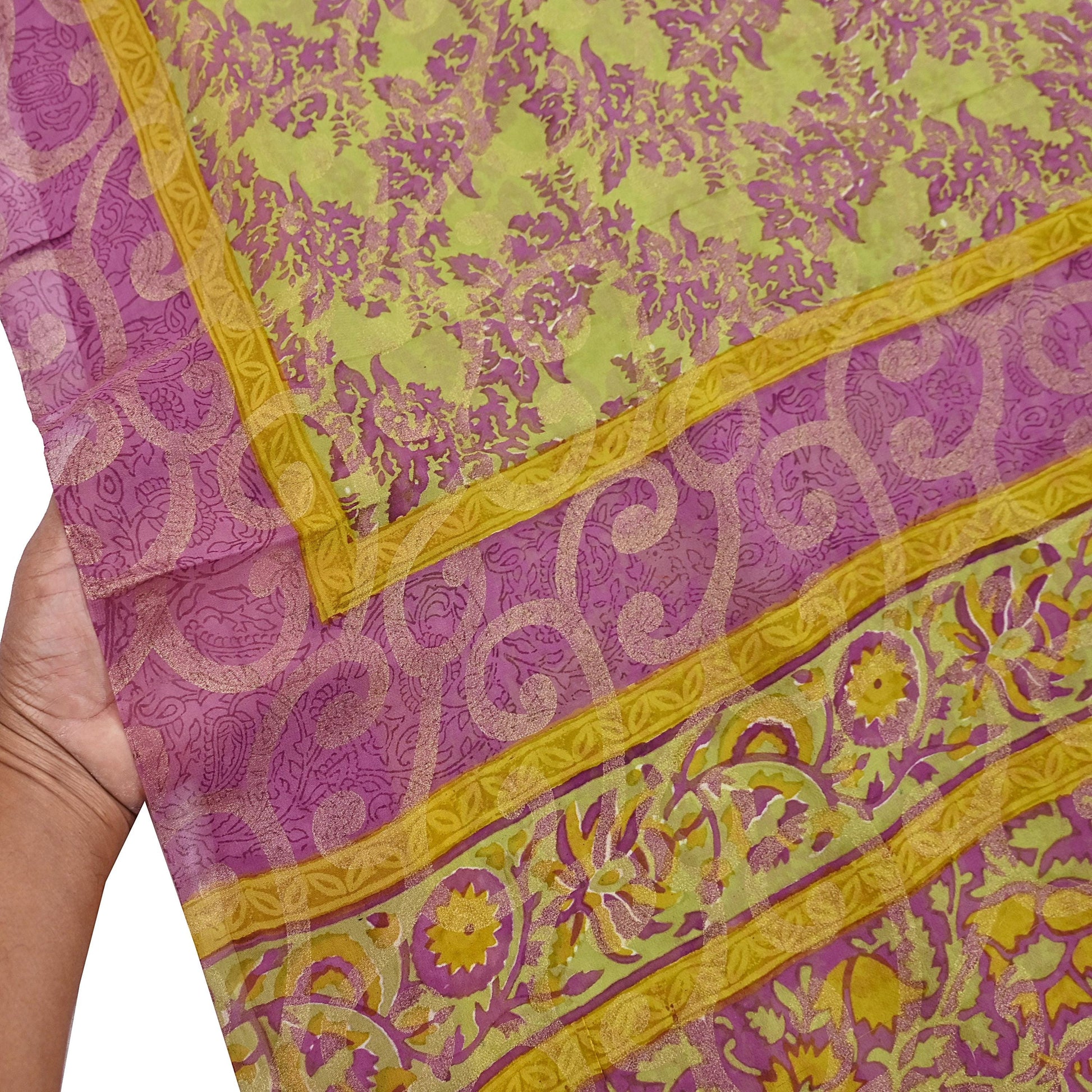 Women Vintage Sari Green & Purple 100% Pure Georgette Silk Printed Saree Craft Fabric Sewing 5Yd Soft Sari Dress Making Crafting Quilting