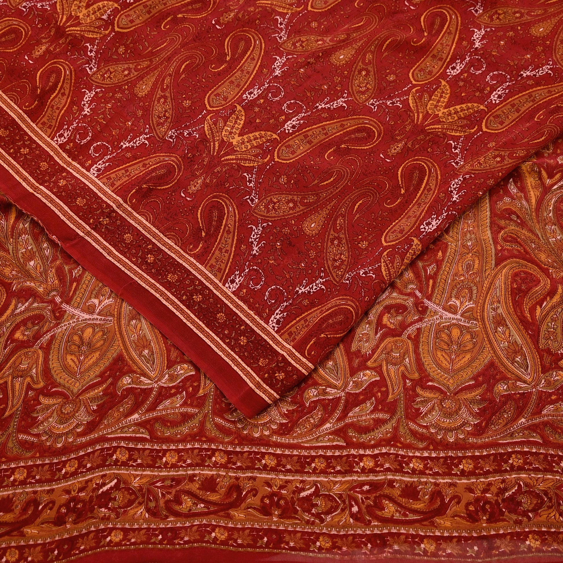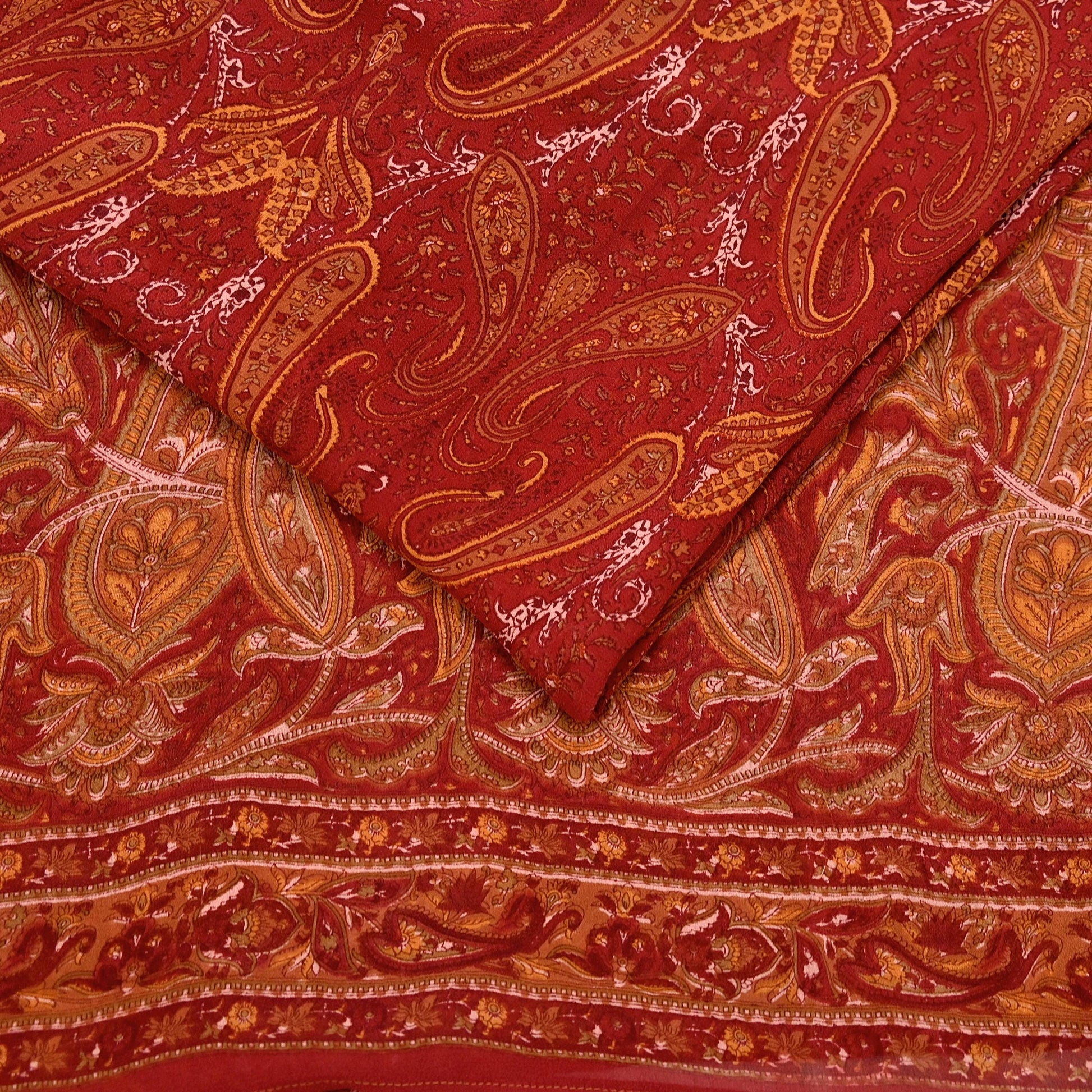 Women Vintage Sari Maroon Pure Georgette Silk Printed Saree Craft Fabric Sewing 5Yard Soft Light Dress Making Floral