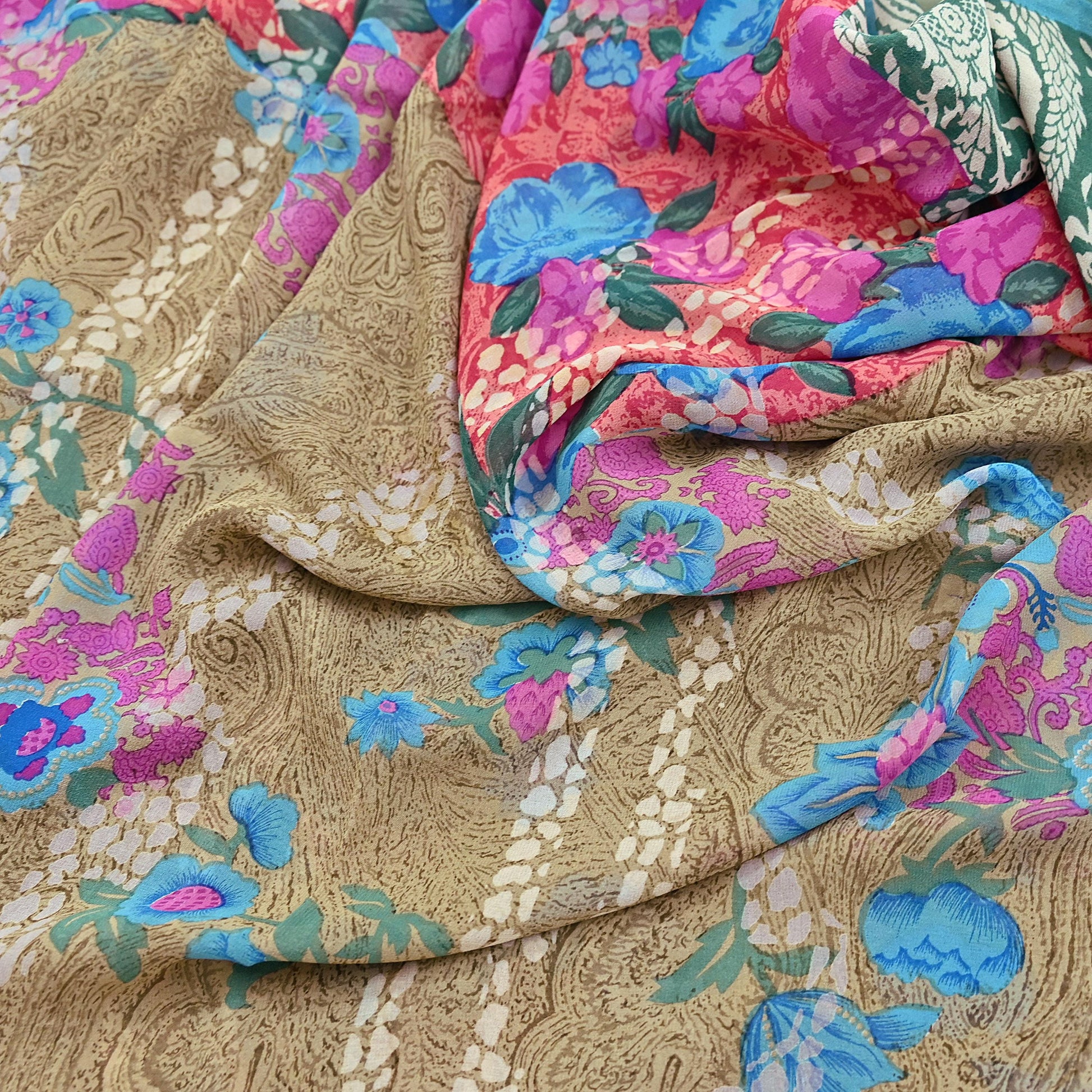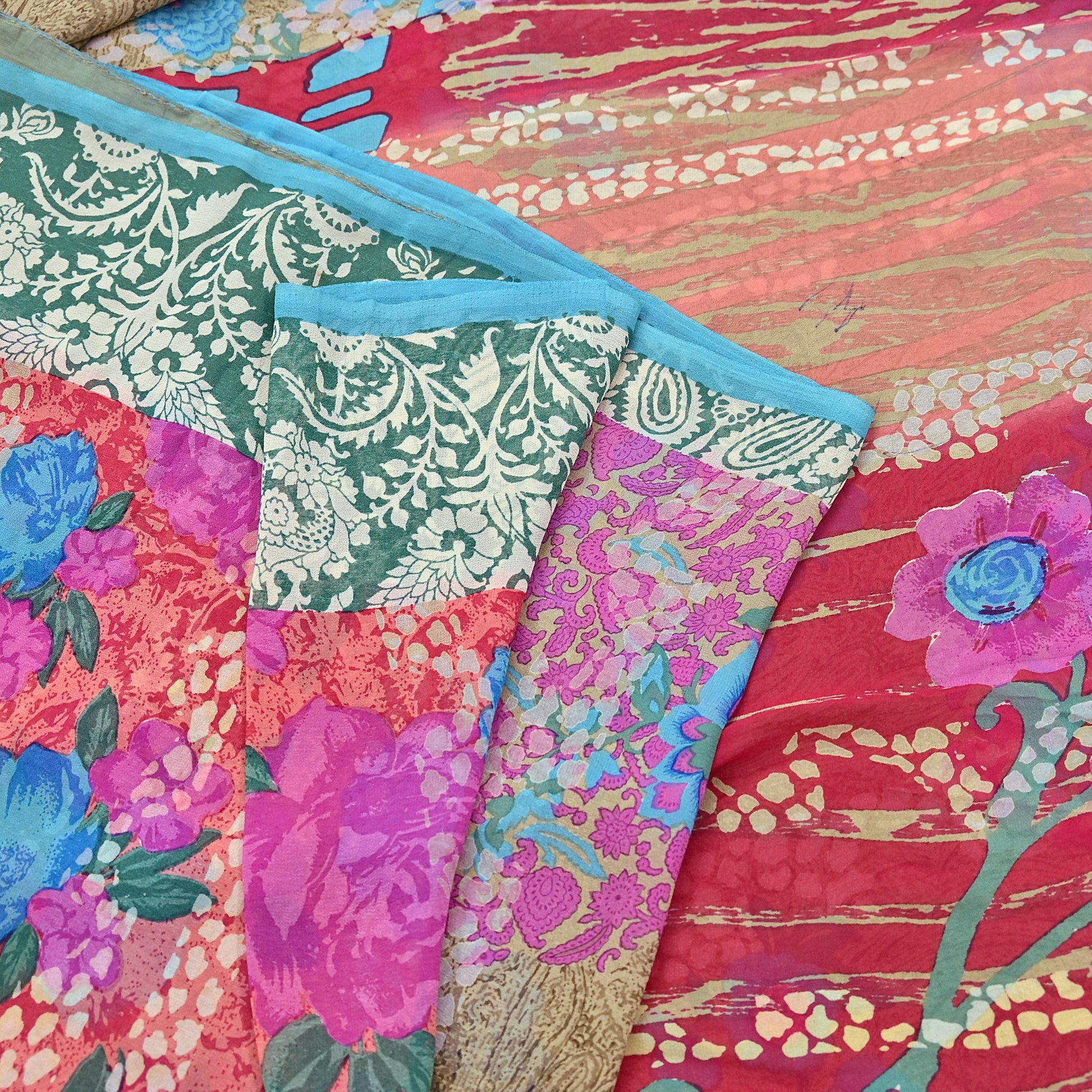 Women Vintage Sari multi Pure Georgette Silk Printed Saree Craft Fabric Sewing 6Yard Soft Light Dress Making Floral