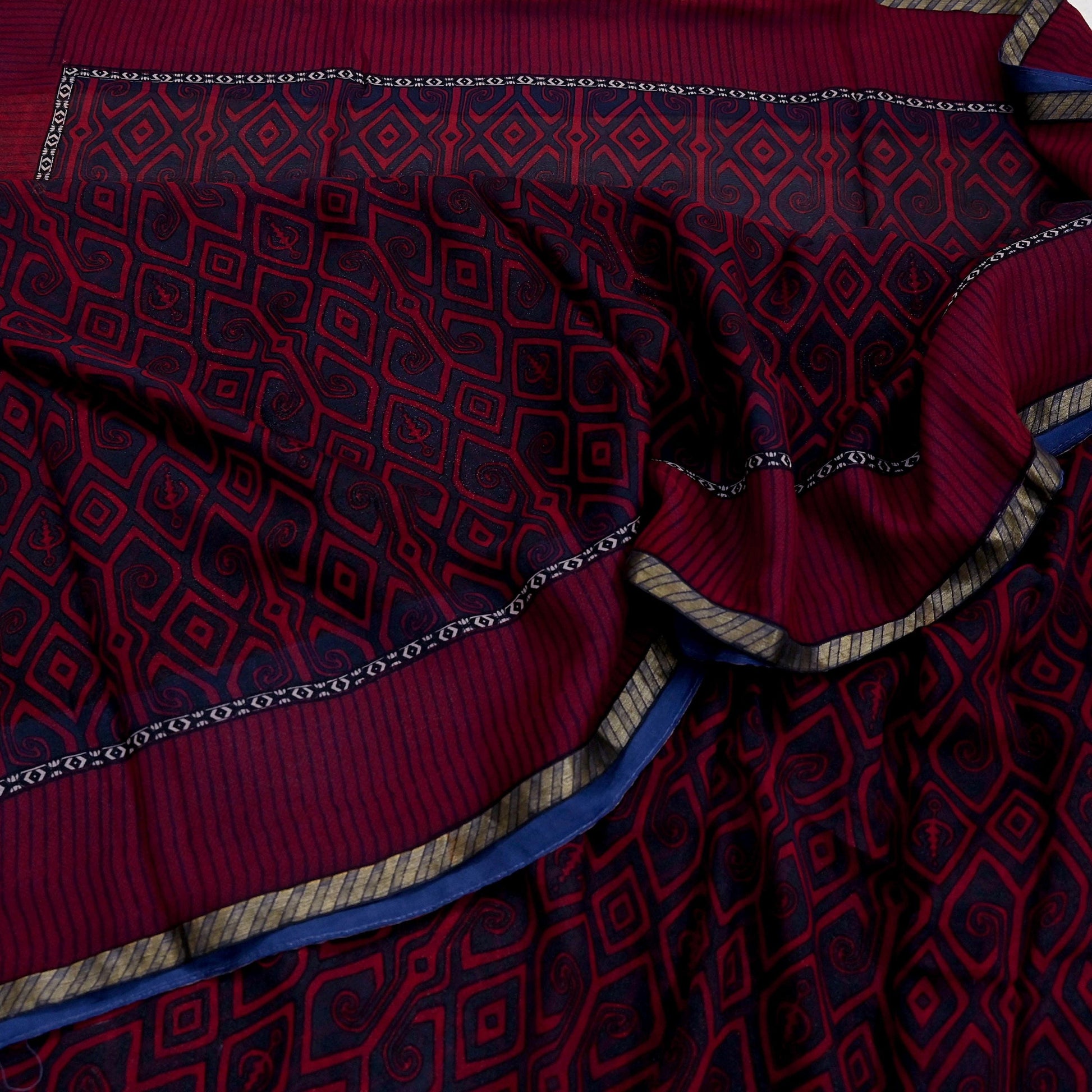 Nice Floral design with printed work on Red & Gray color base fabric is really enhancing the beauty of the saree.
