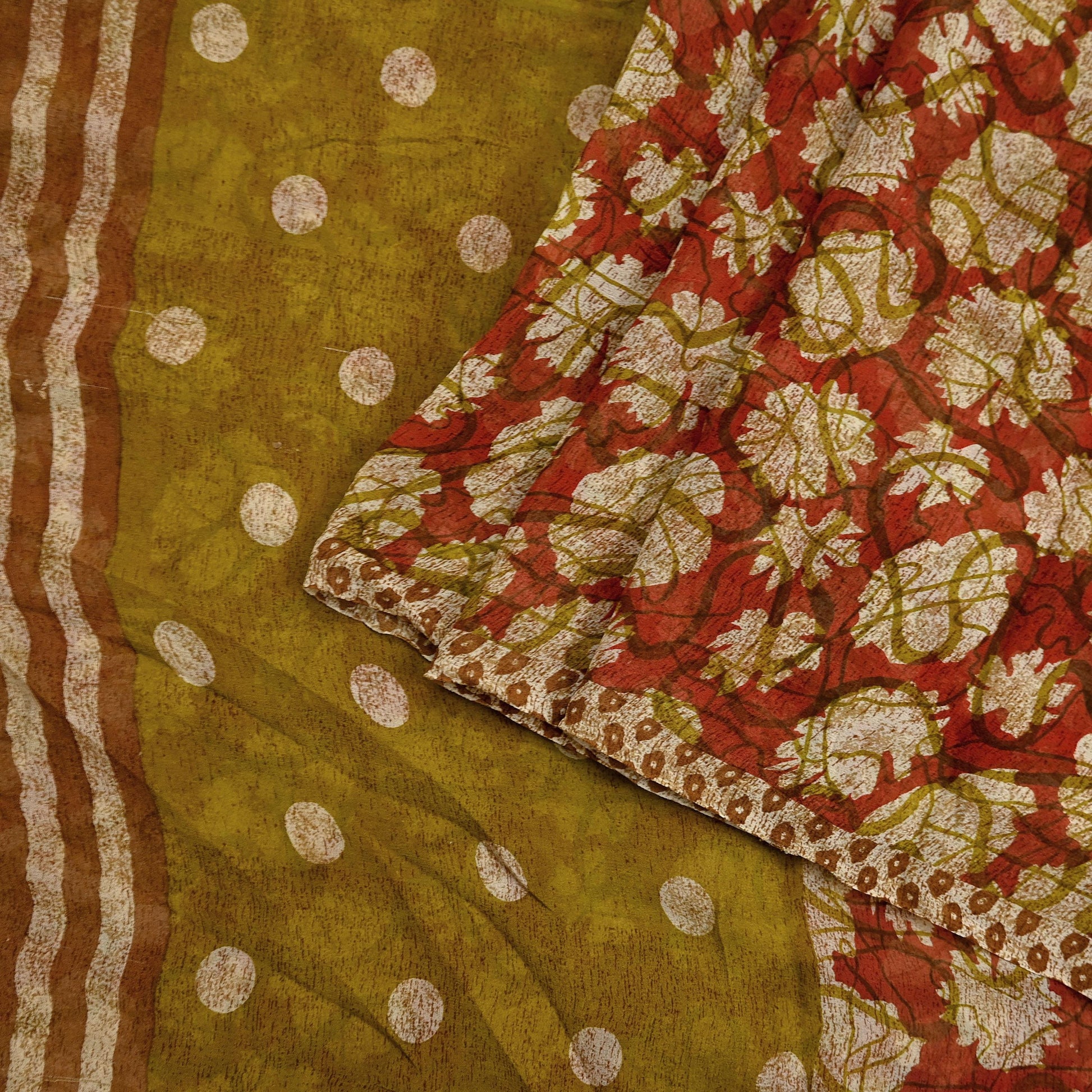 Women Vintage Sari Red & Green 100% Pure Georgette Silk Printed Saree Craft Fabric Sewing 5Yd Soft Sari Dress Making