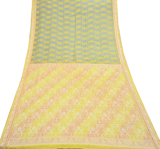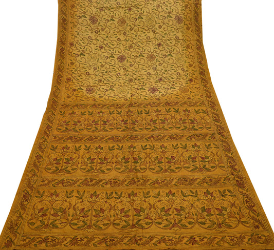 Vintage Sari Yellow Pure Silk Hand Woven Printed Saree Fabric 5yard Sewing Dress Designing for Crafting Quilting Upcycle Soft Border