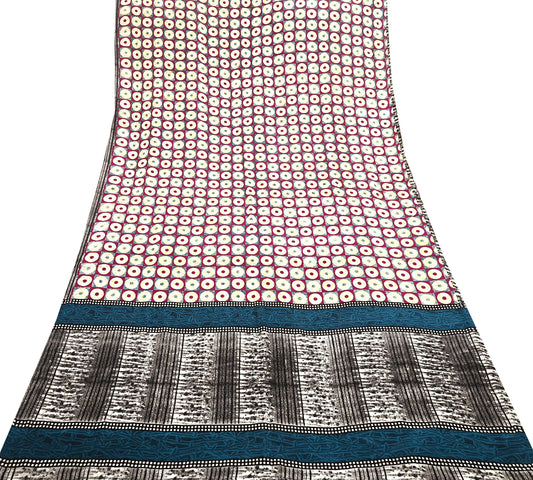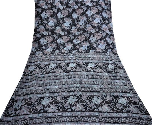 Vintage Saree Black Pure Chiffon Silk Printed Sari Craft Fabric Sewing 5Yard Soft