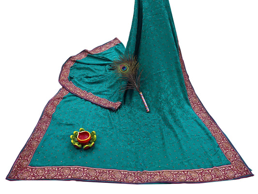 Indian Vintage Heavy Sari Green Pure Crepe Silk Hand Embroidered Sarees Craft Fabric 6Yd Sewing Zardozi Dress making