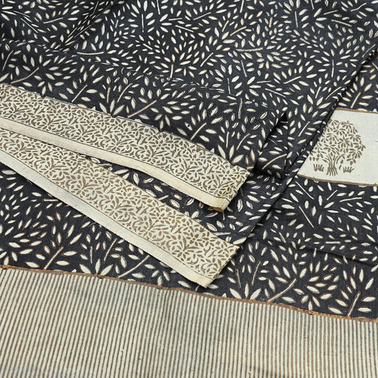 Indian Vintage Black & Ivory Saree Pure Woolen Woven Printed Sari Warm Craft Fabric 5Yd Border Dress making Crafting Designing