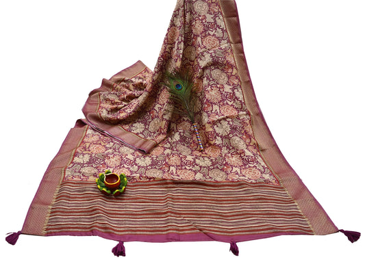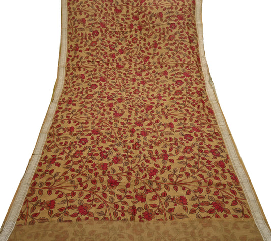 Indian Vintage Sari Pure chanderi Silk Kalamkari Print Saree Craft Fabric 5Yd Soft Zari Border Dress making bollywood Crafting mukesh
